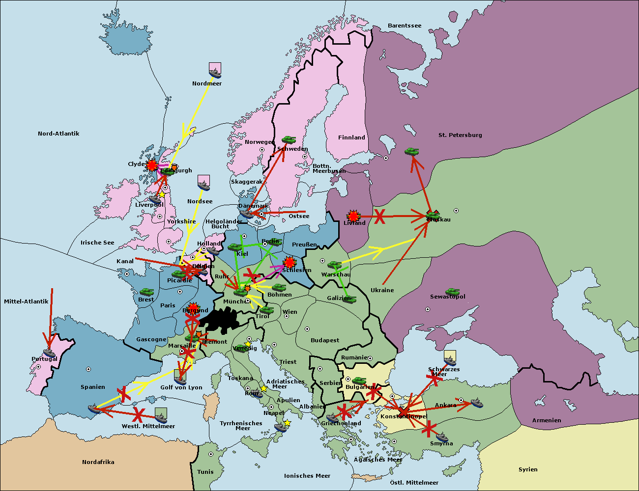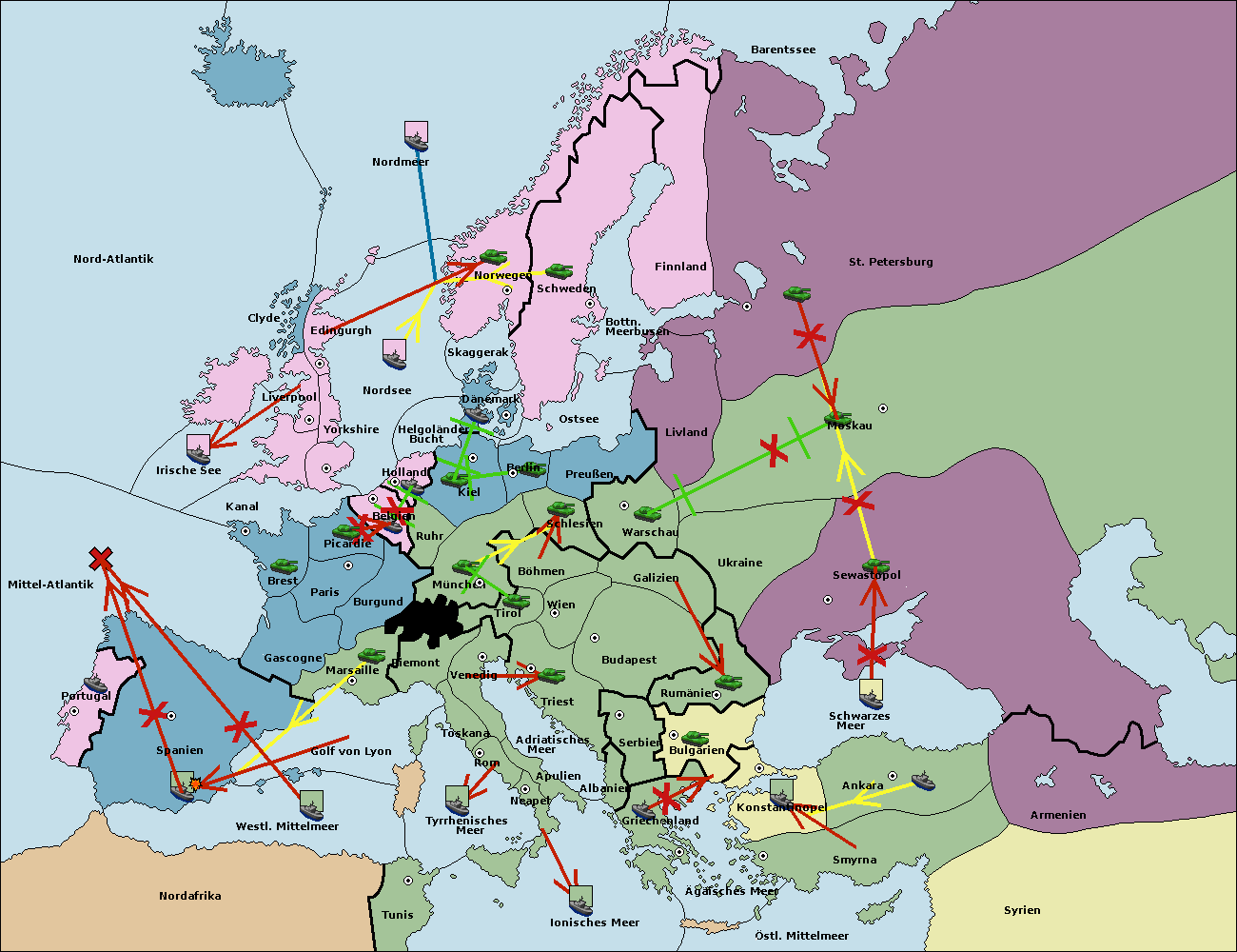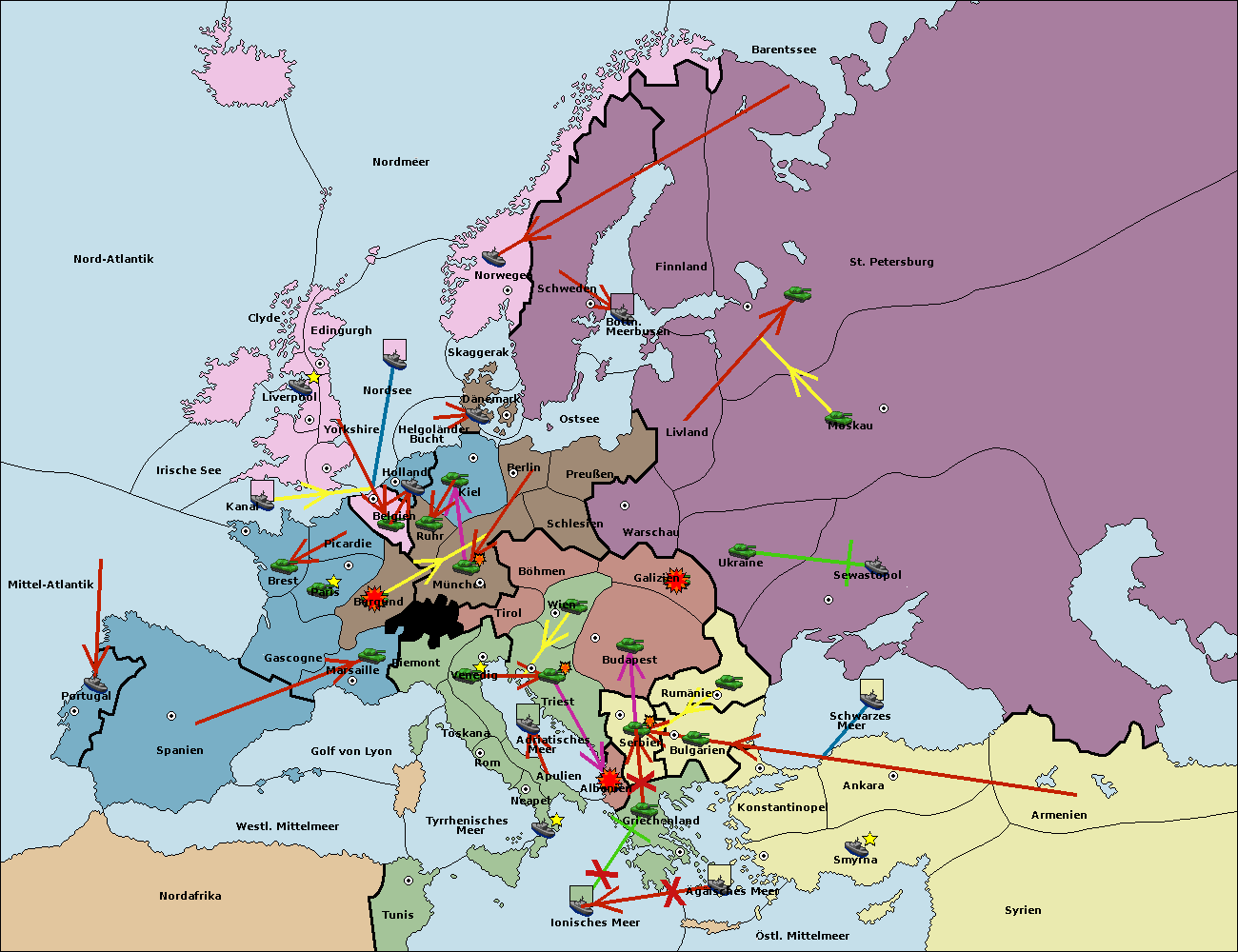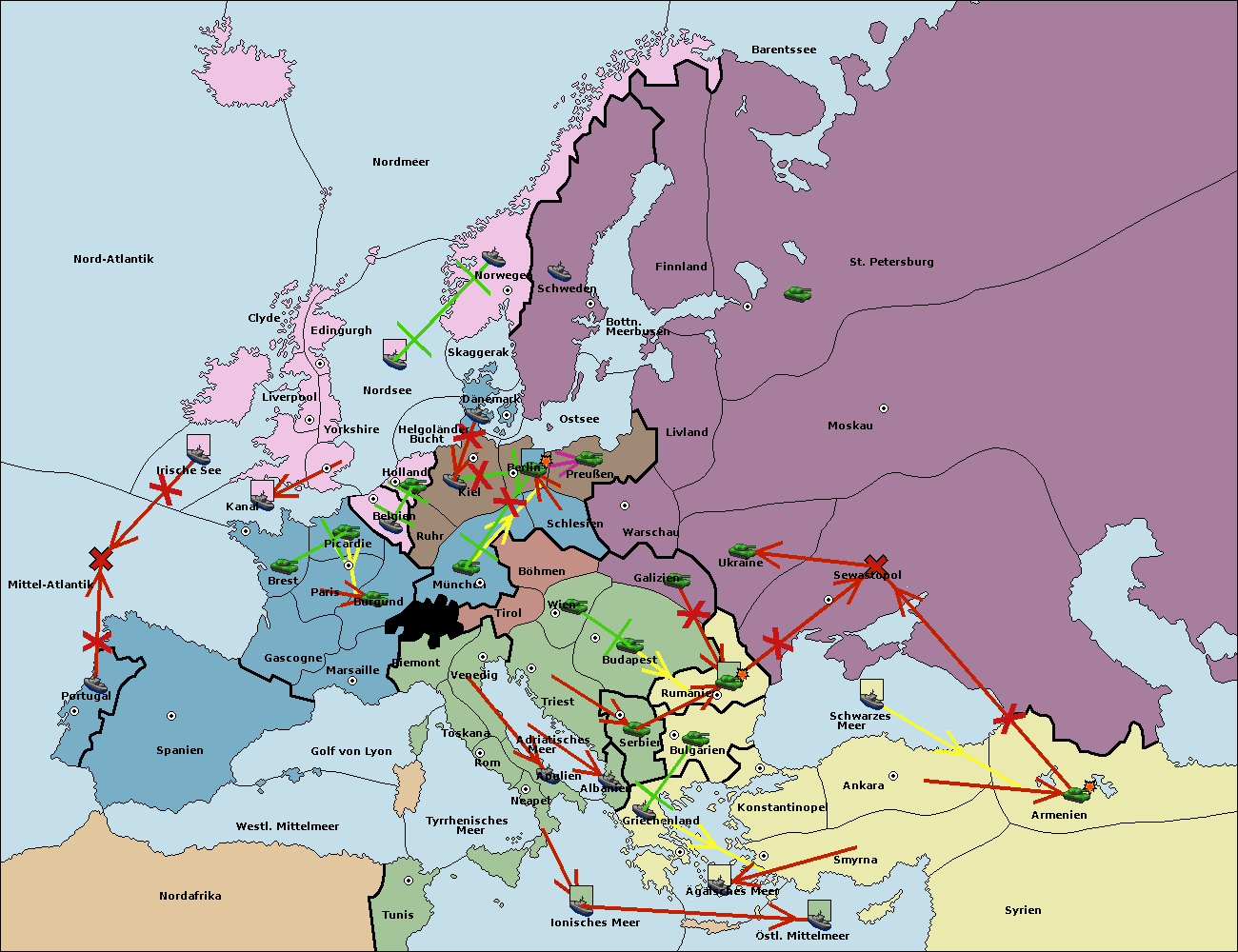 • Die Armee in Kiel support move nach München von Berlin. (gescheitert)