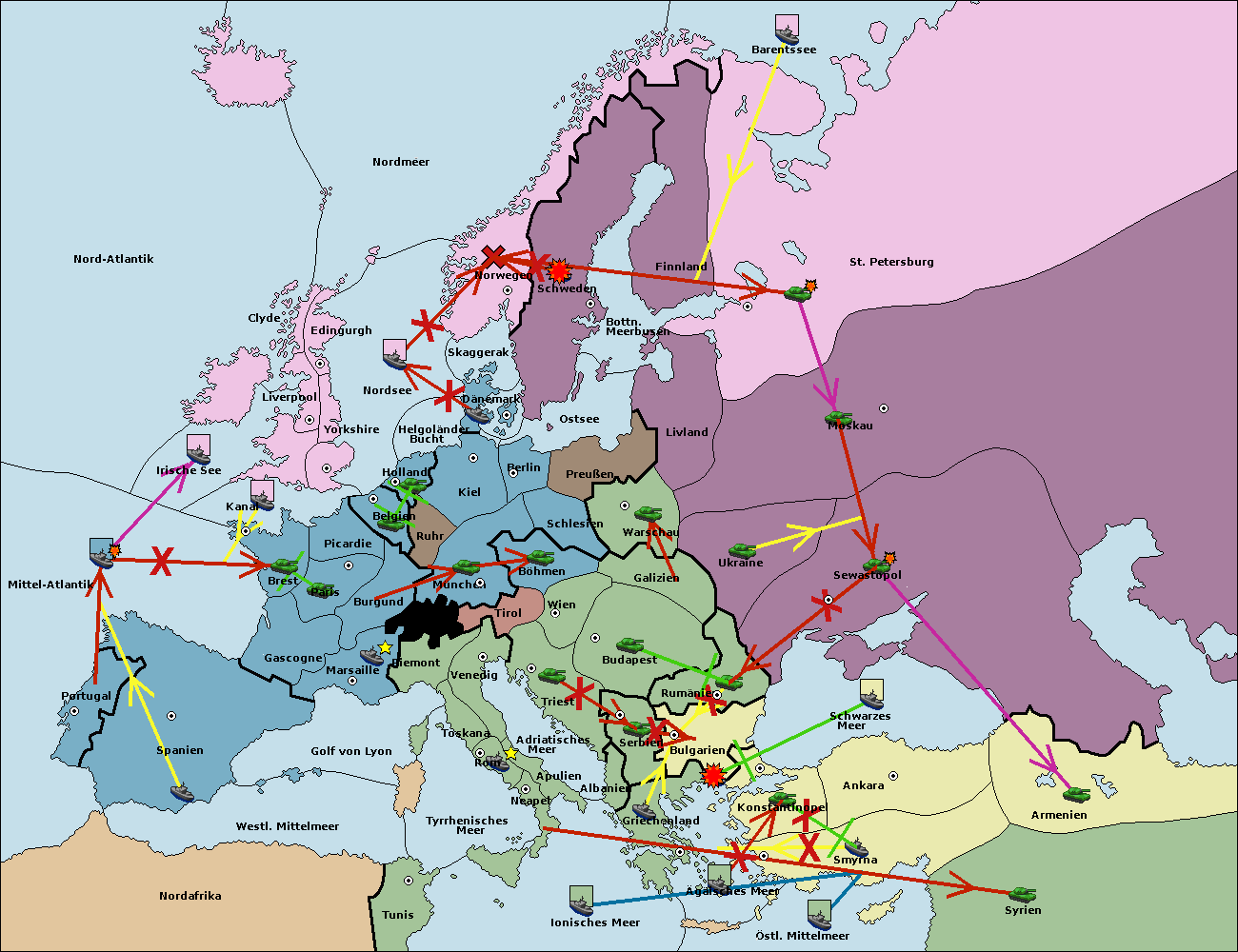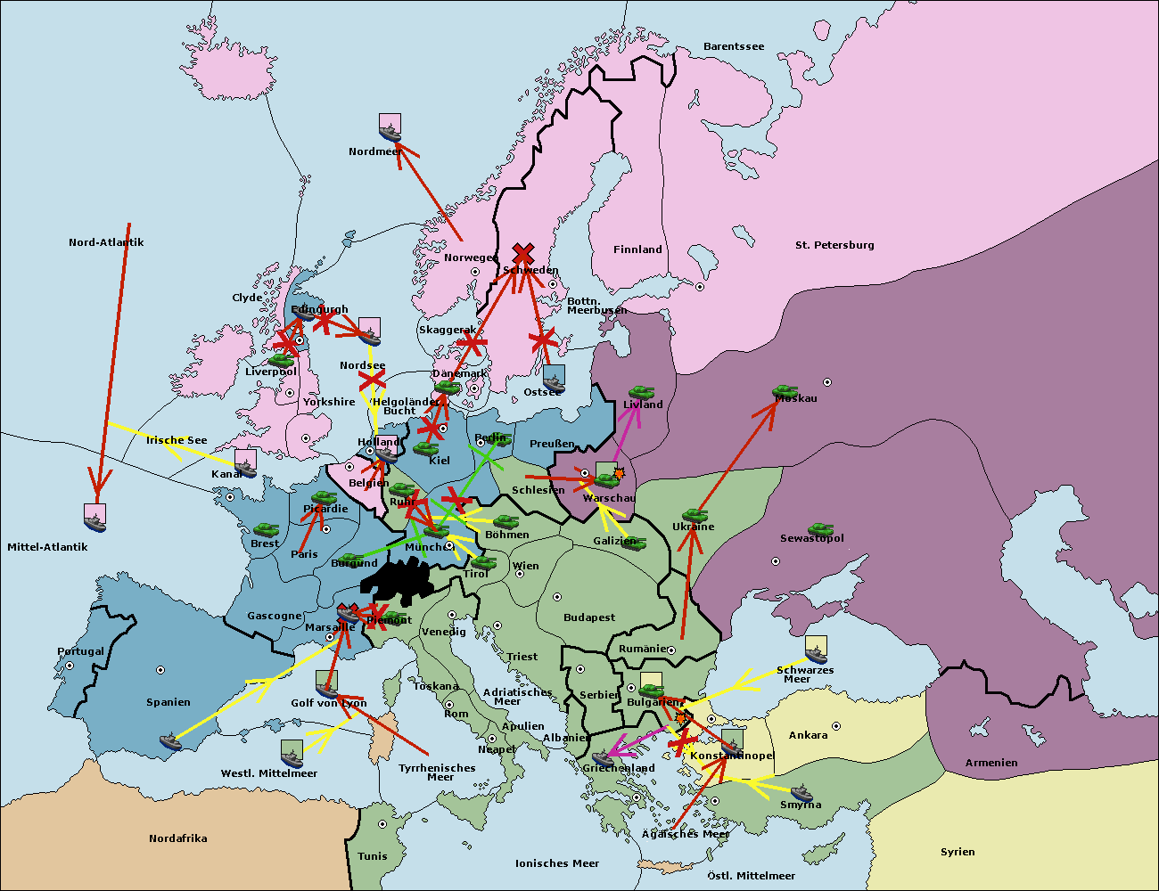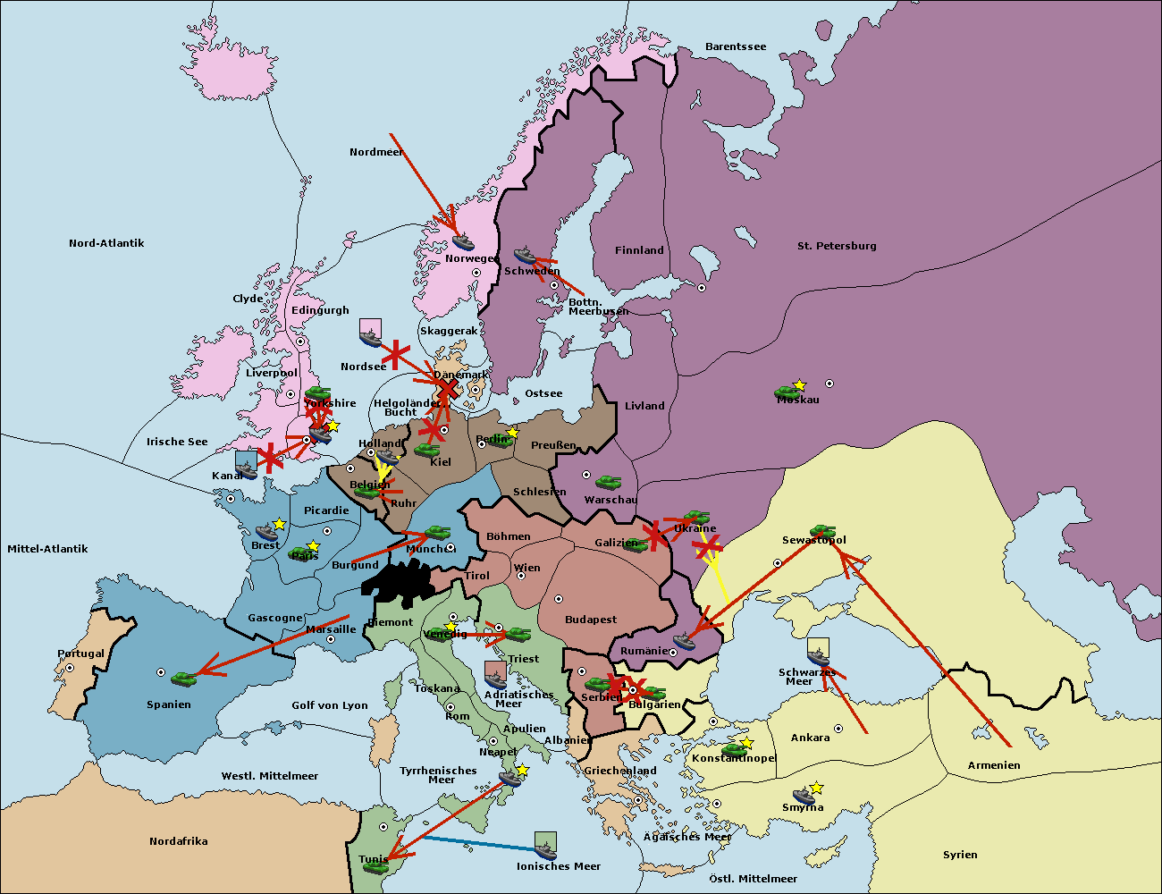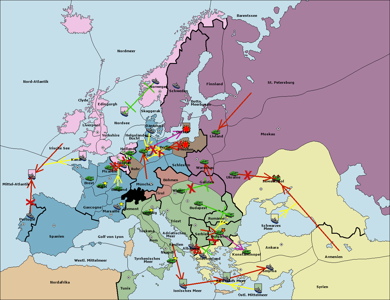 • Die Armee in Kiel support move nach München von Berlin. (gescheitert)