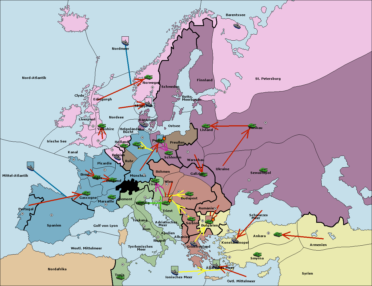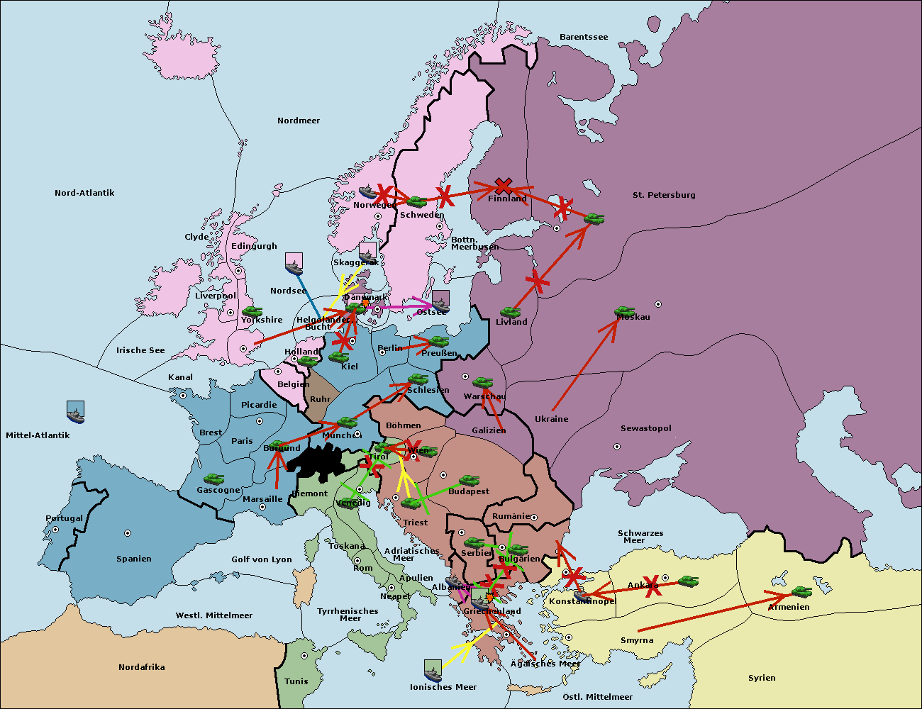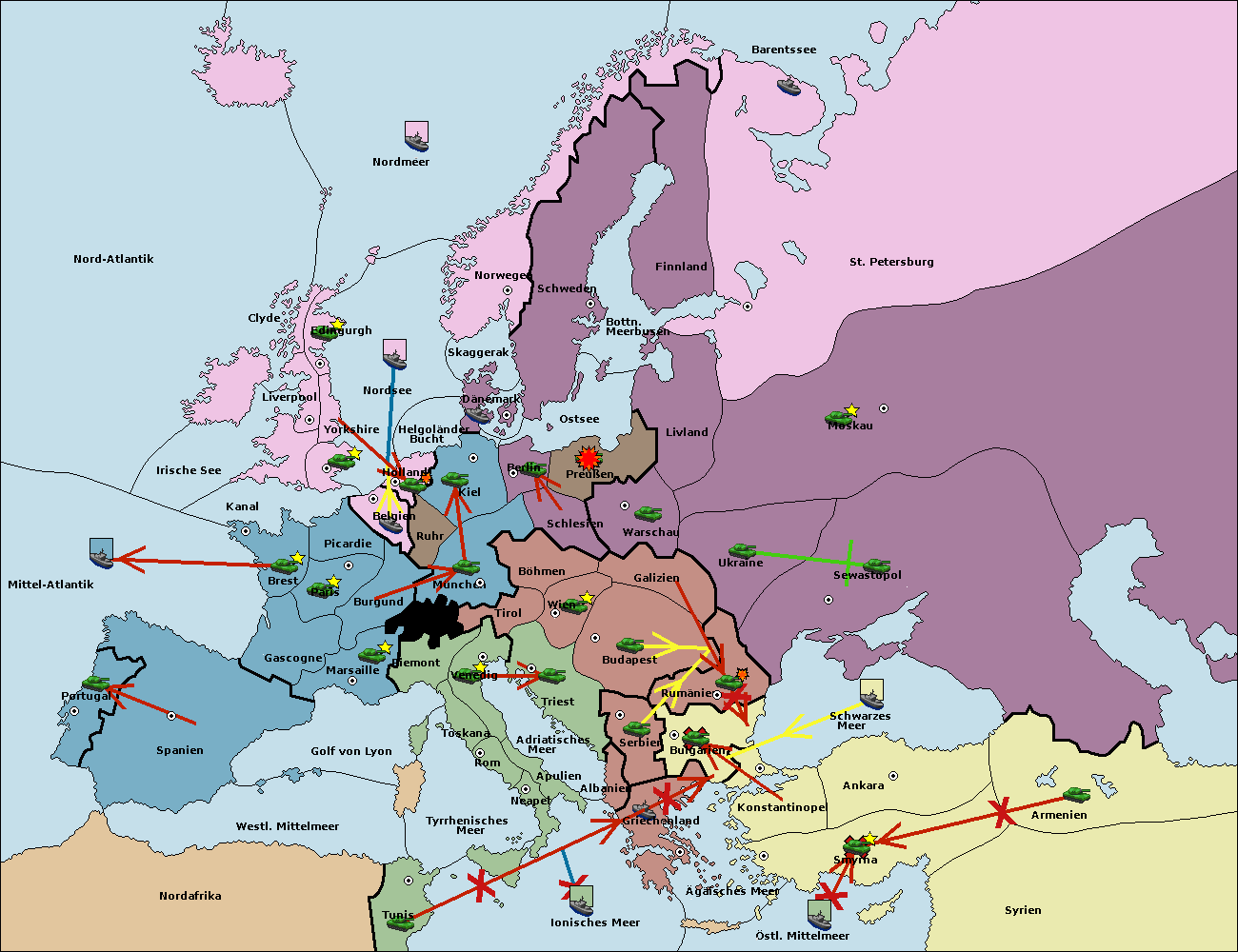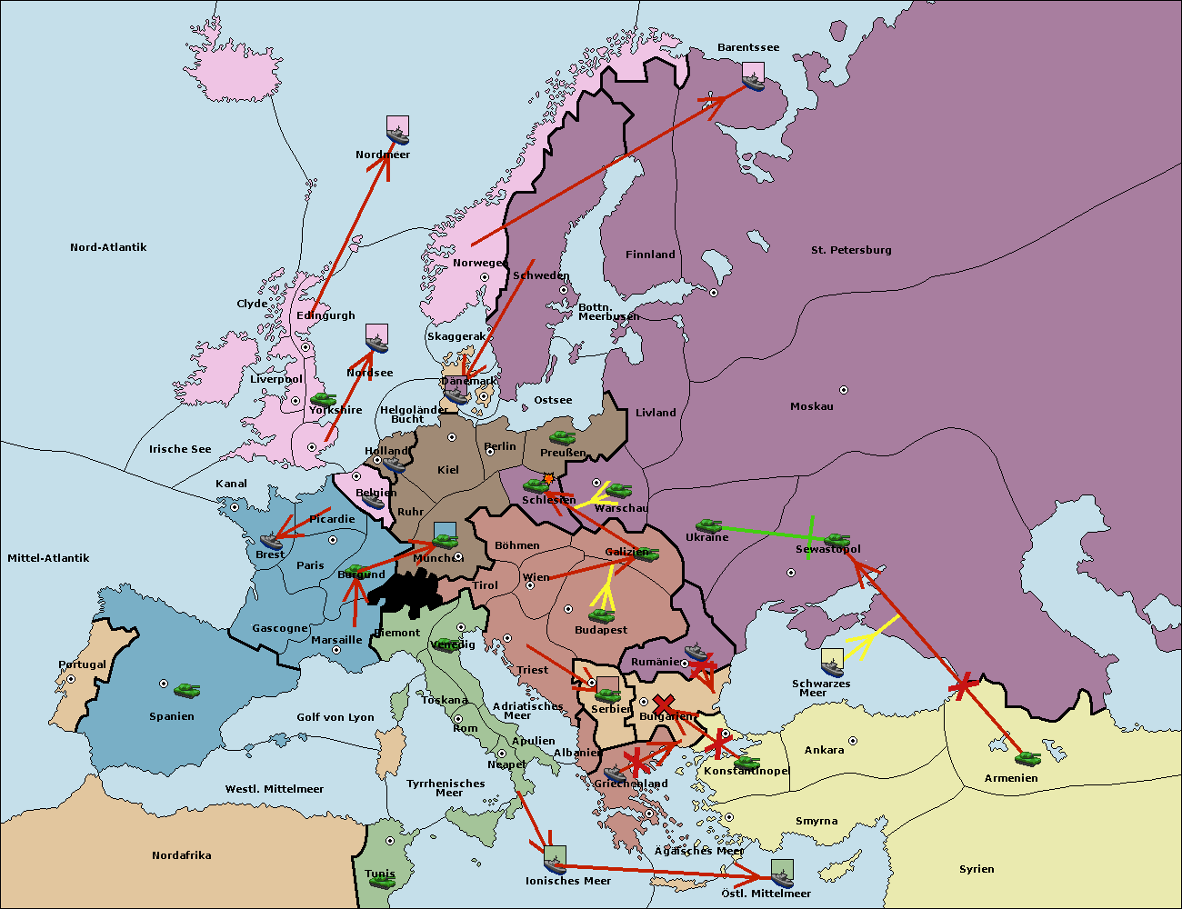 • Die Armee in Bulgarien wird zerstörtFlotte in Bulgarien gebaut.
