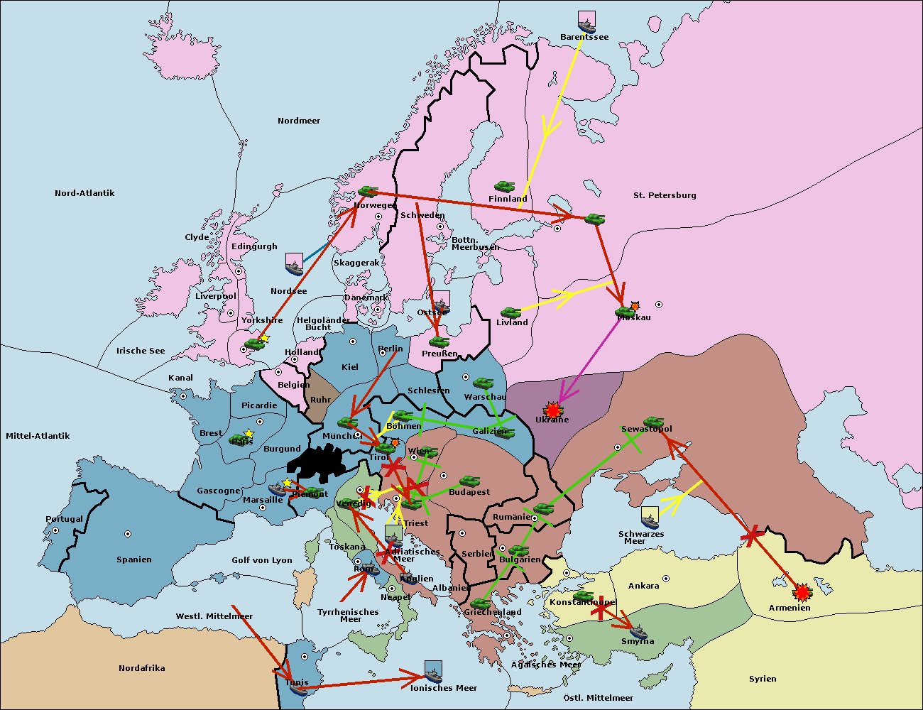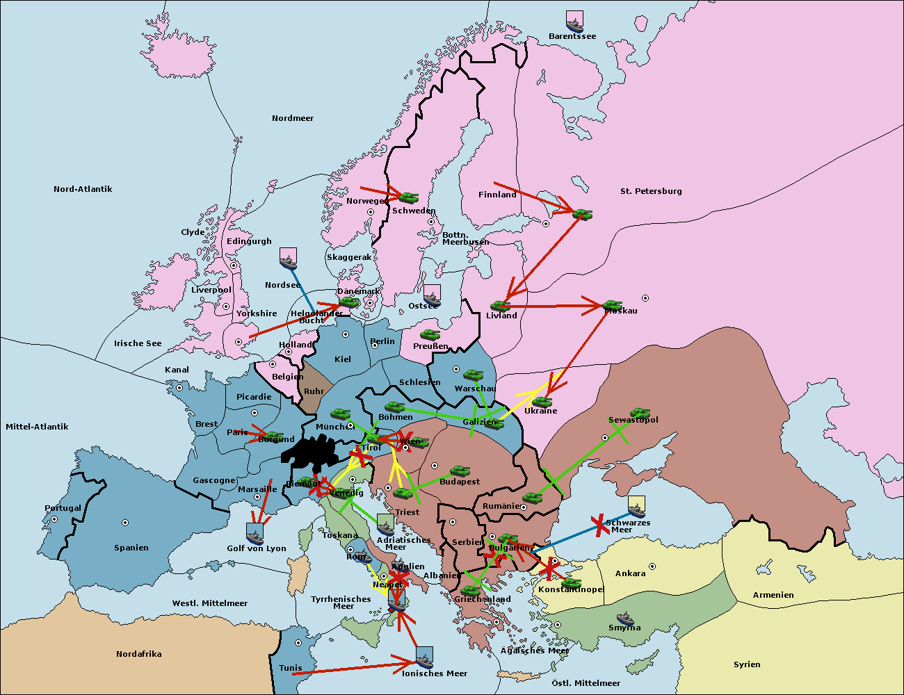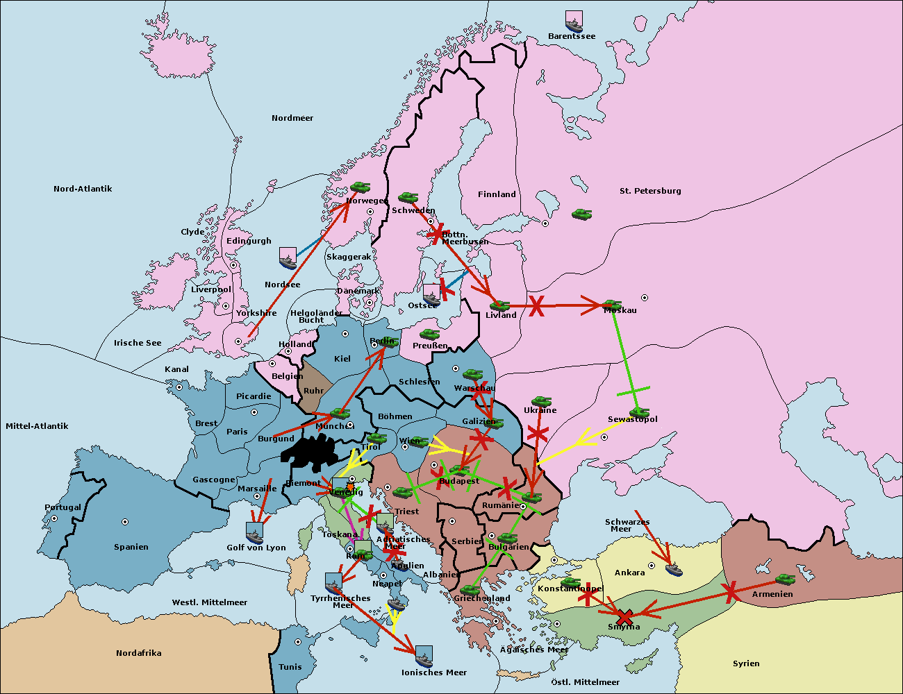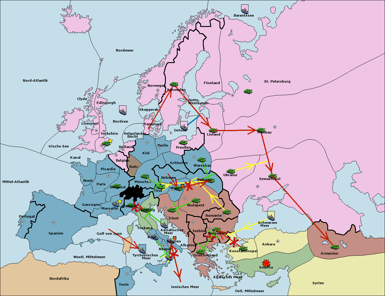 • Die Armee in Bulgarien wird zerstörtFlotte in Bulgarien gebaut.