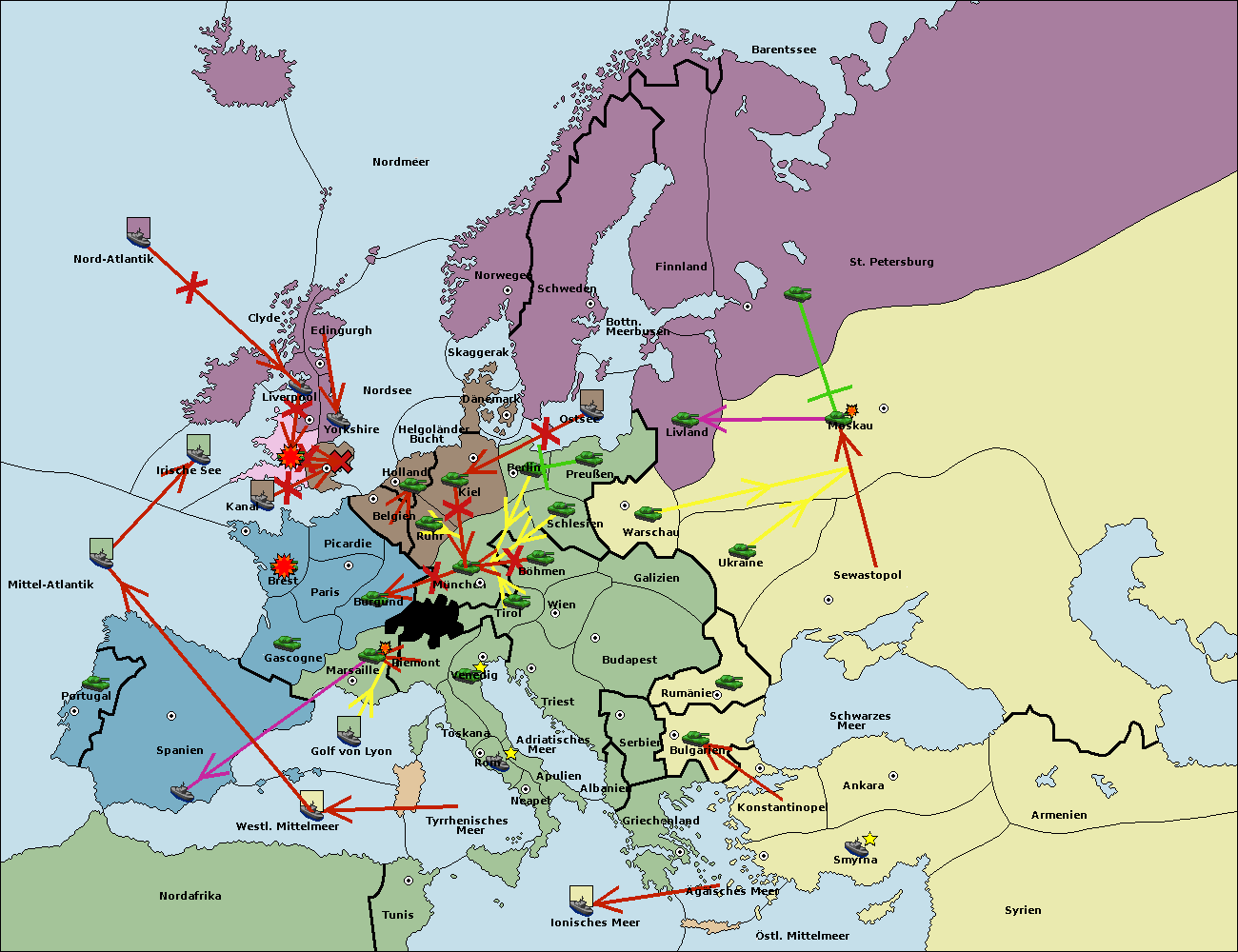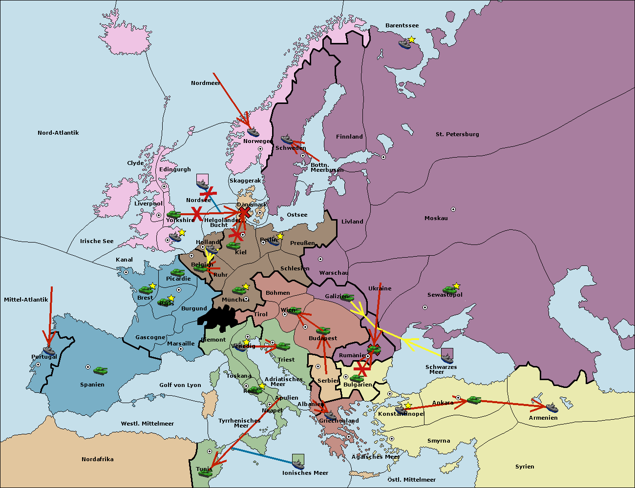 • Die Flotte in St. Petersburg (Nordküste) move nach Norwegen.