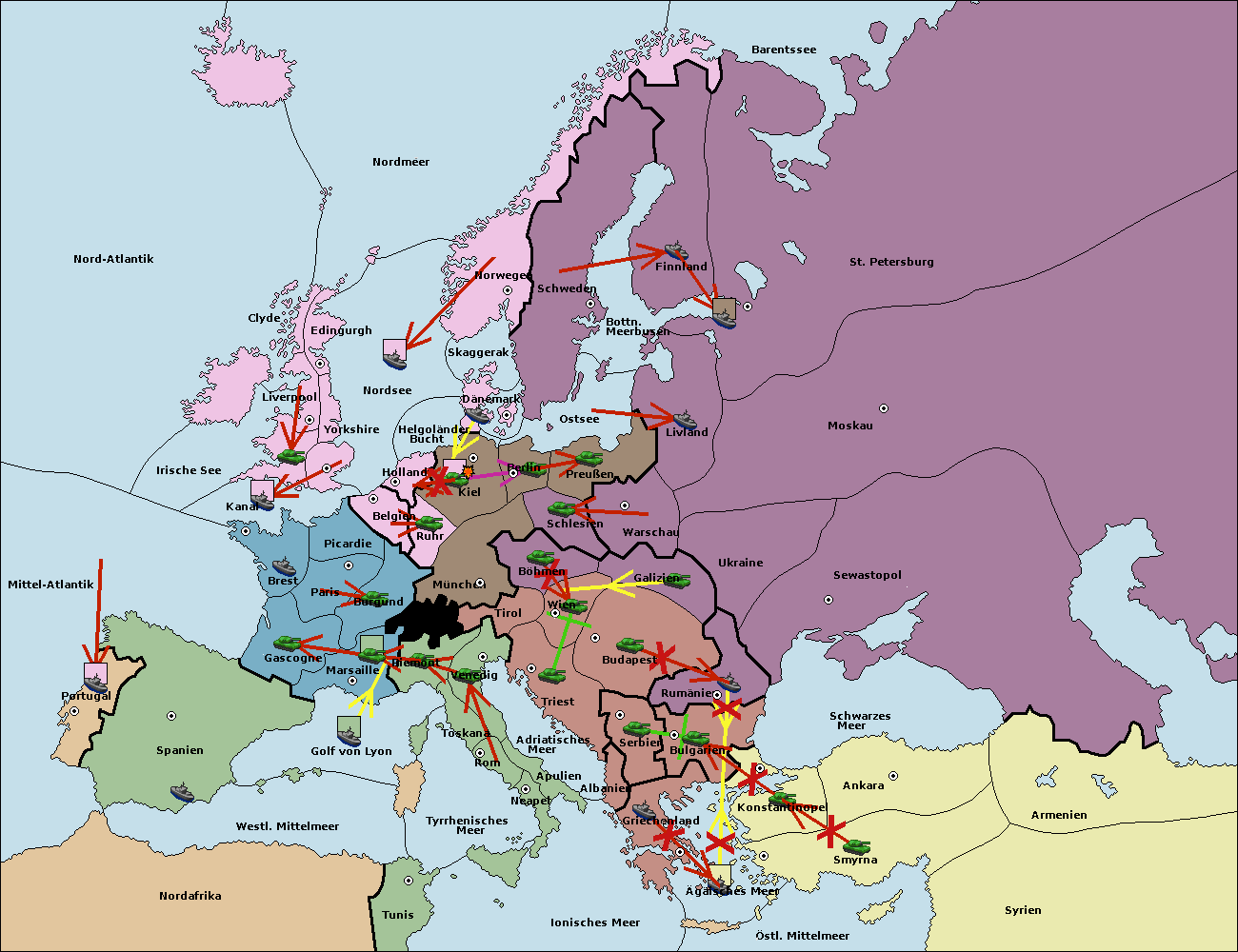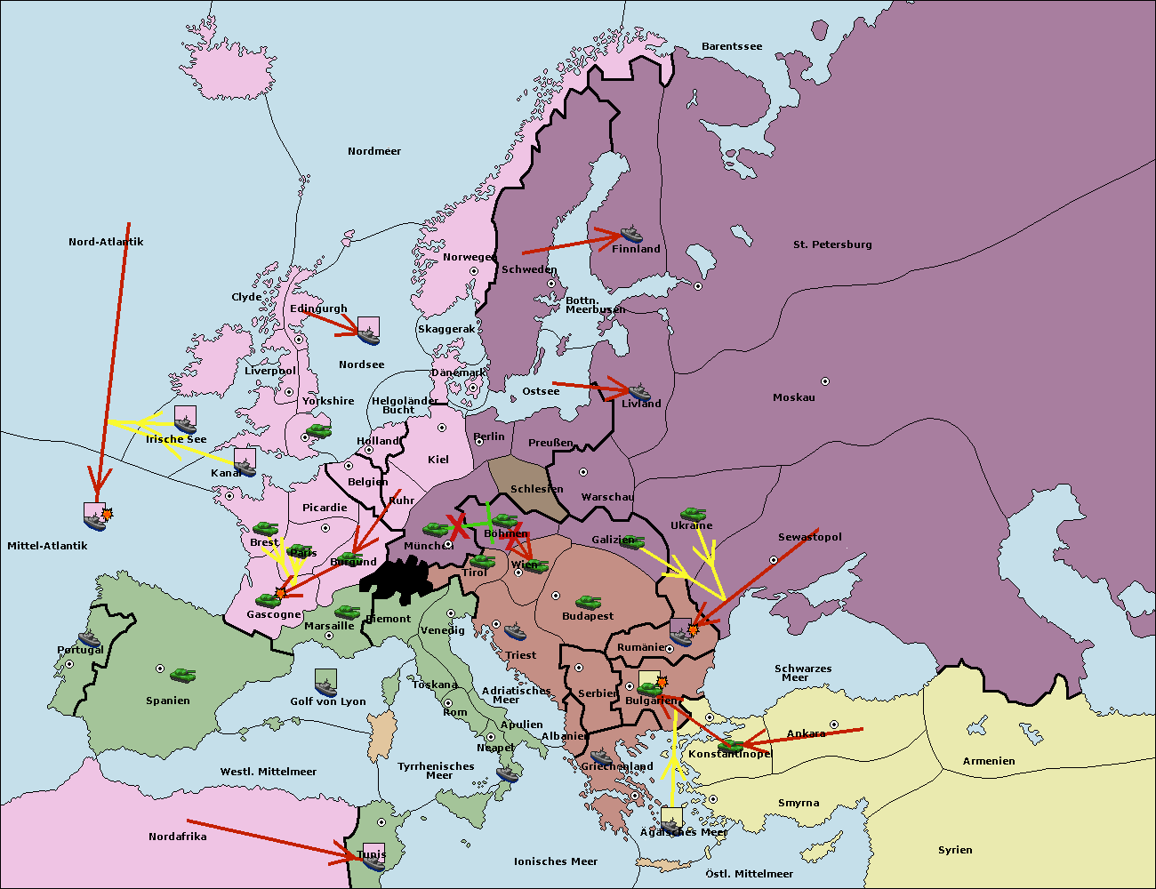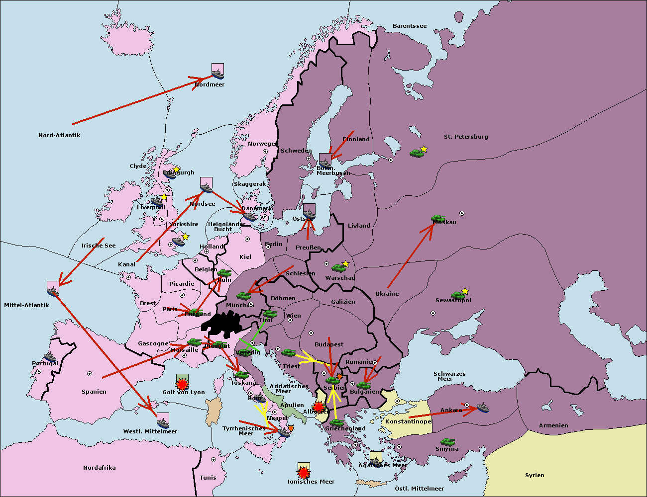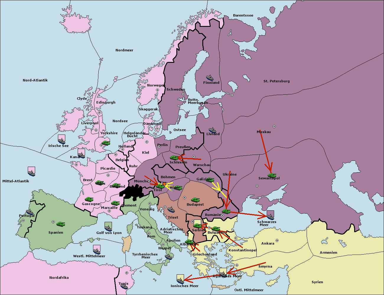 • Die Flotte in Ägäisches Meer support move nach Bulgarien von Konstantinopel. (gescheitert)
