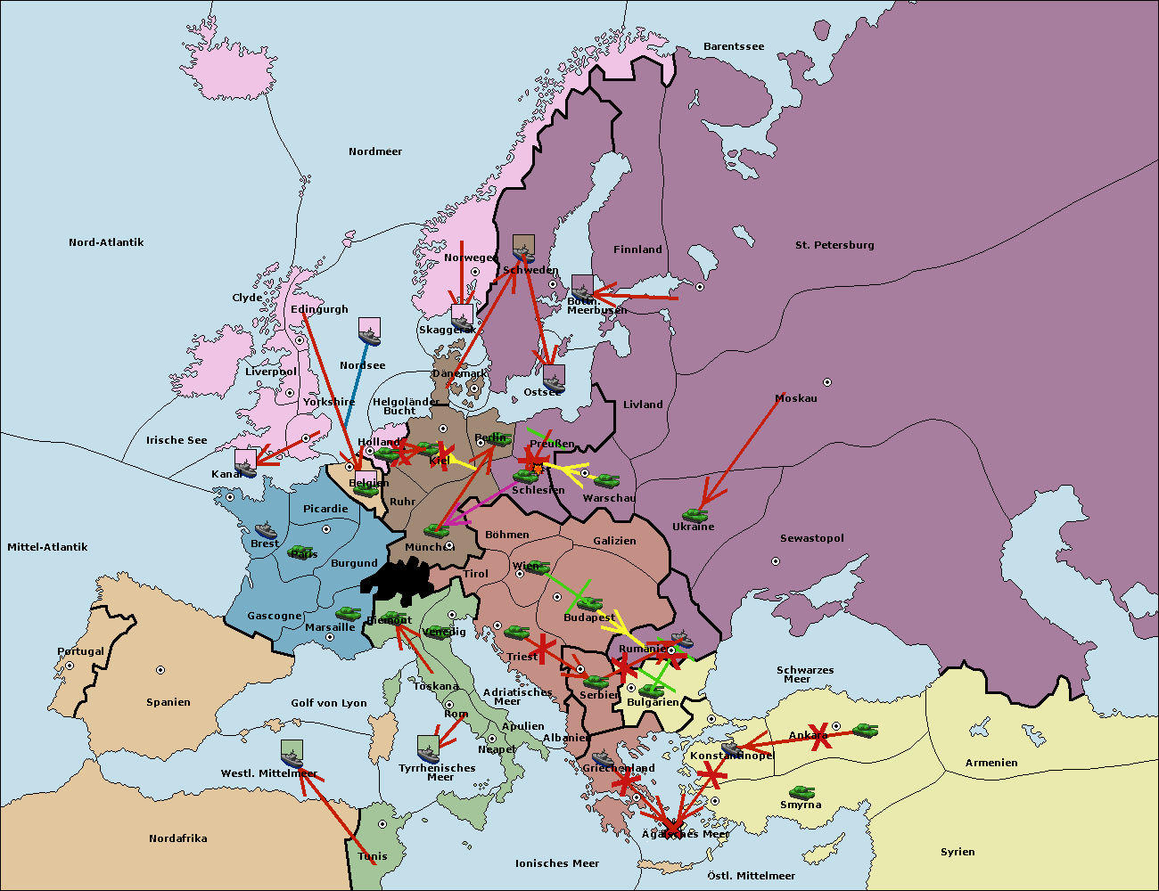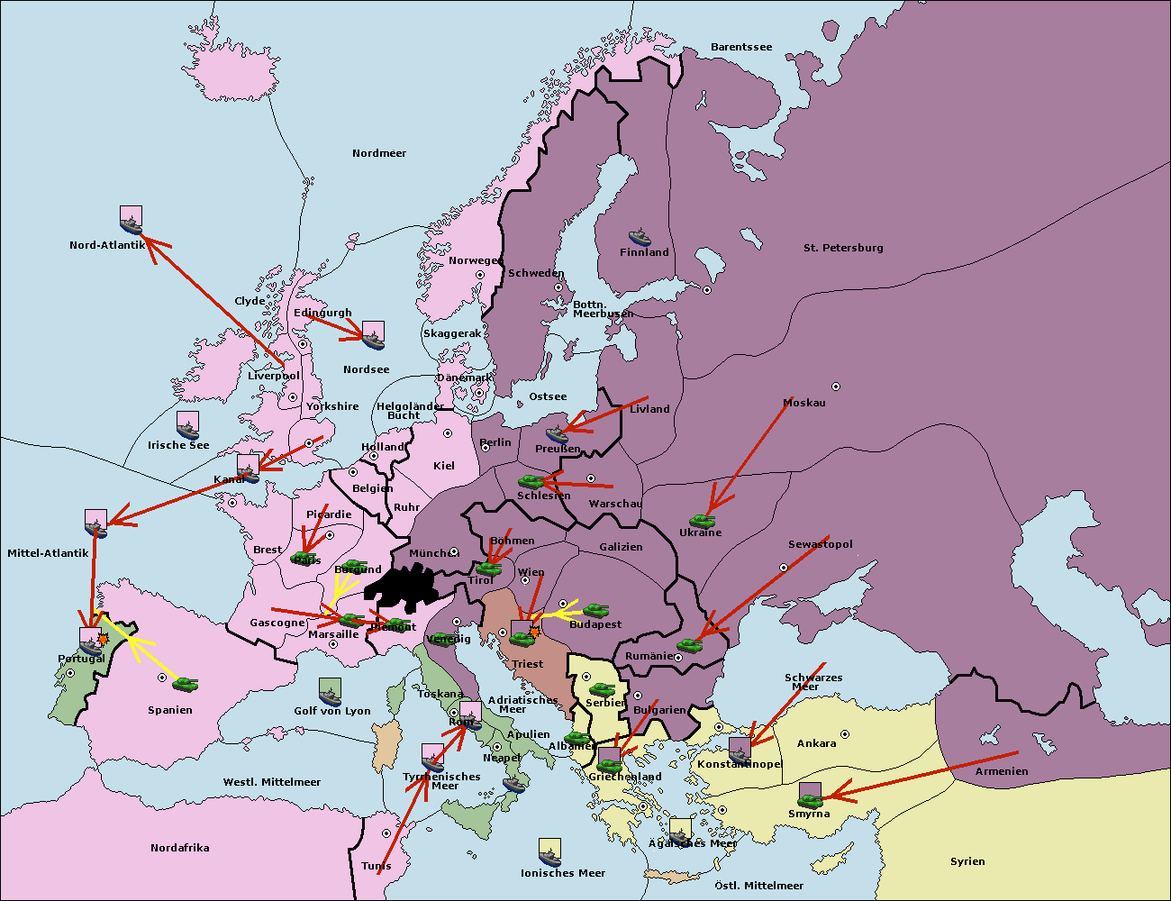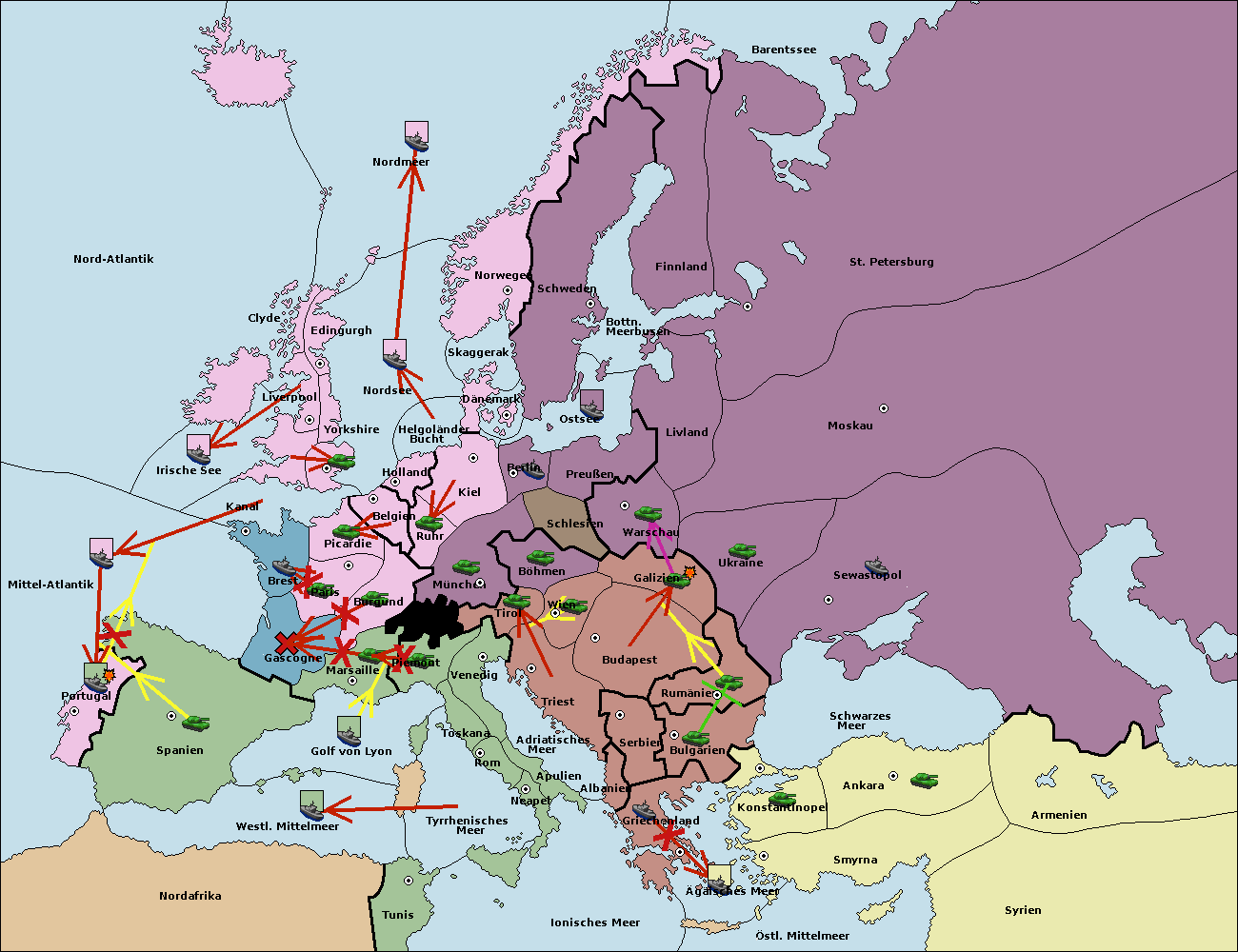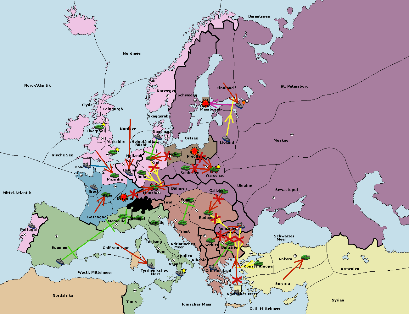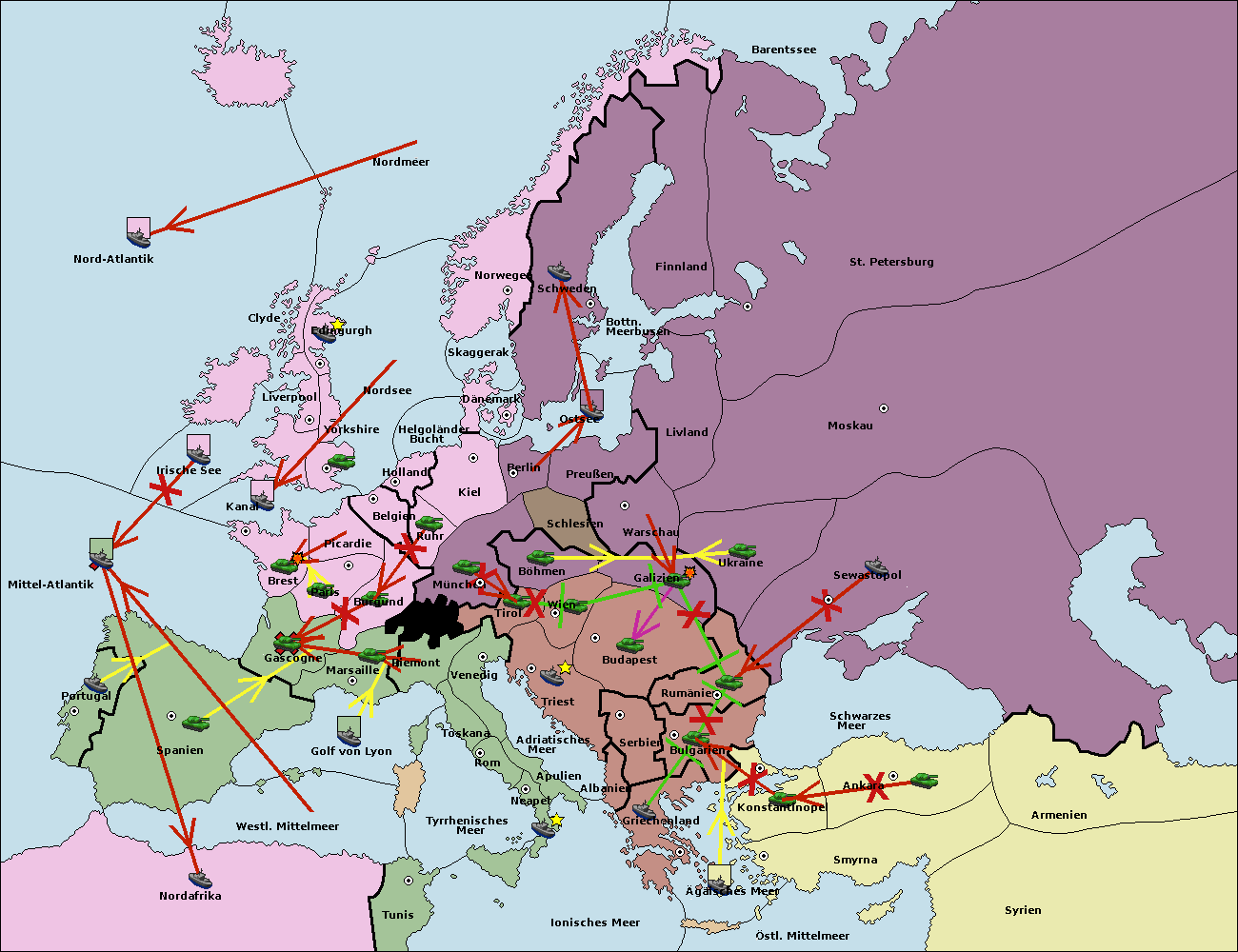 • Die Flotte in Ägäisches Meer support move nach Bulgarien von Konstantinopel. (gescheitert)