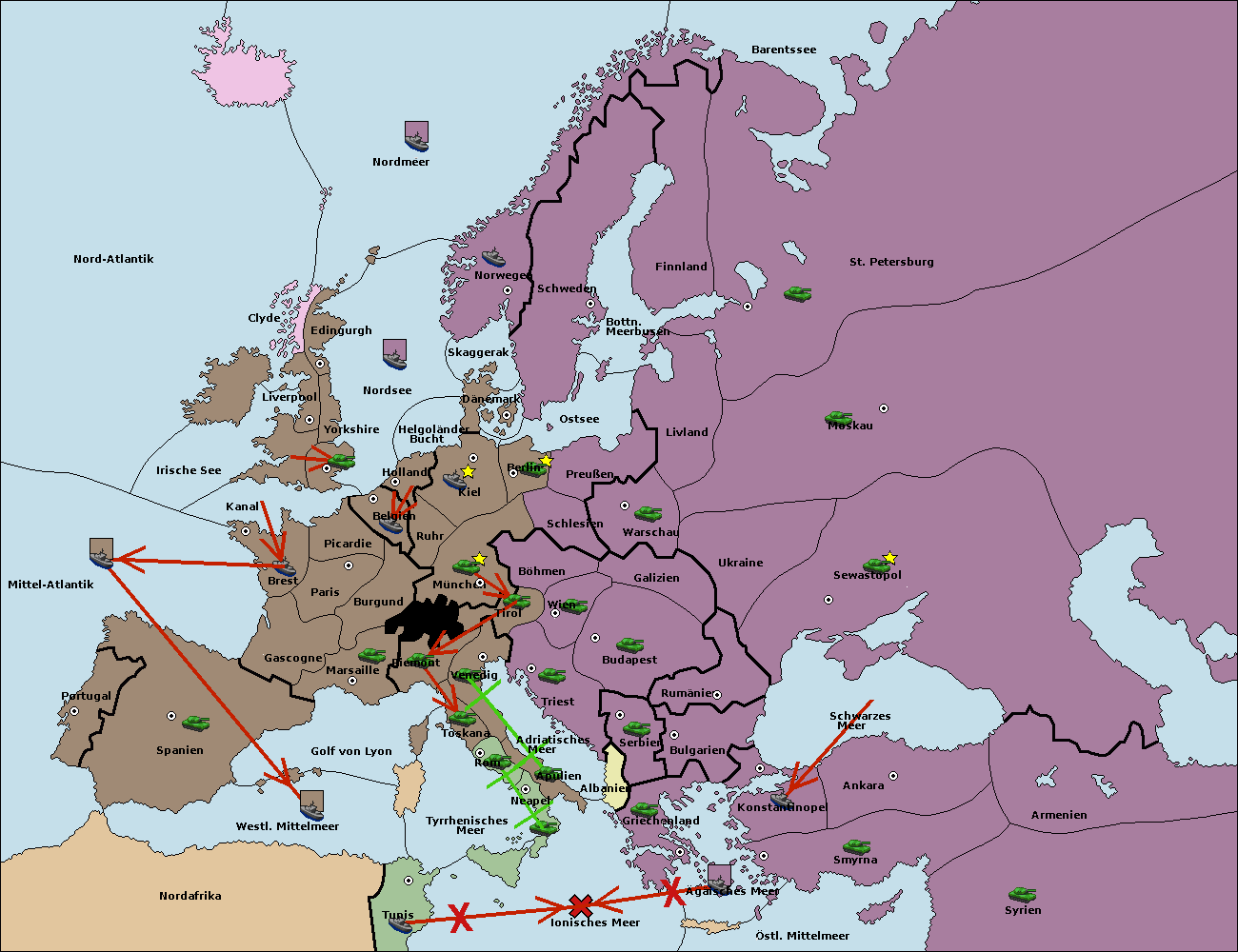 • Die Flotte in Tyrrhenisches Meer support move nach Tunis von westl. Mittelmeer.