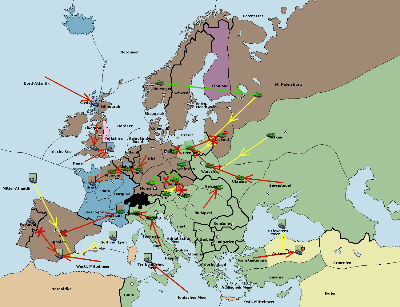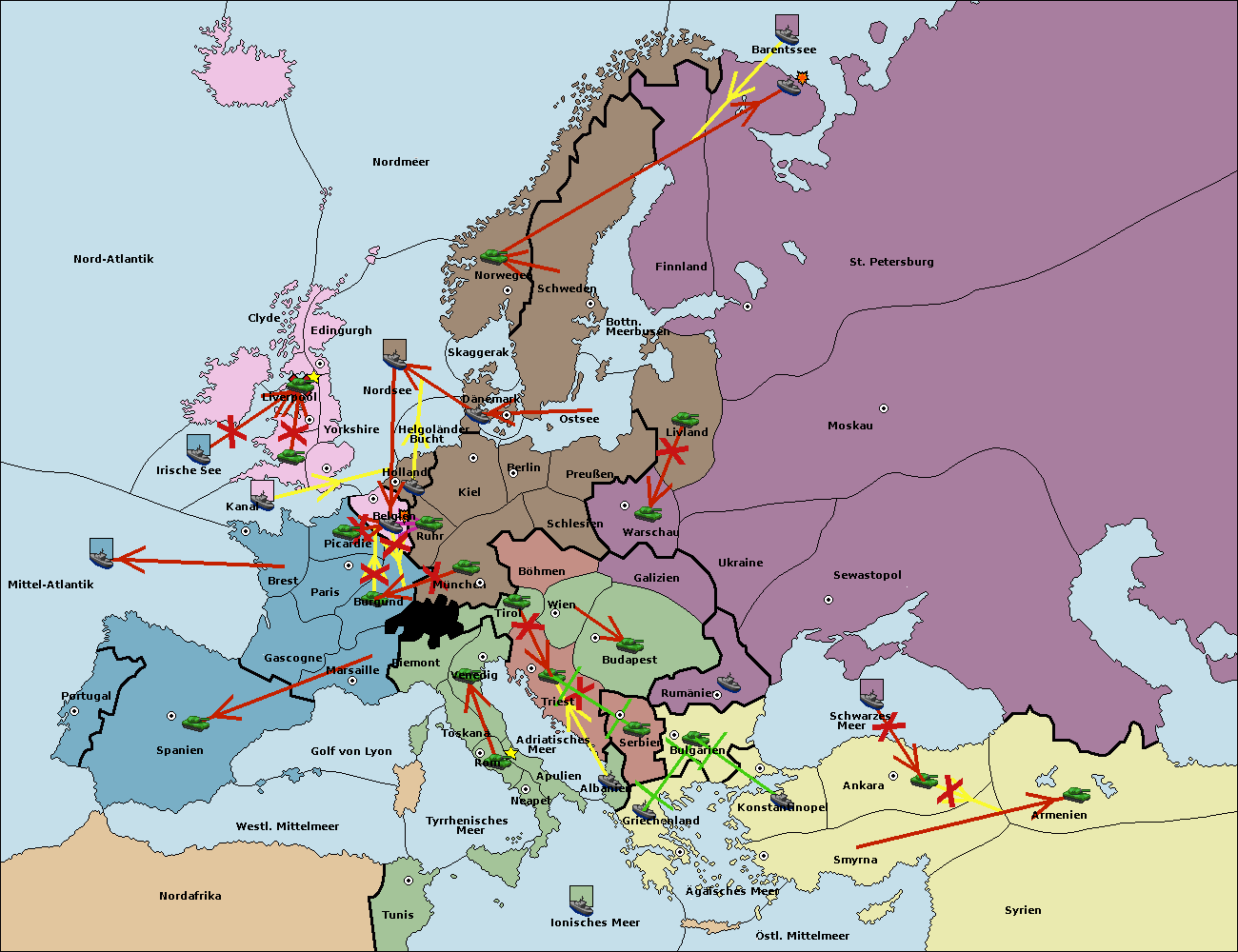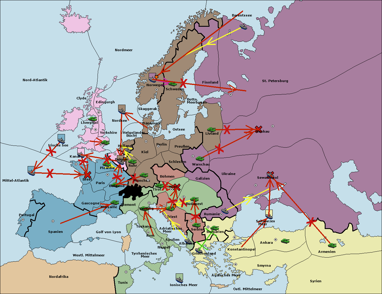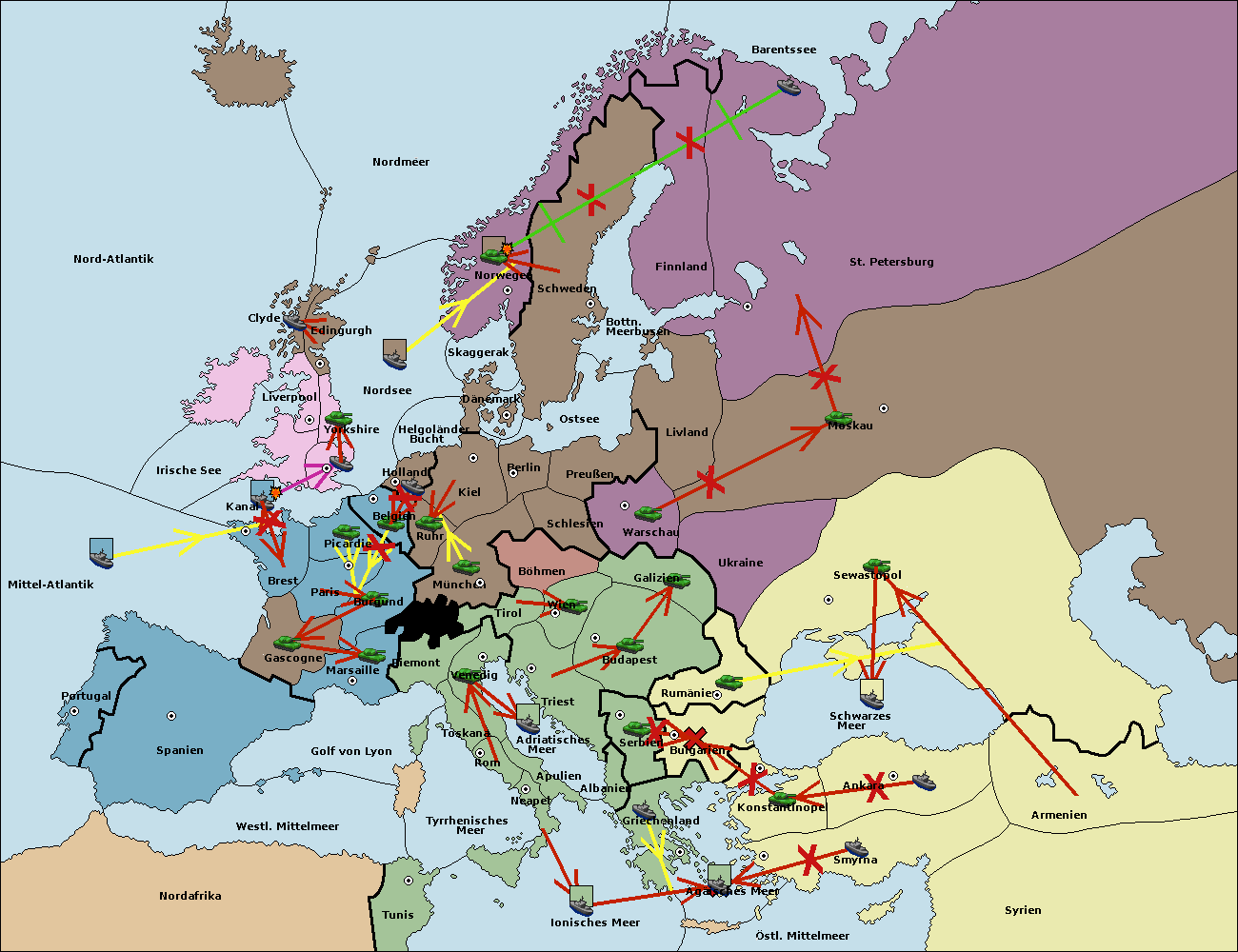 • Die Flotte in Norwegen support move nach St. Petersburg von Barentssee. (gescheitert)