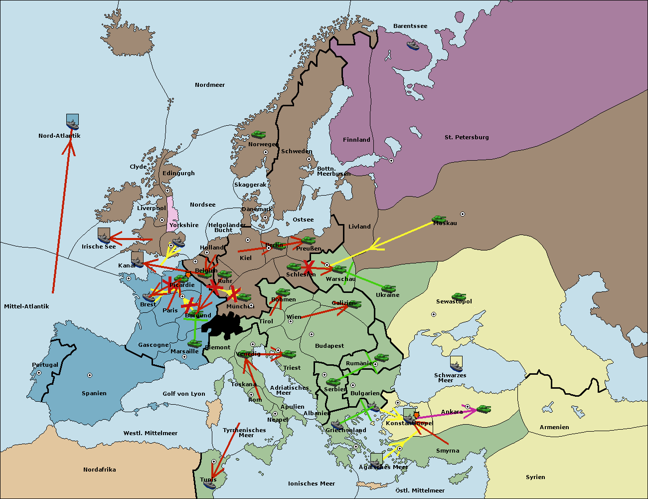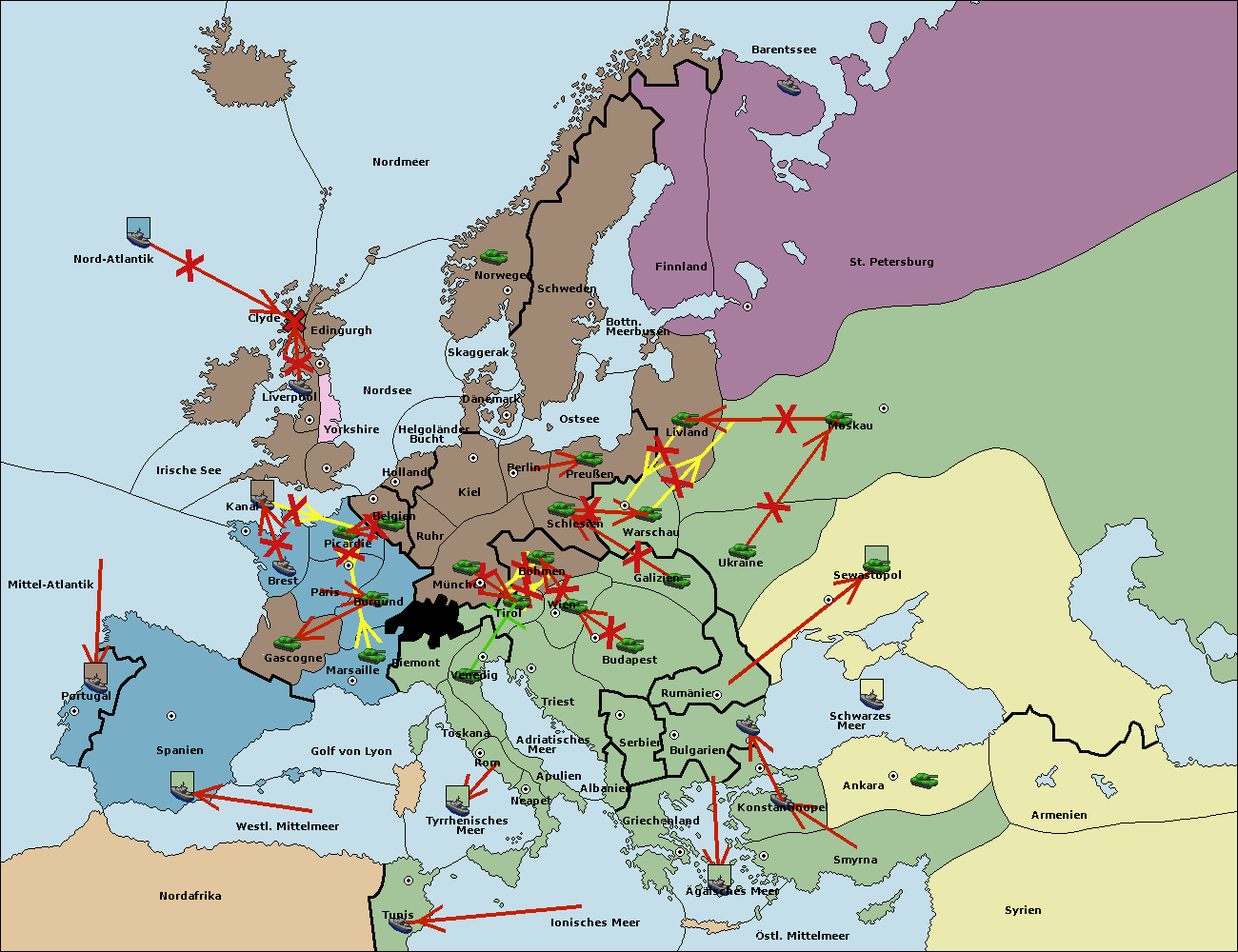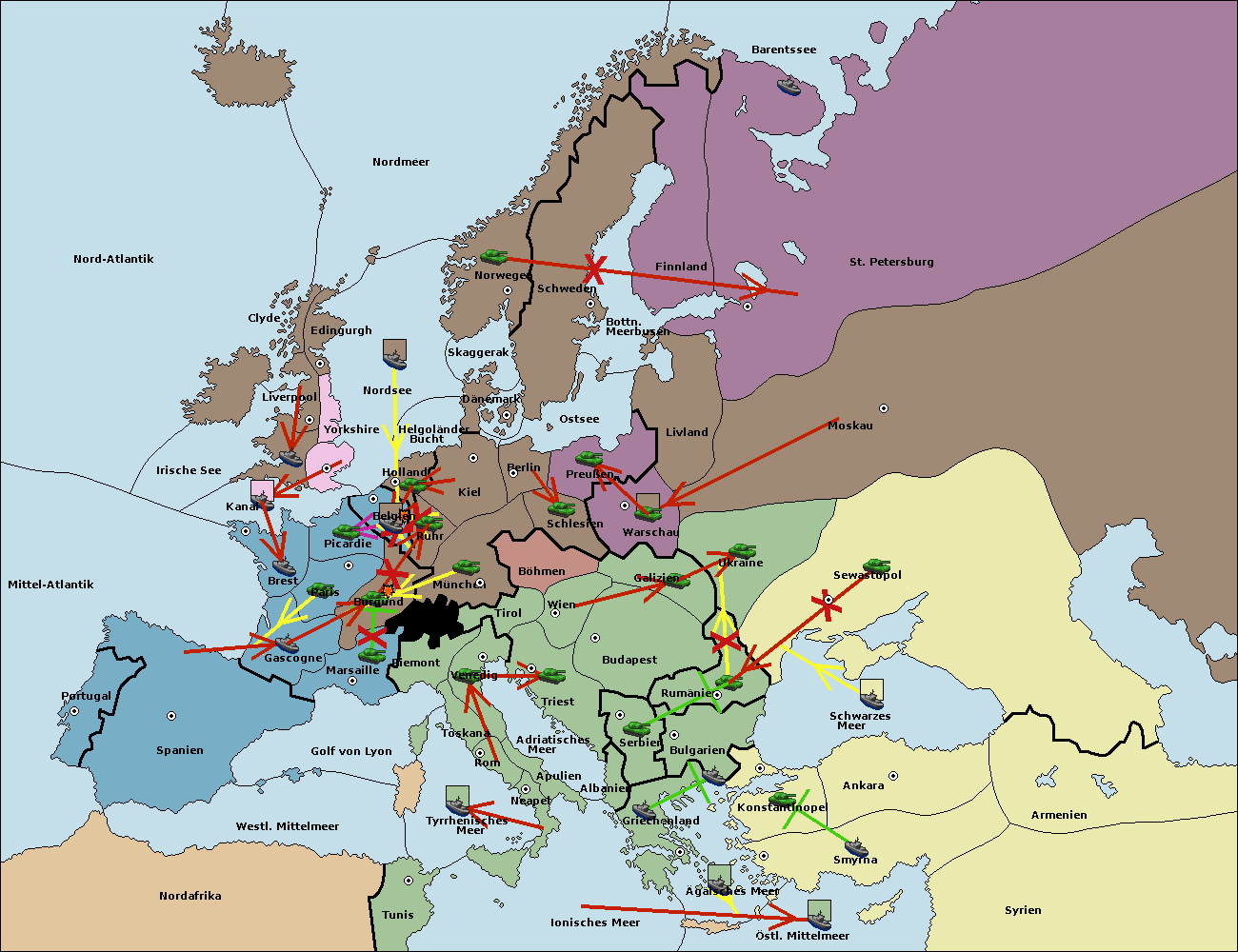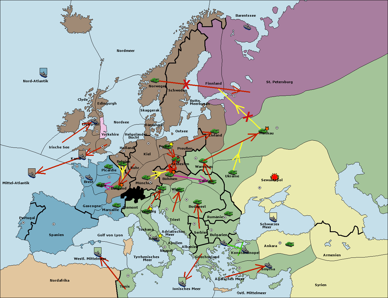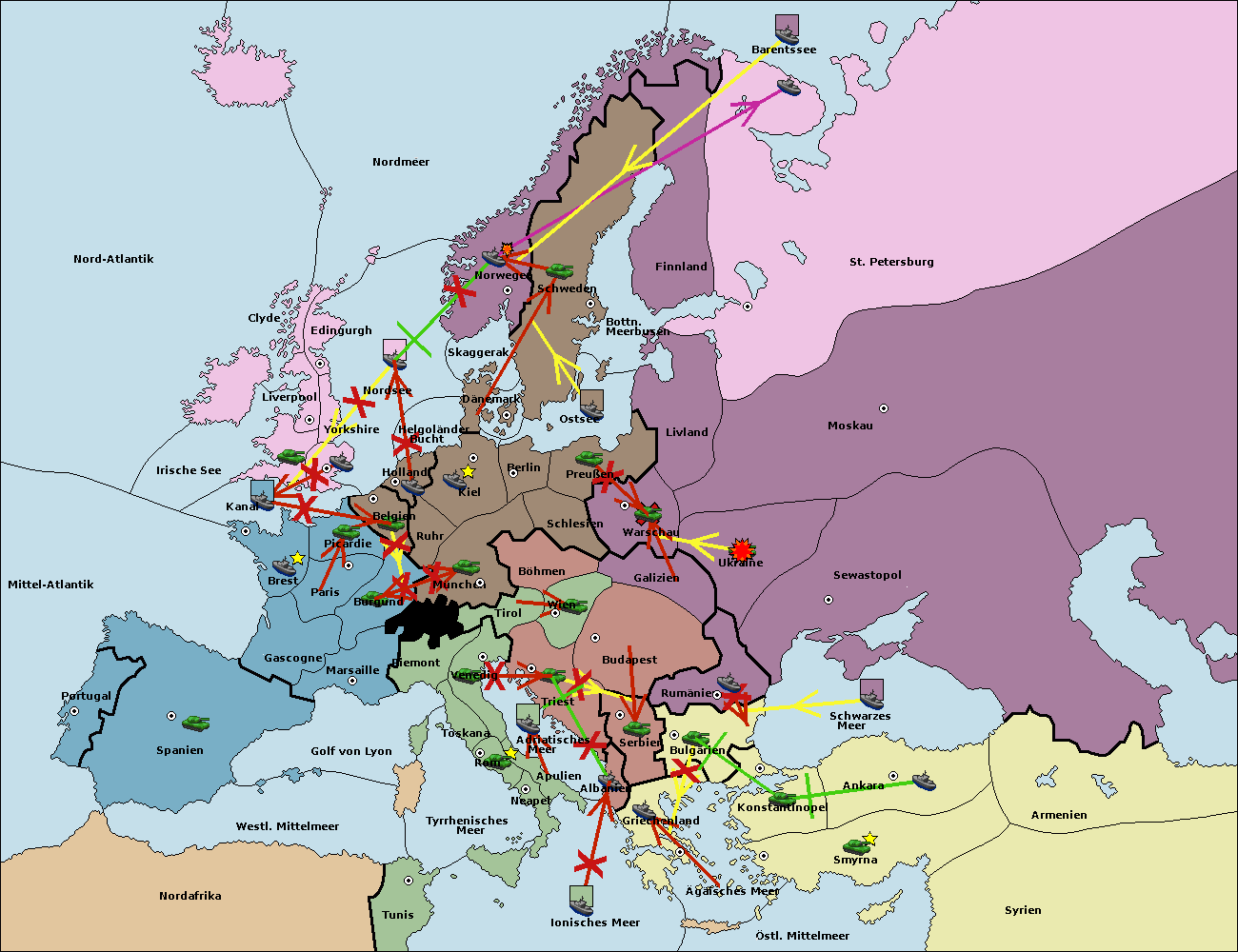 • Die Flotte in Norwegen support move nach St. Petersburg von Barentssee. (gescheitert)