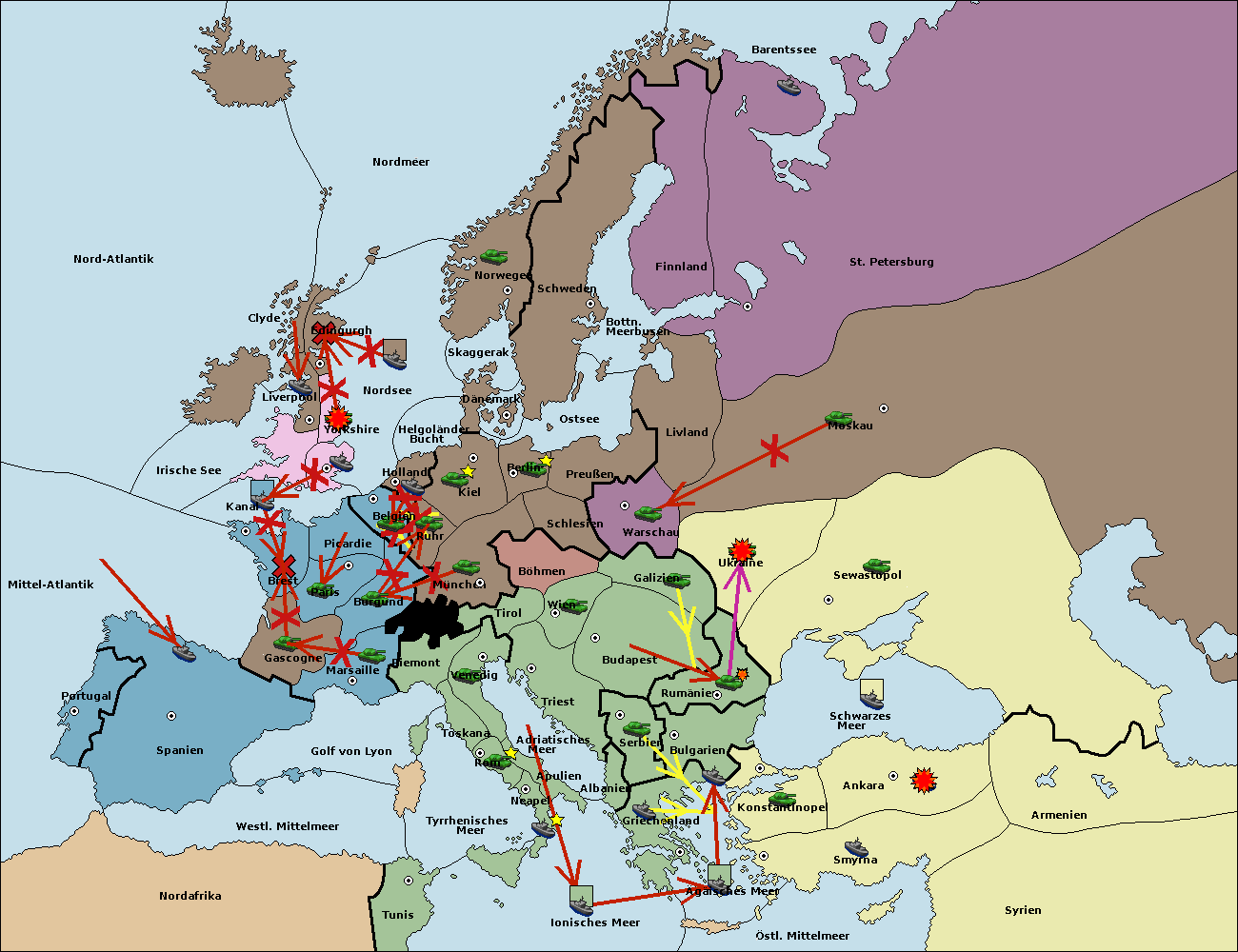 • Die Armee in Konstantinopel support hold nach Bulgarien.