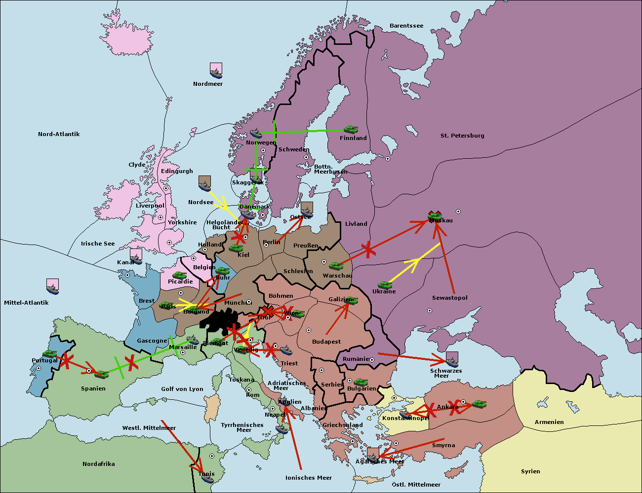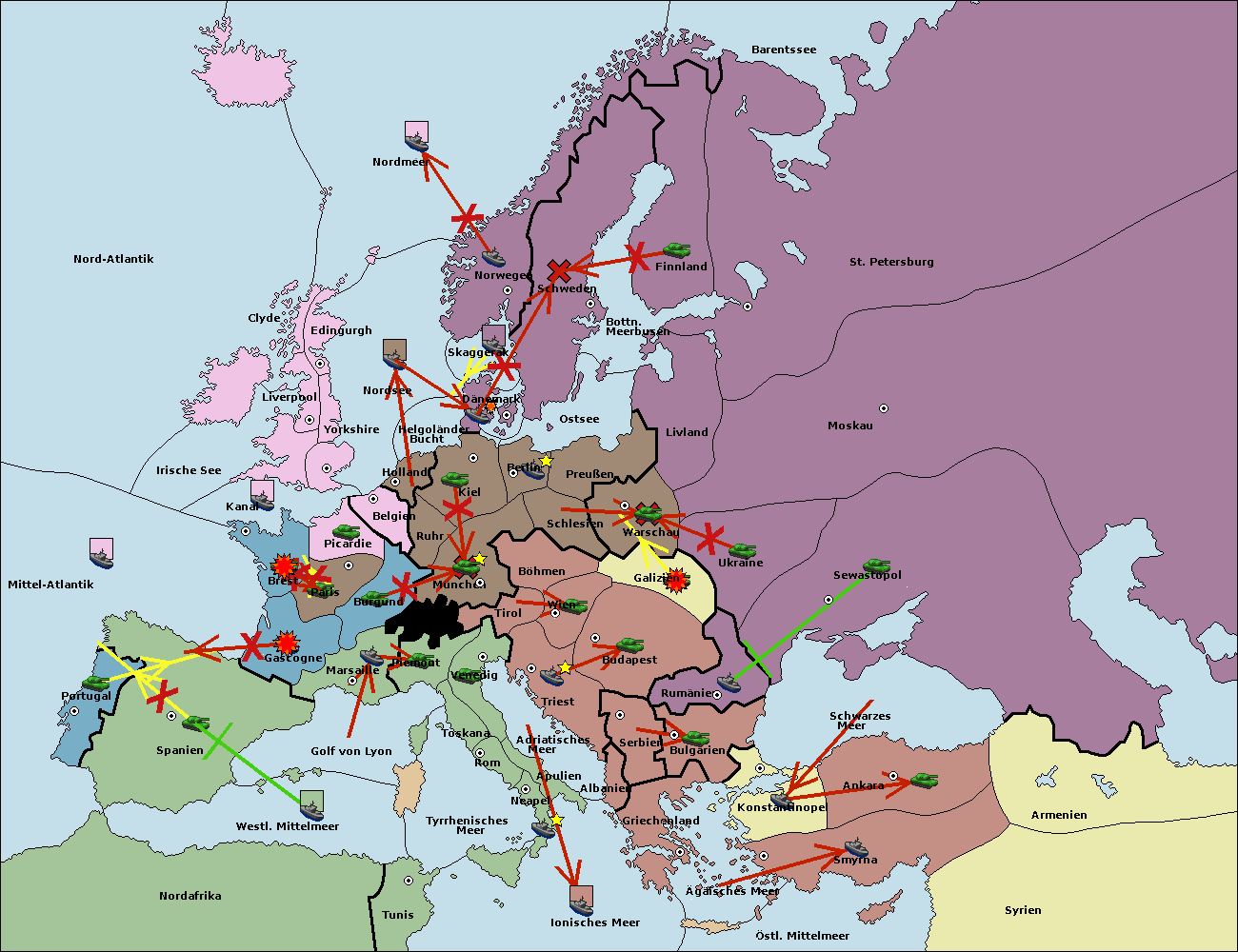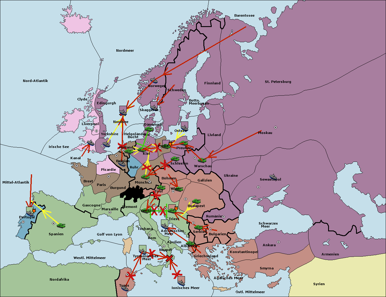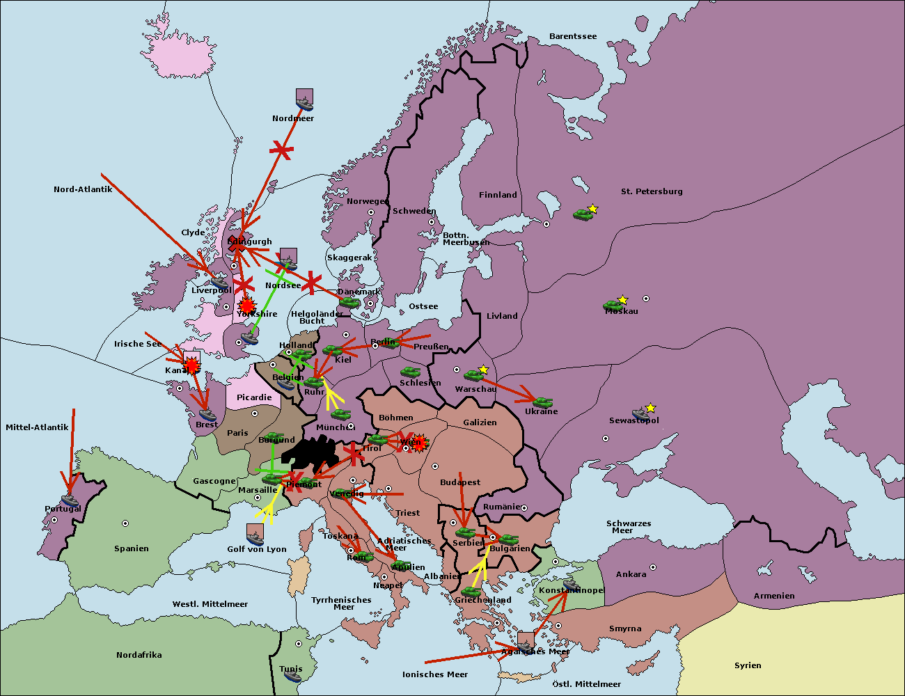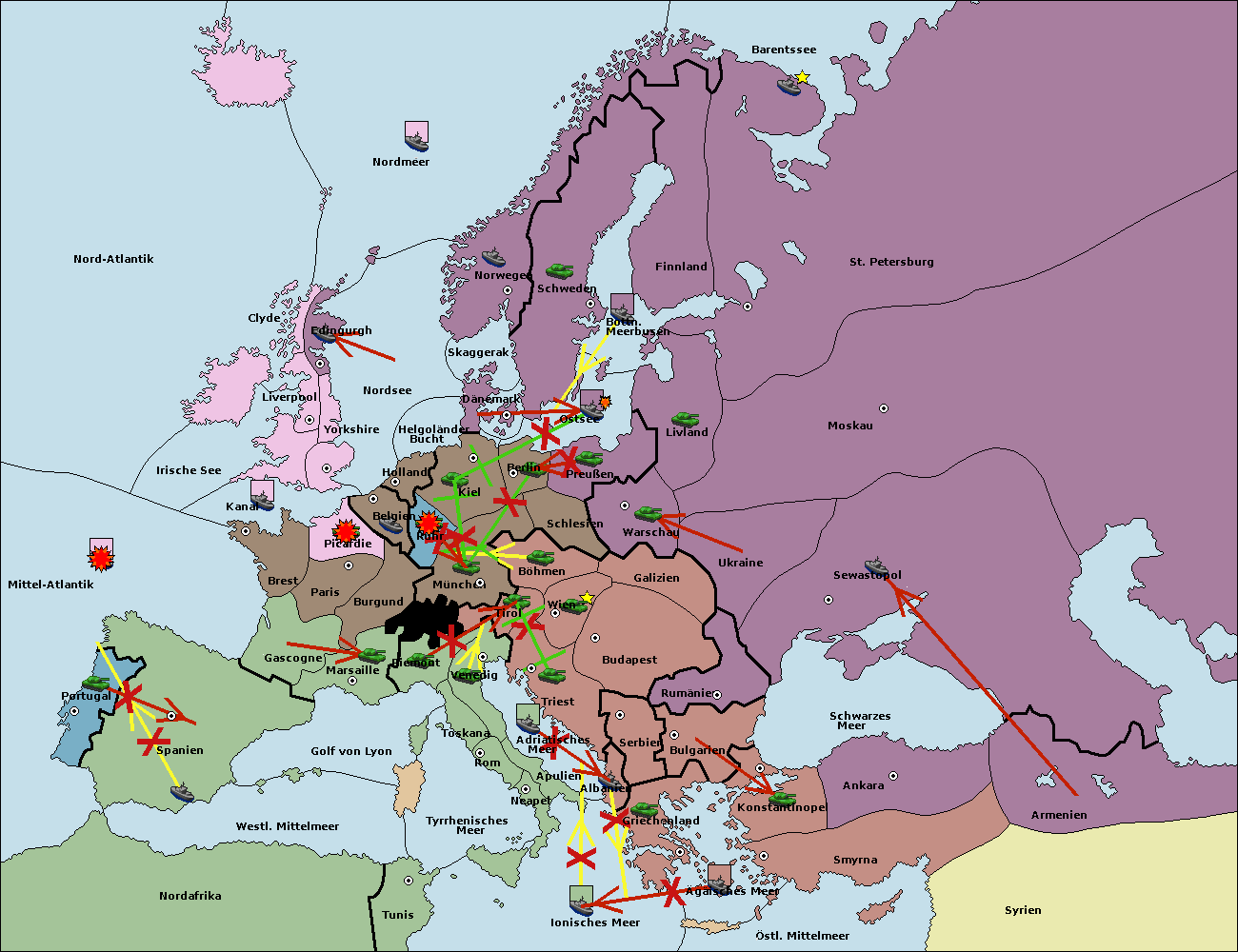• Die Flotte in Bulgarien (Nordküste) zieht sich nach Konstantinopel zurück.
