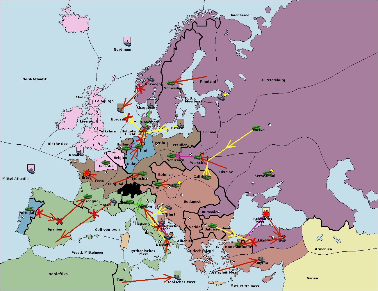 • Die Flotte in Pikardie support move nach Brest von Dänemark.