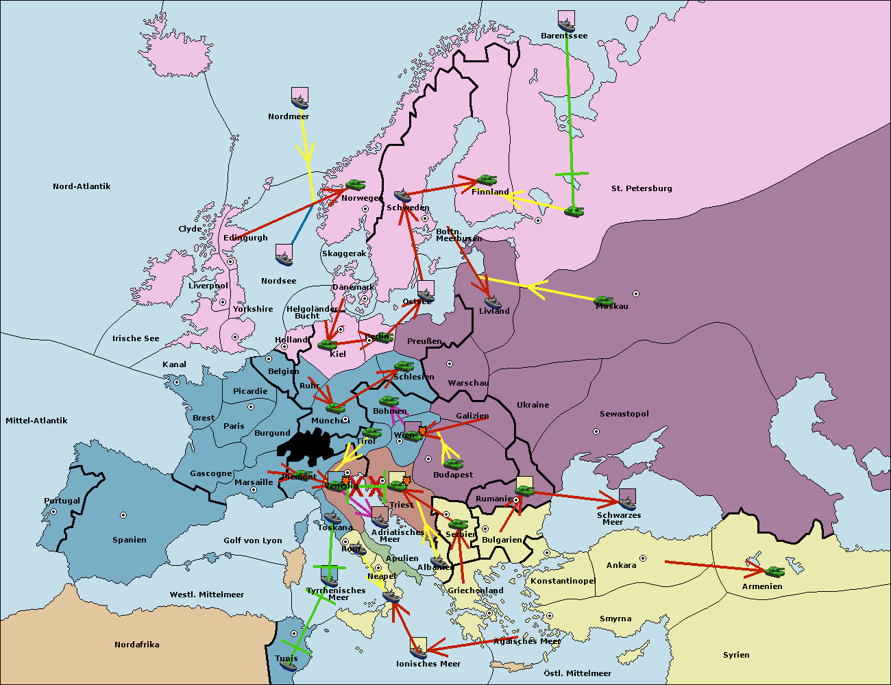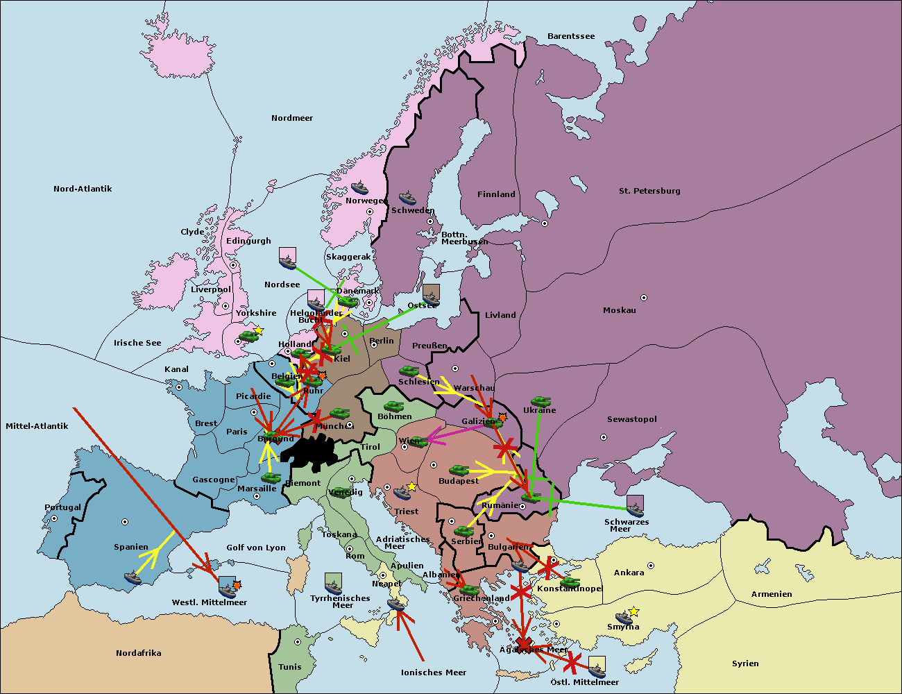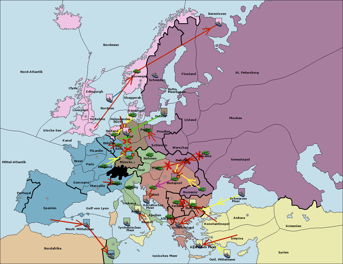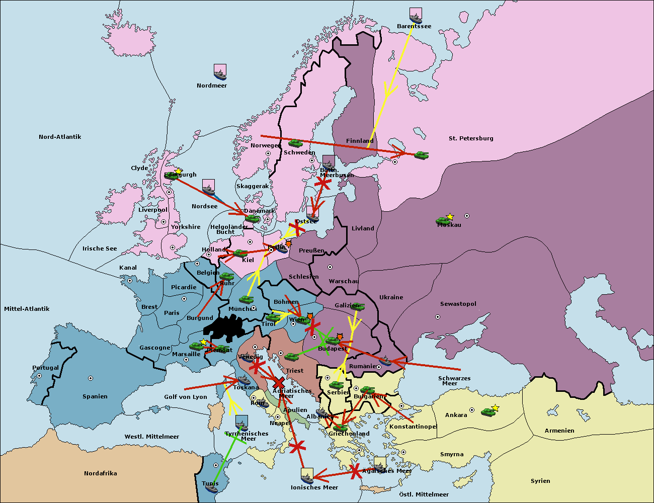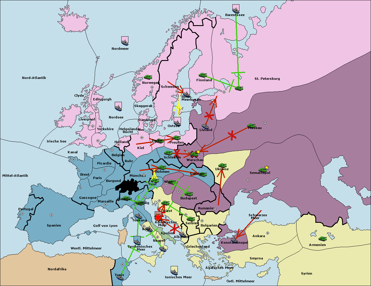 • Die Flotte in Bulgarien (Südküste) move nach Griechenland.