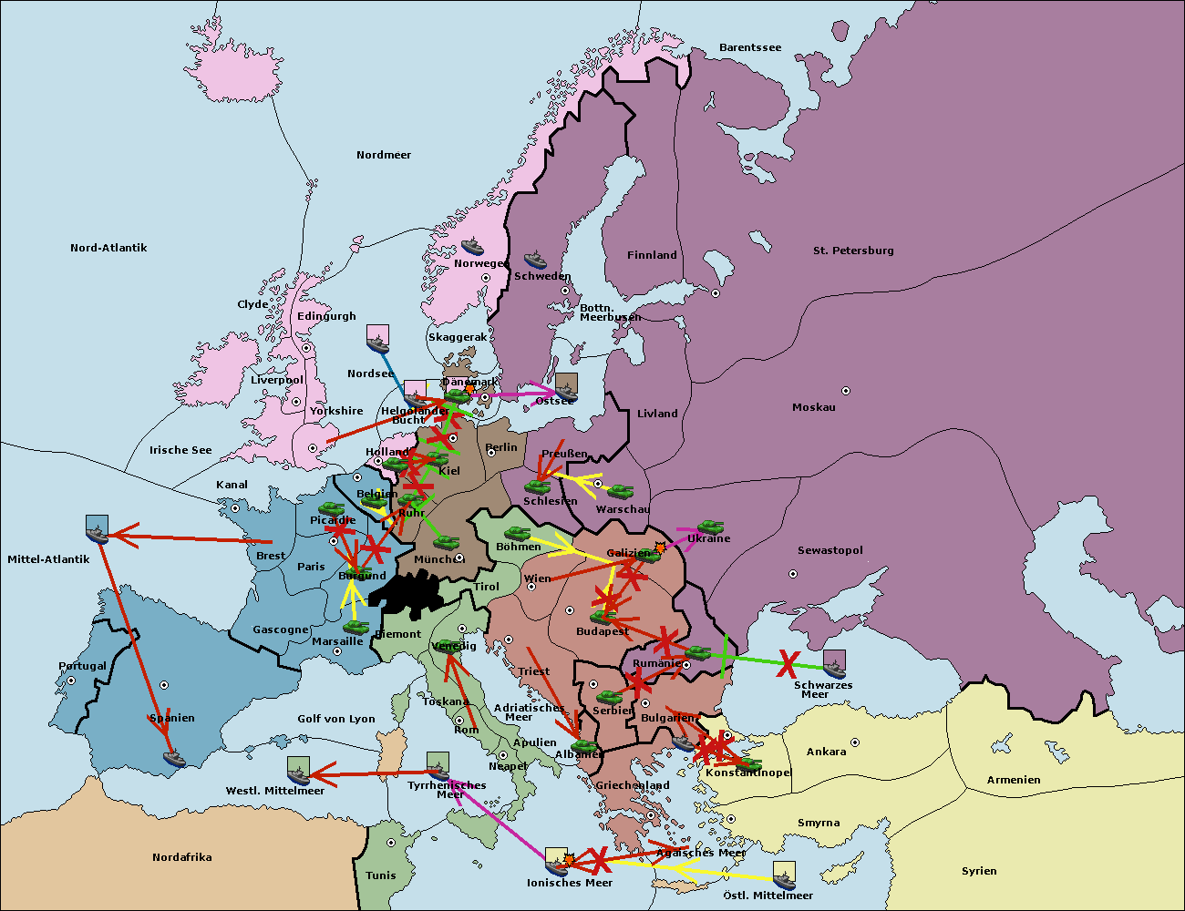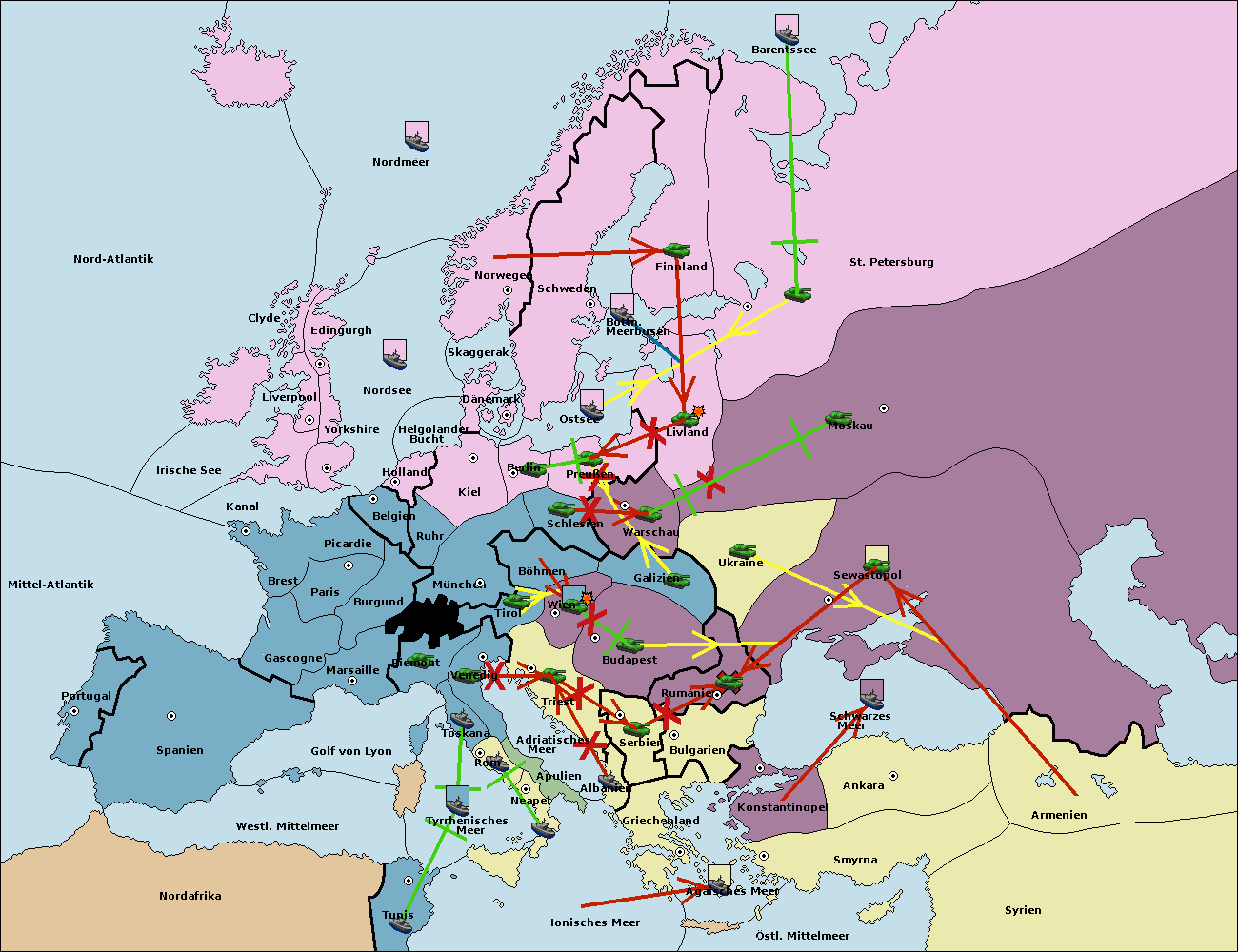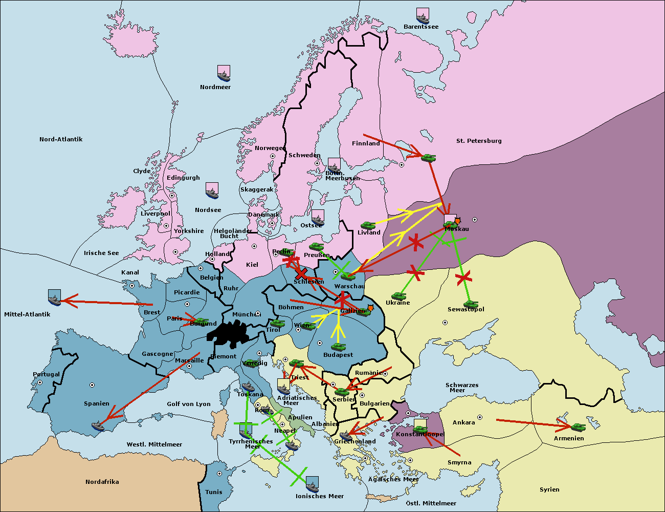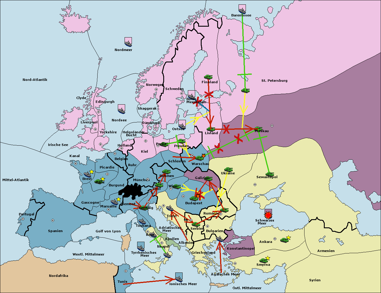 • Die Flotte in Bulgarien (Südküste) move nach Konstantinopel. (gescheitert)