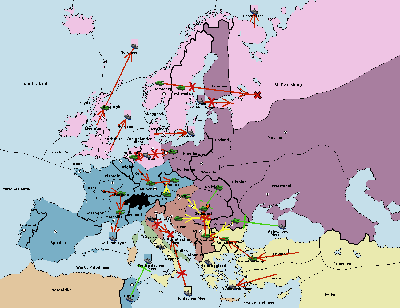 • Die Armee in Budapest support move nach Galizien von Wien. (gescheitert)