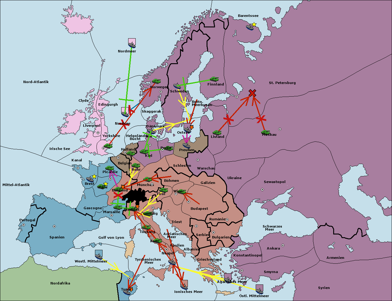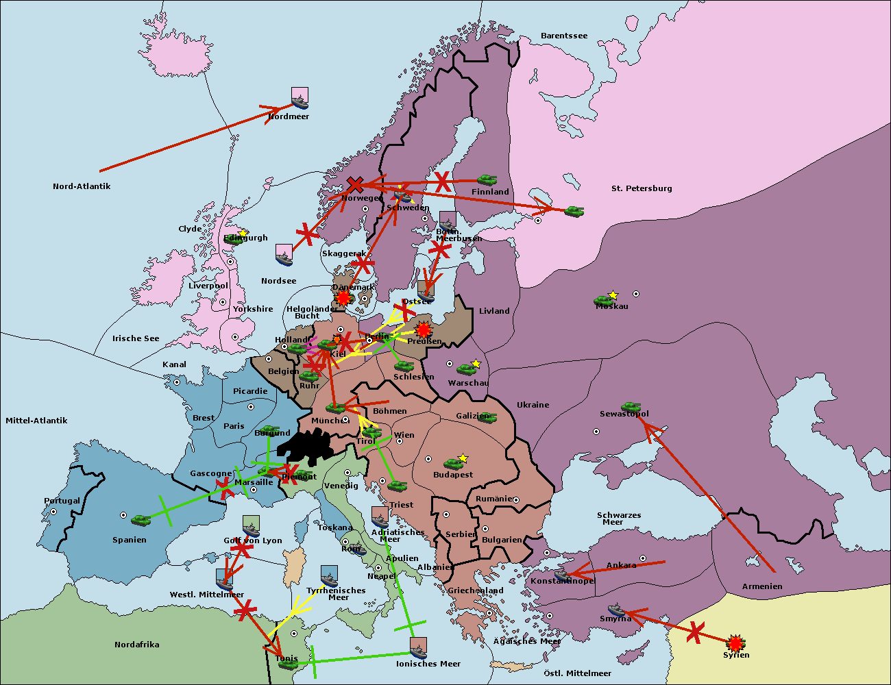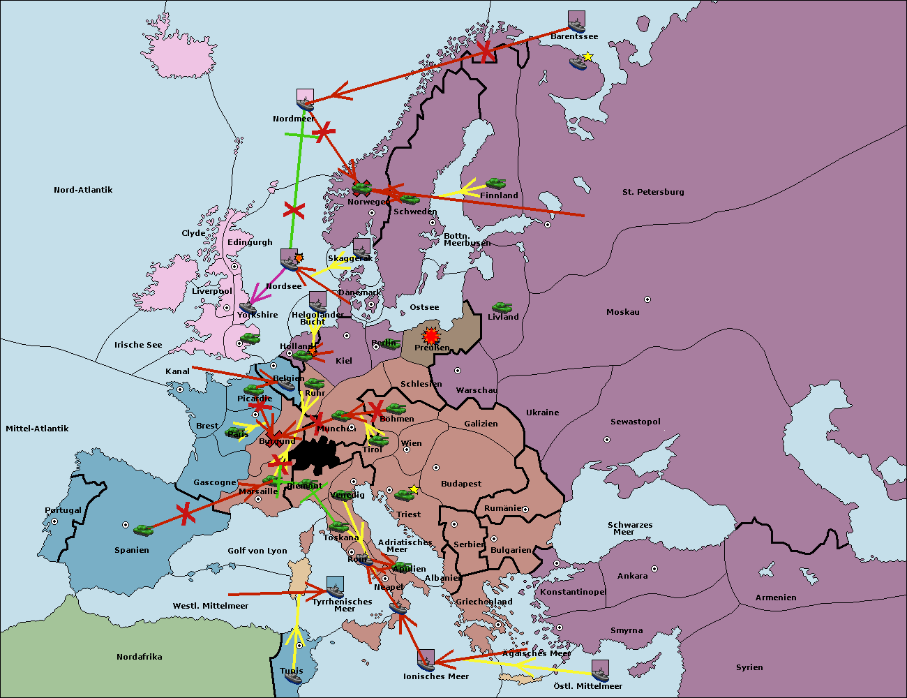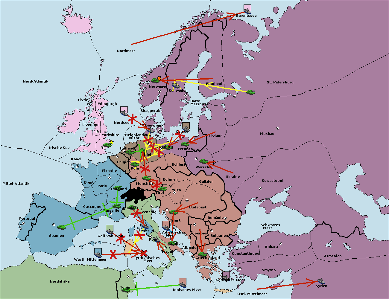 • Die Flotte in St. Petersburg (Nordküste) move nach Barentssee.