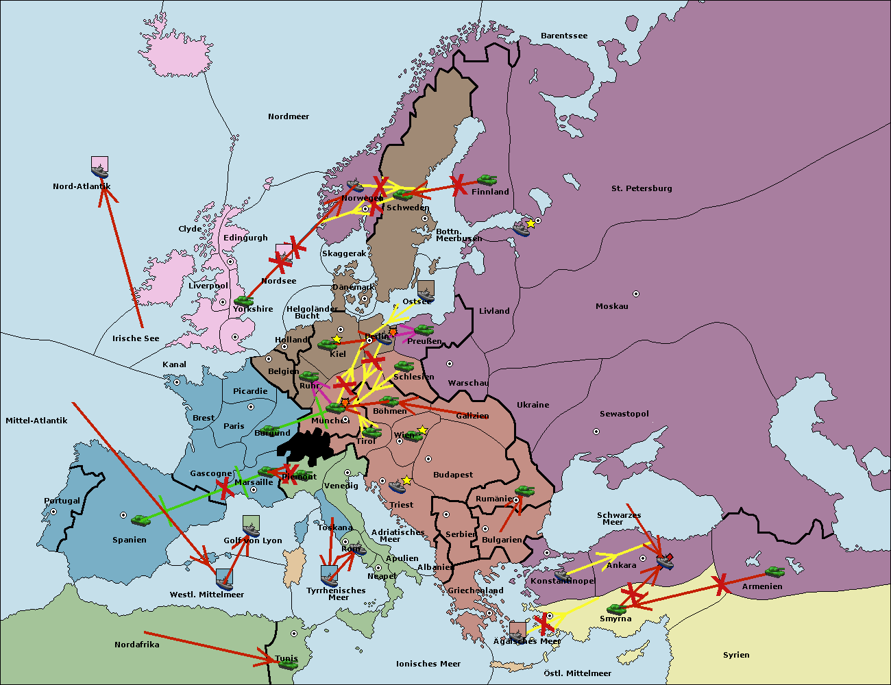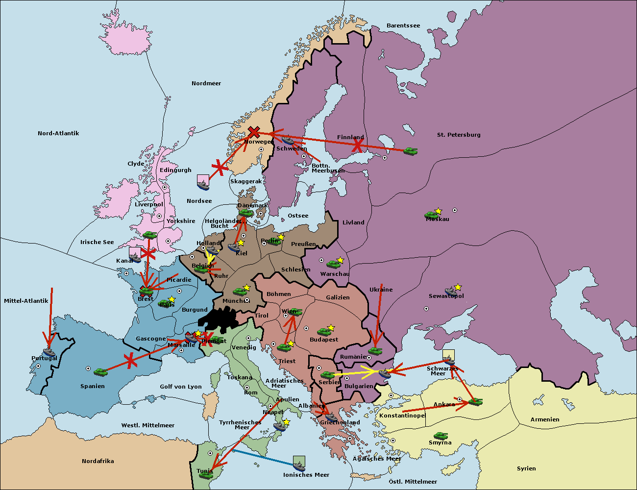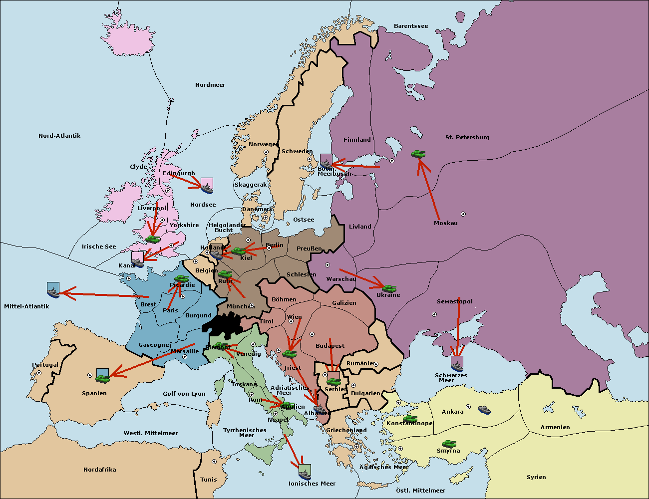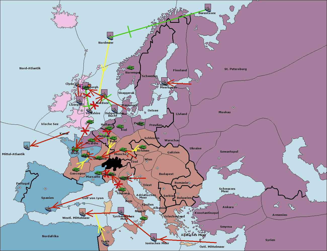 • Die Flotte in St. Petersburg (Nordküste) move nach Barentssee.