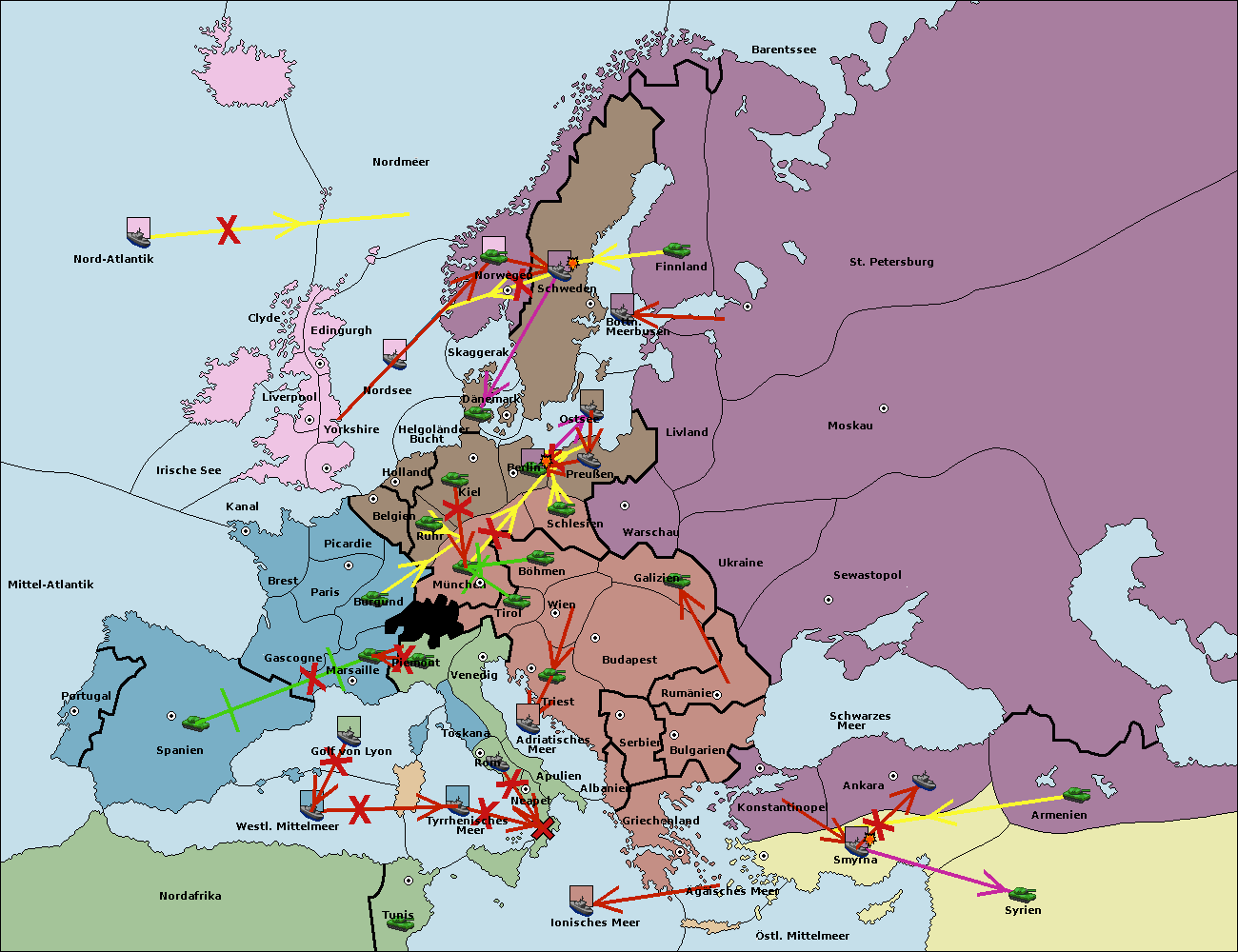 • Die Armee in St. Petersburg move nach Norwegen. (gescheitert)