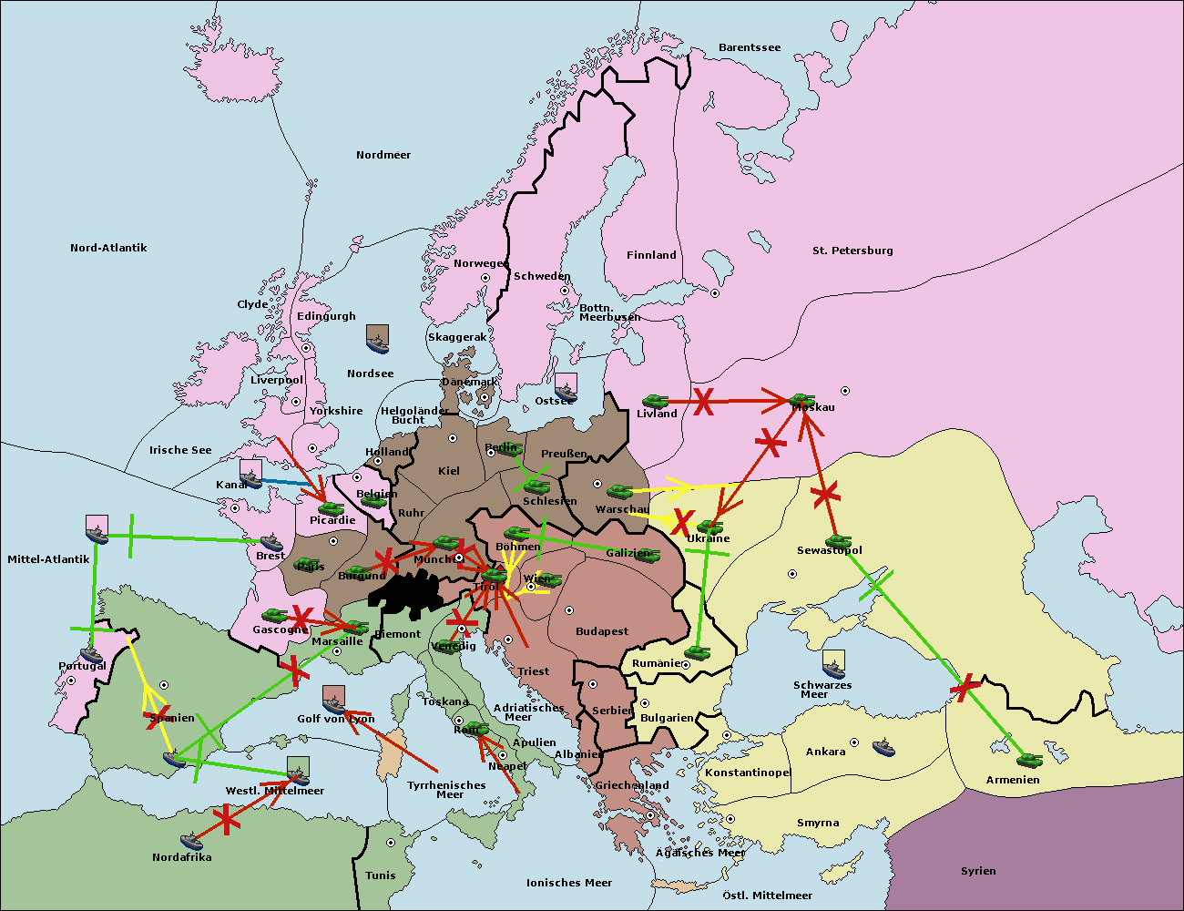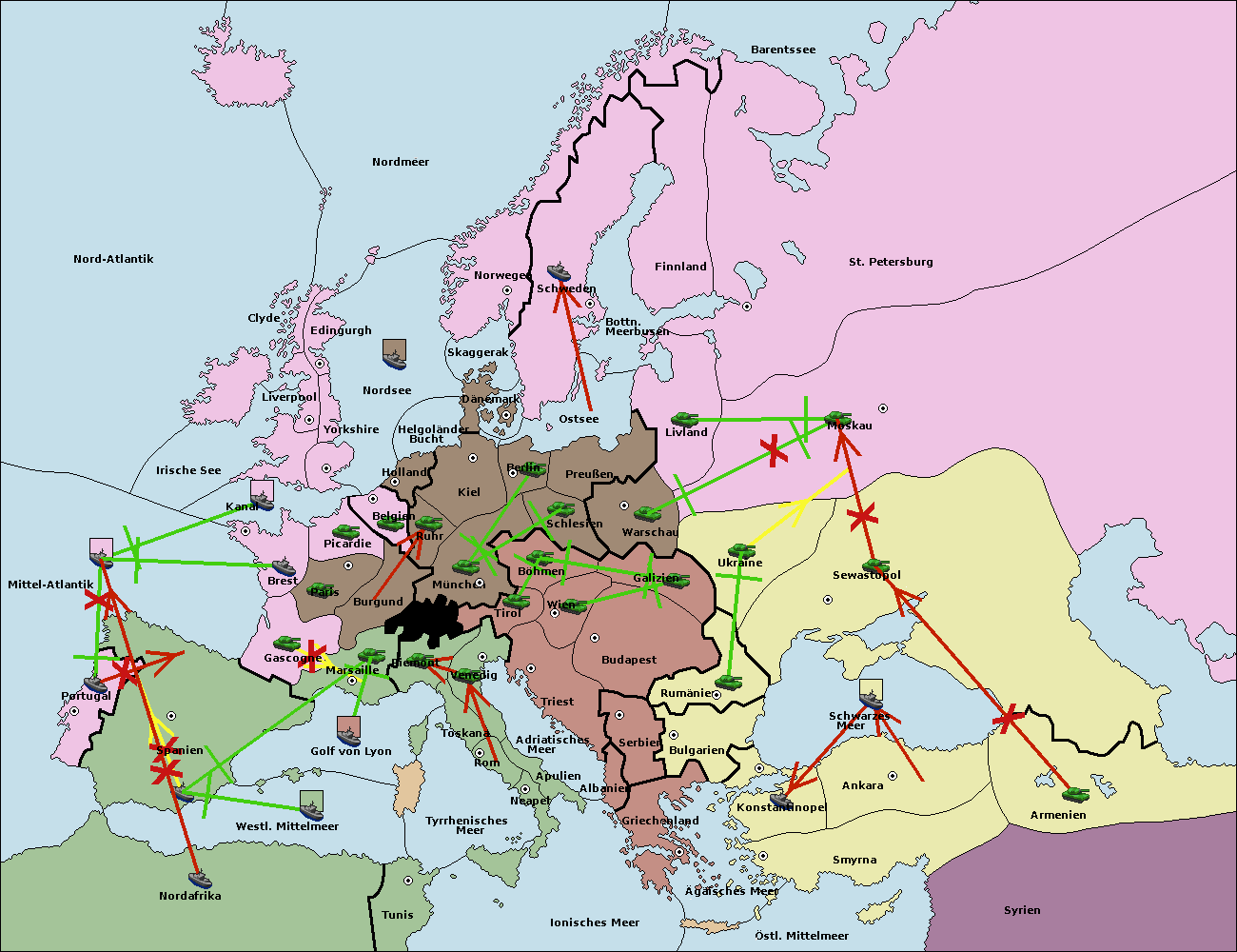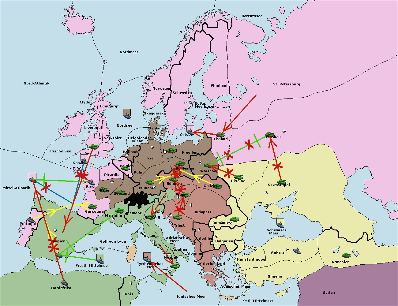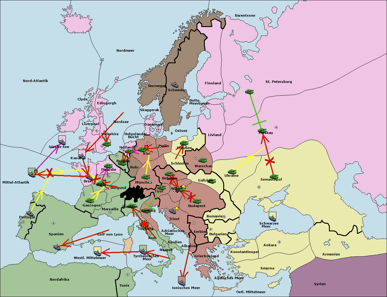 • Die Flotte in Spanien (Südküste) support move nach Golf von Lyon von westl. Mittelmeer.
