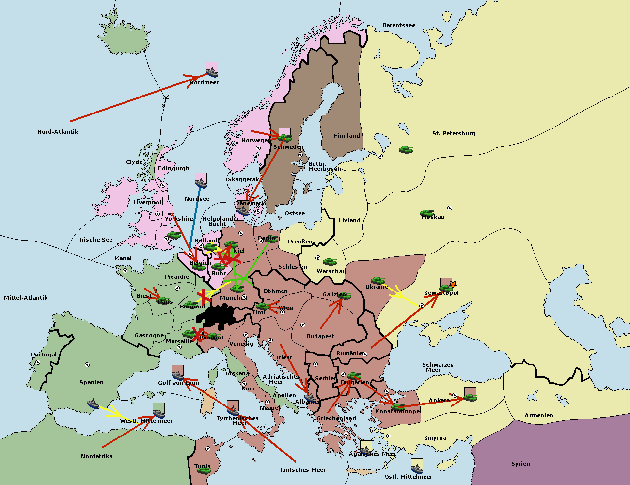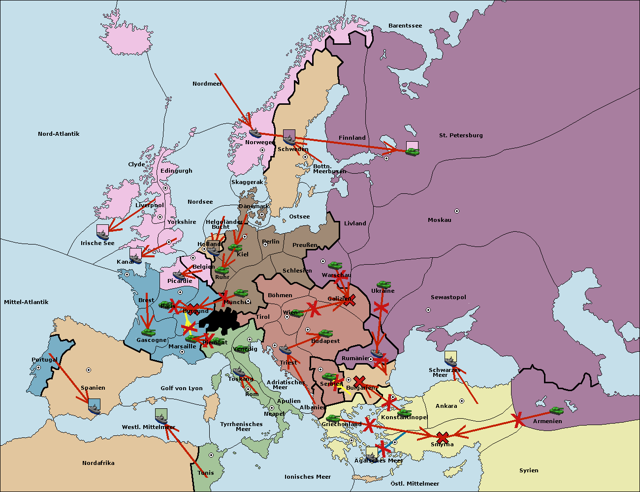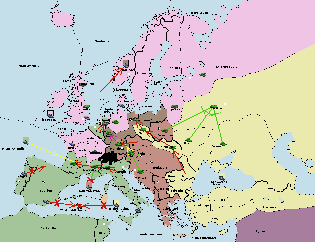• Die Armee in Kiel support hold nach München. (gescheitert)