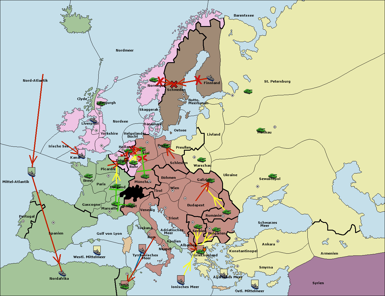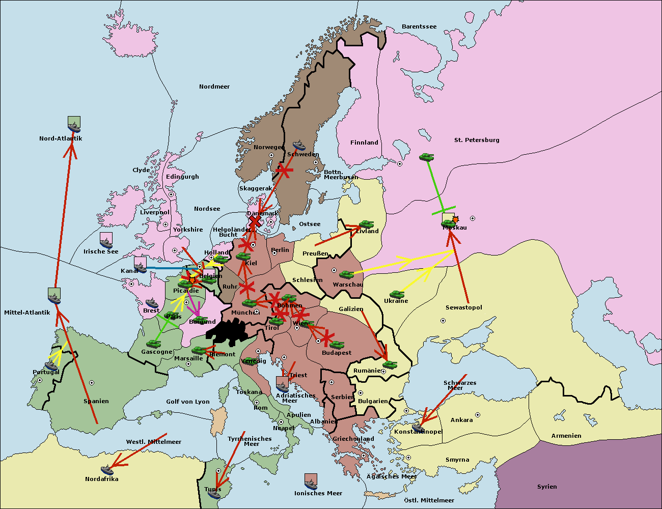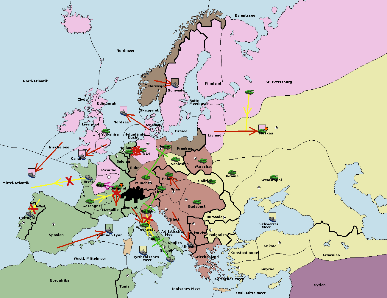 • Die Flotte in Nord Afrika move nach Tunis. (gescheitert)