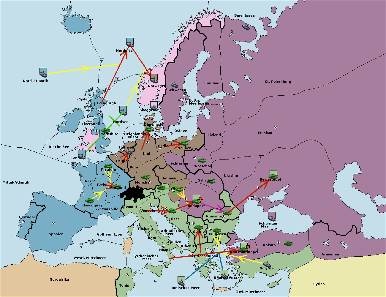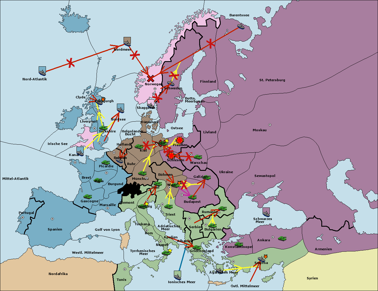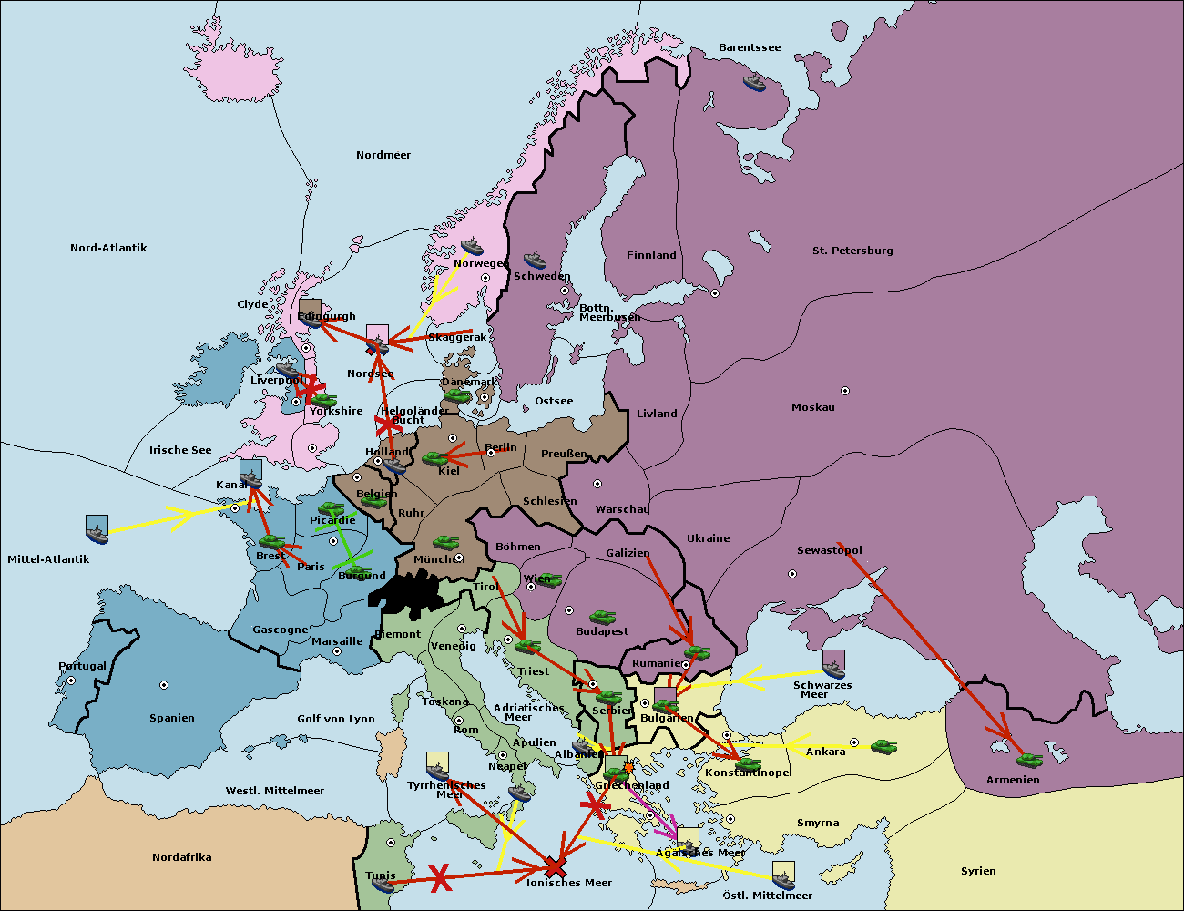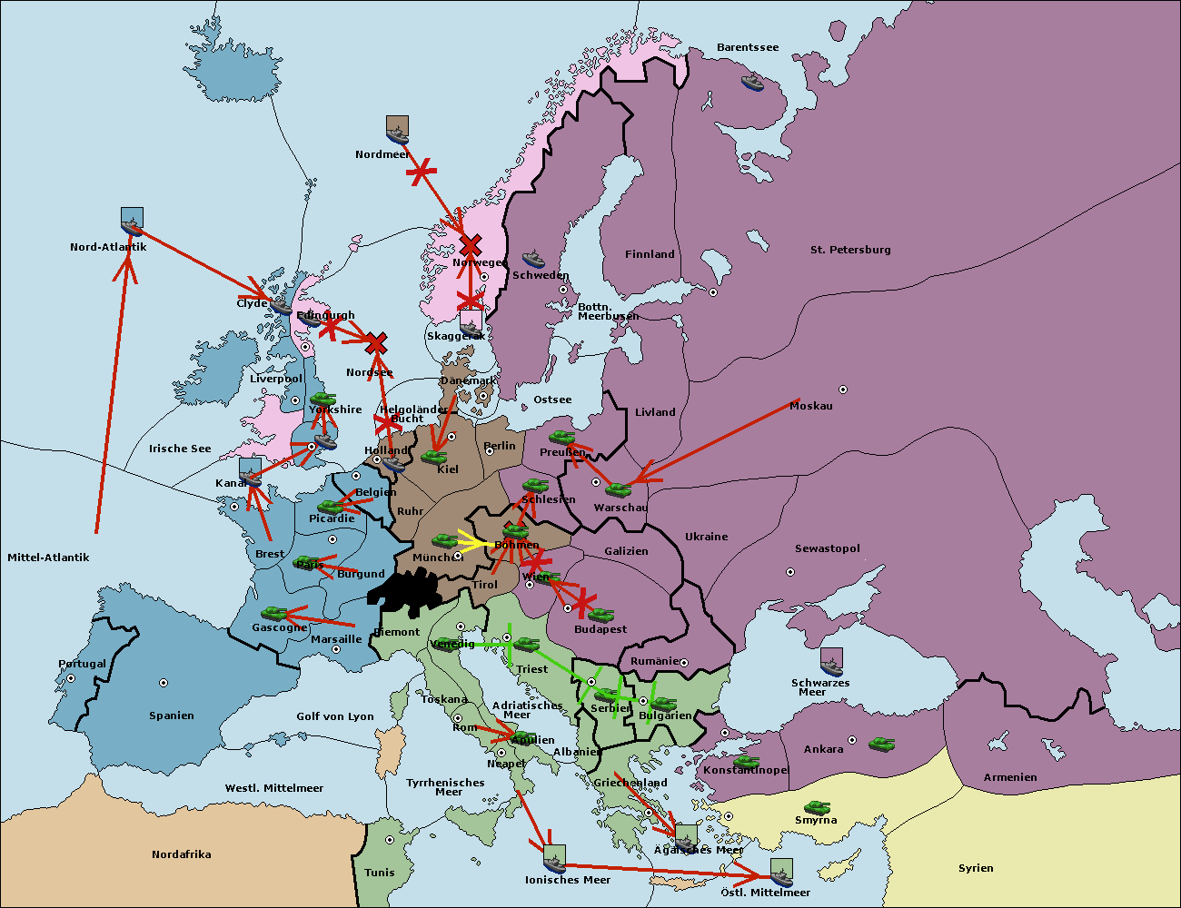 • Die Armee in München wird zerstörtFlotte in München gebaut.