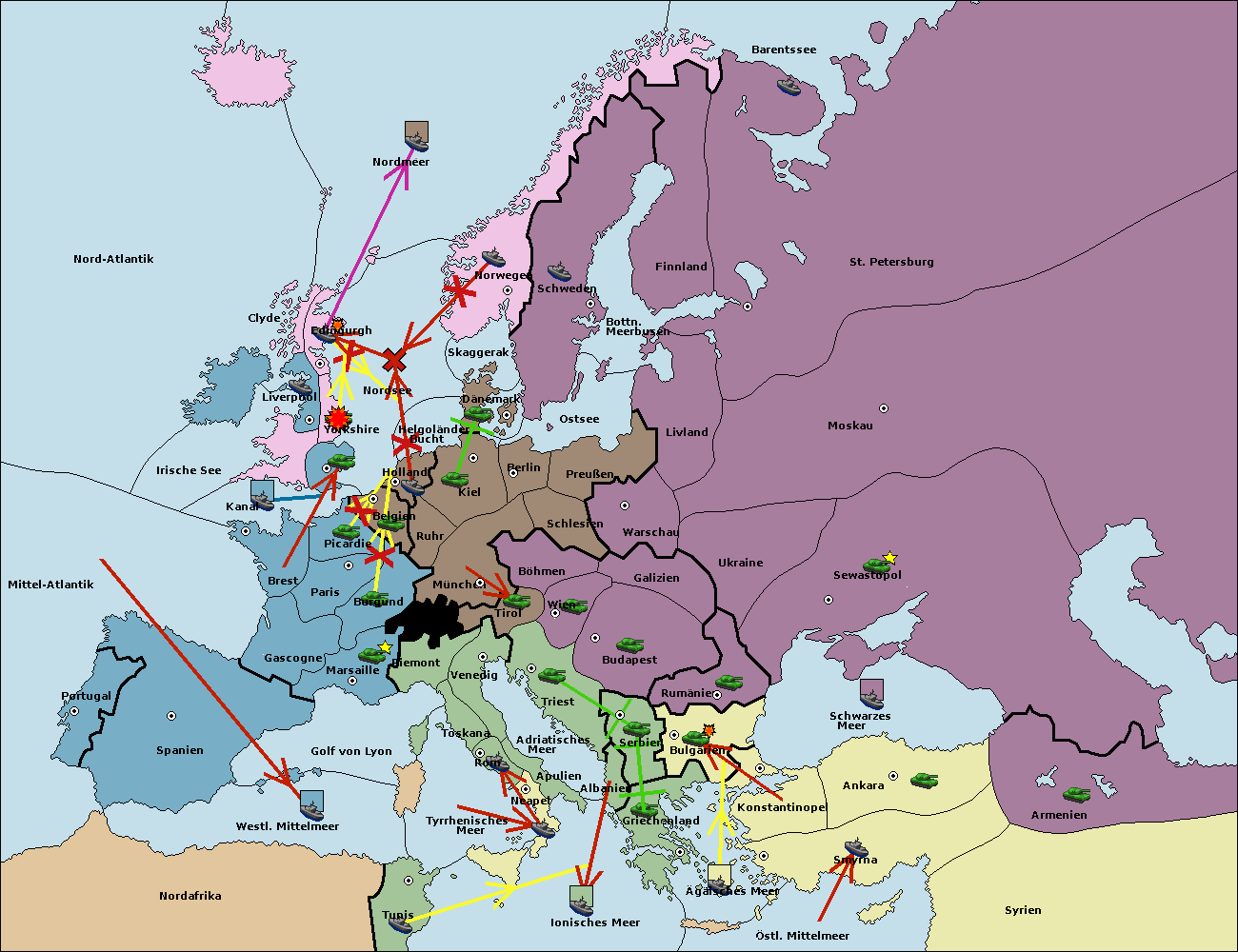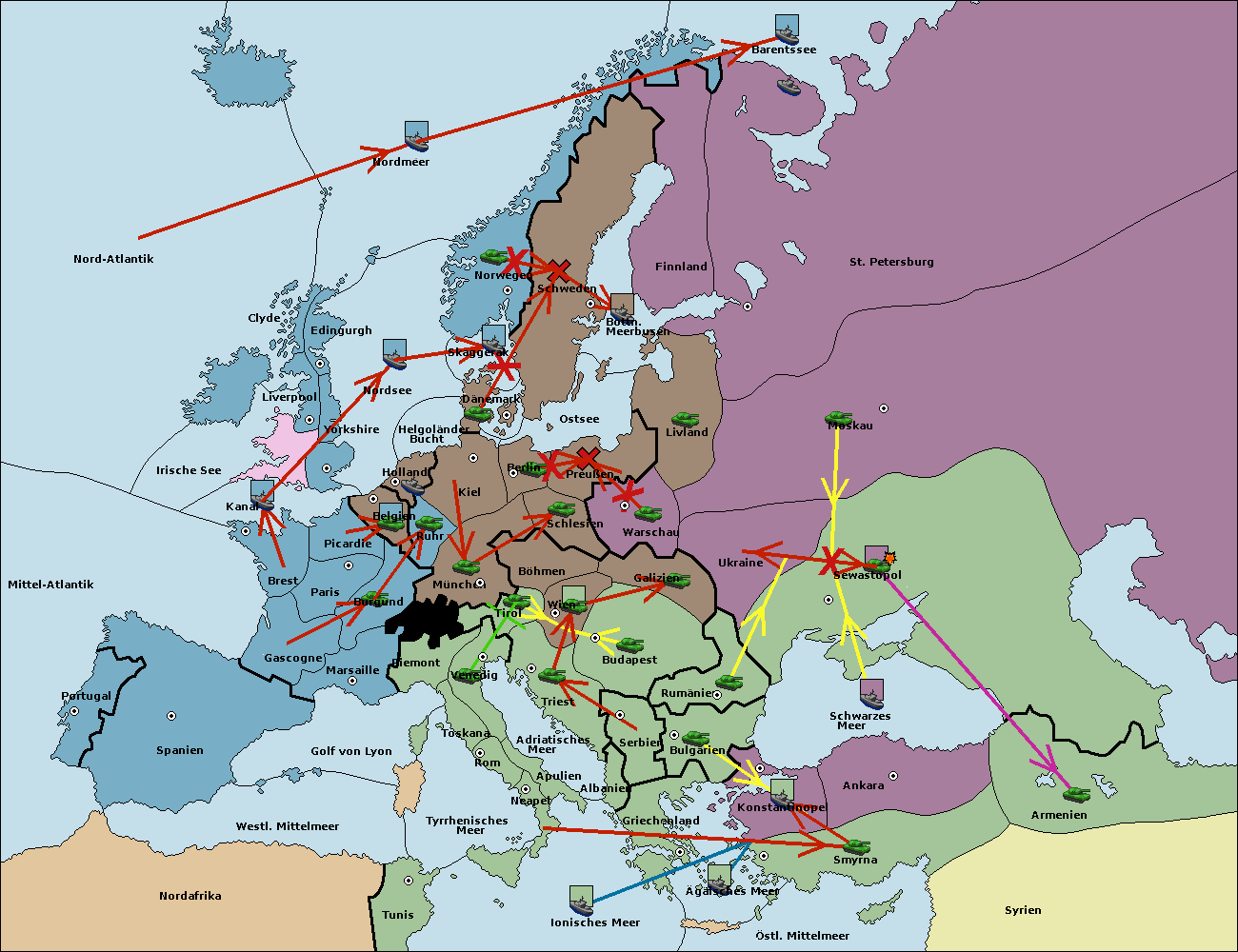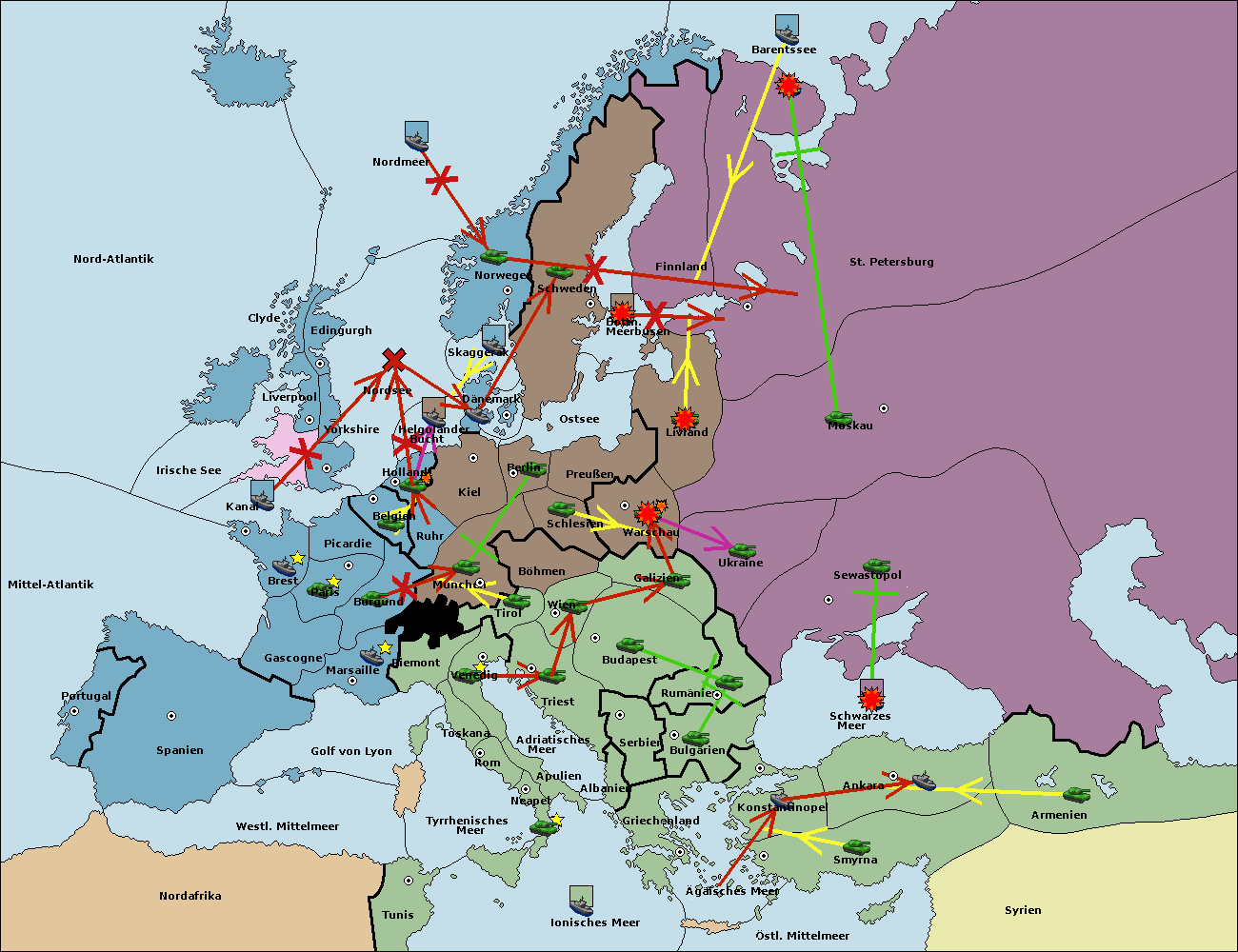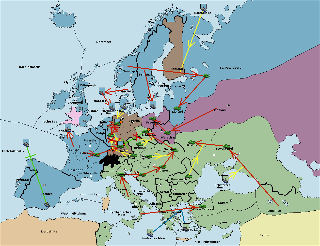 • Die Armee in München wird zerstörtFlotte in München gebaut.