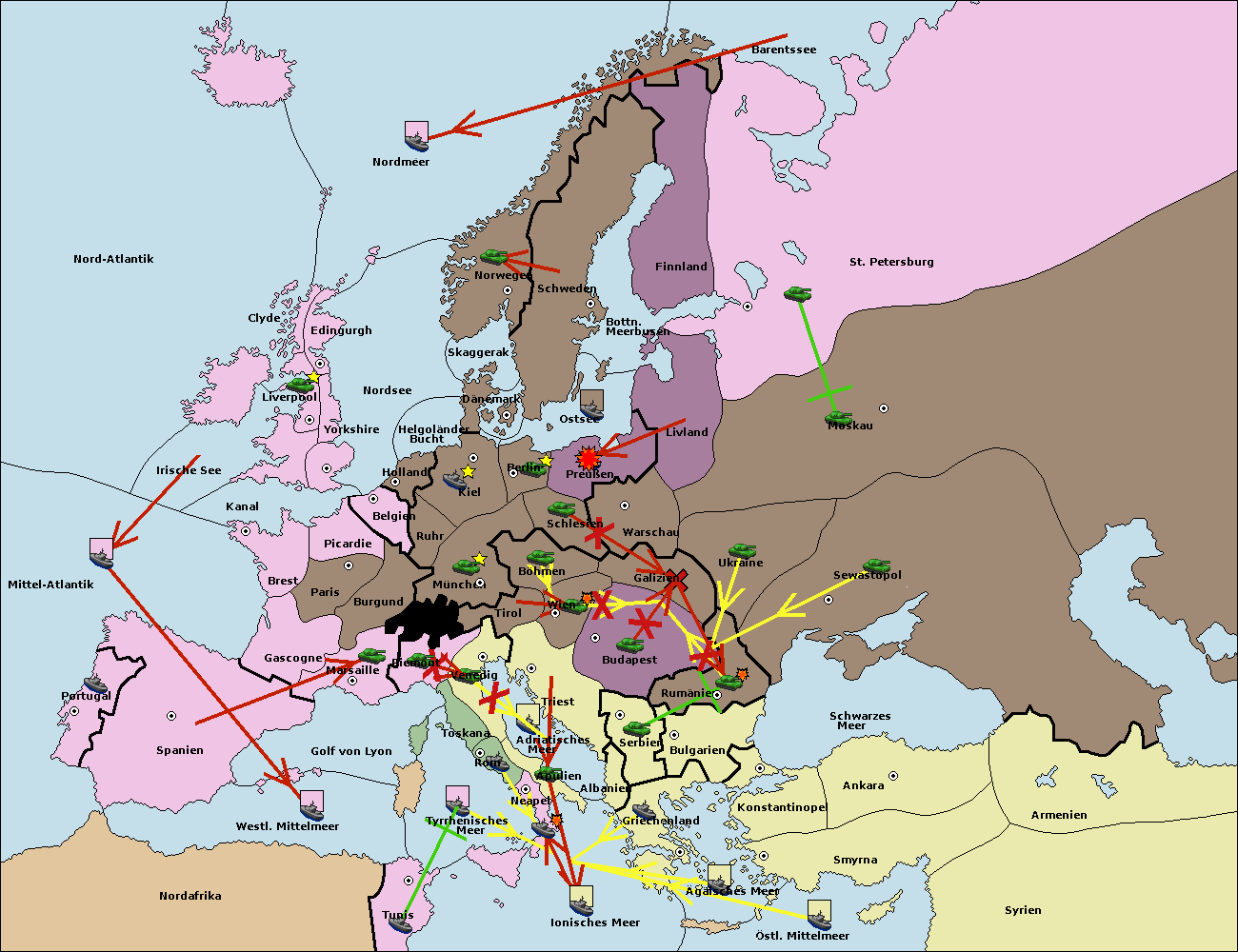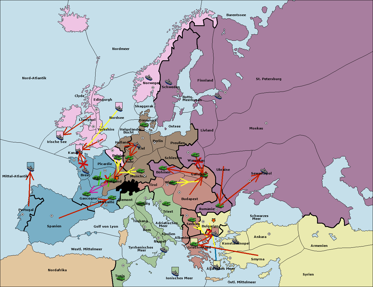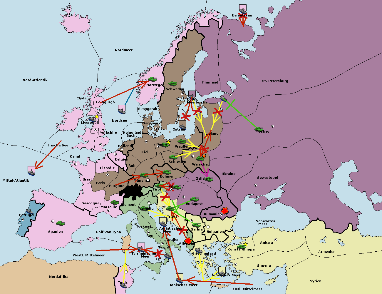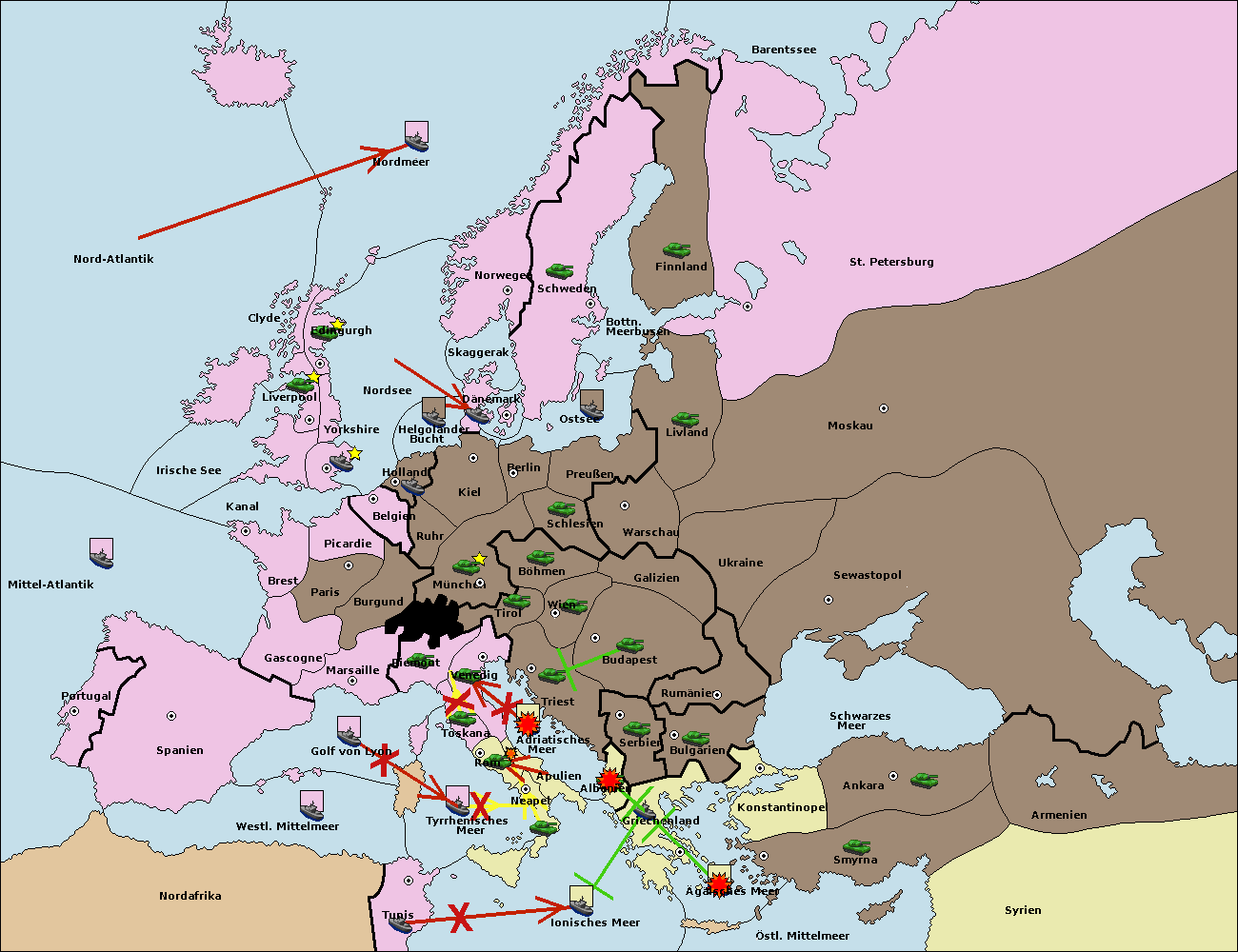 • Die Armee in Bulgarien wird zerstörtFlotte in Bulgarien gebaut.