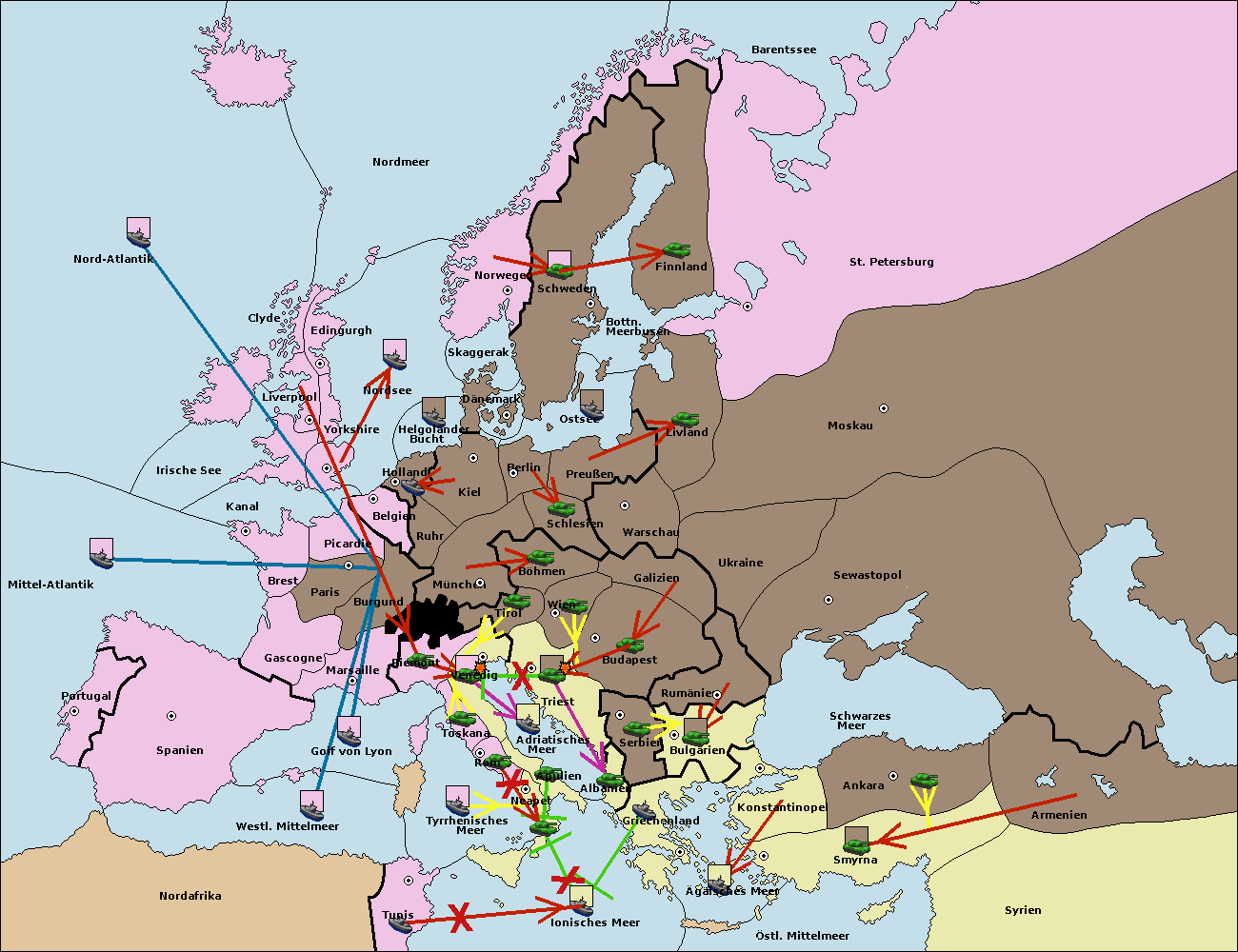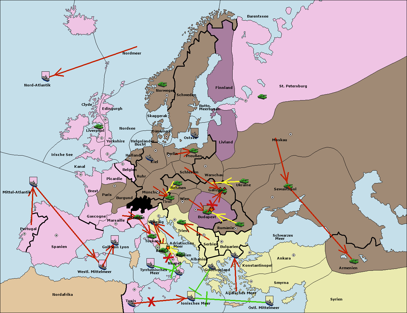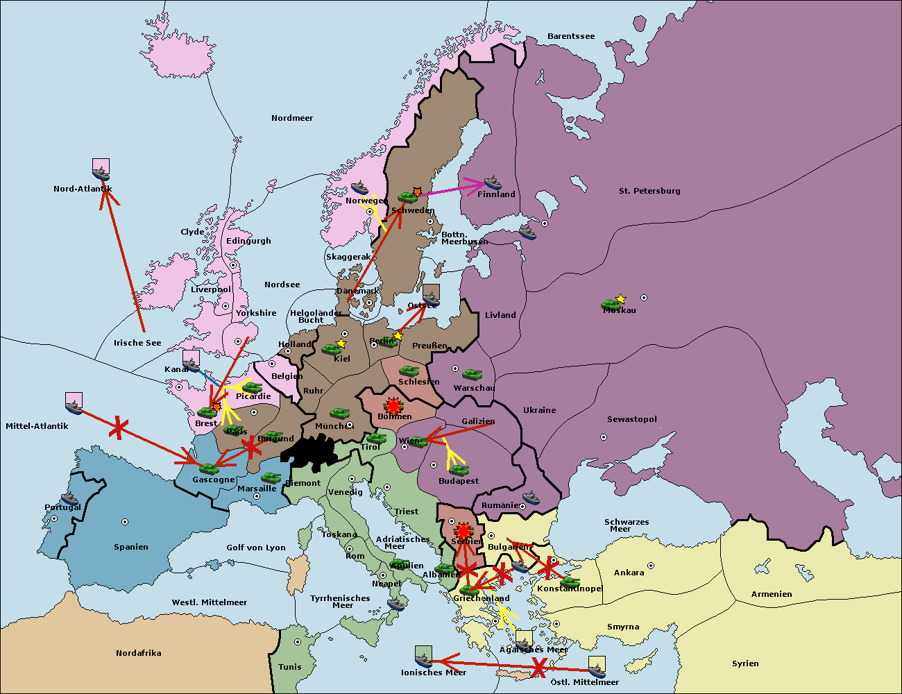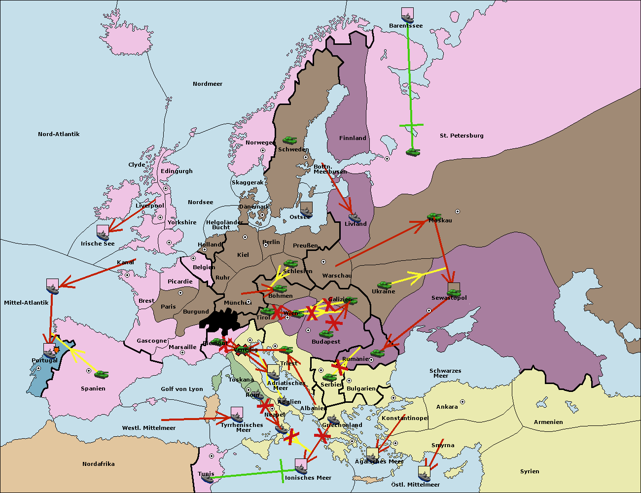 • Die Armee in Bulgarien wird zerstörtFlotte in Bulgarien gebaut.