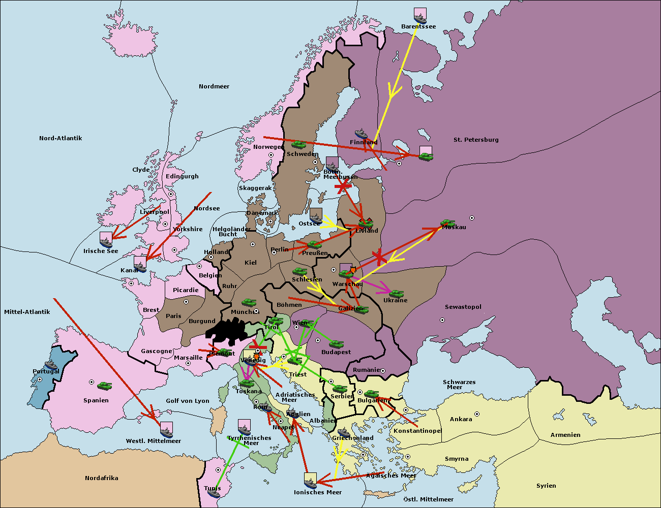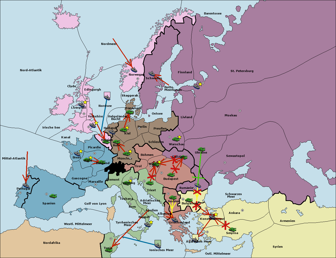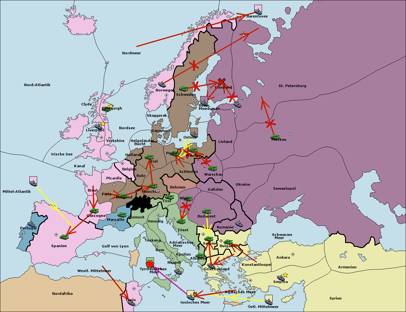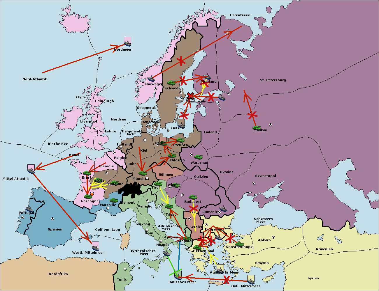 • Die Armee in Bulgarien wird zerstörtFlotte in Bulgarien gebaut.