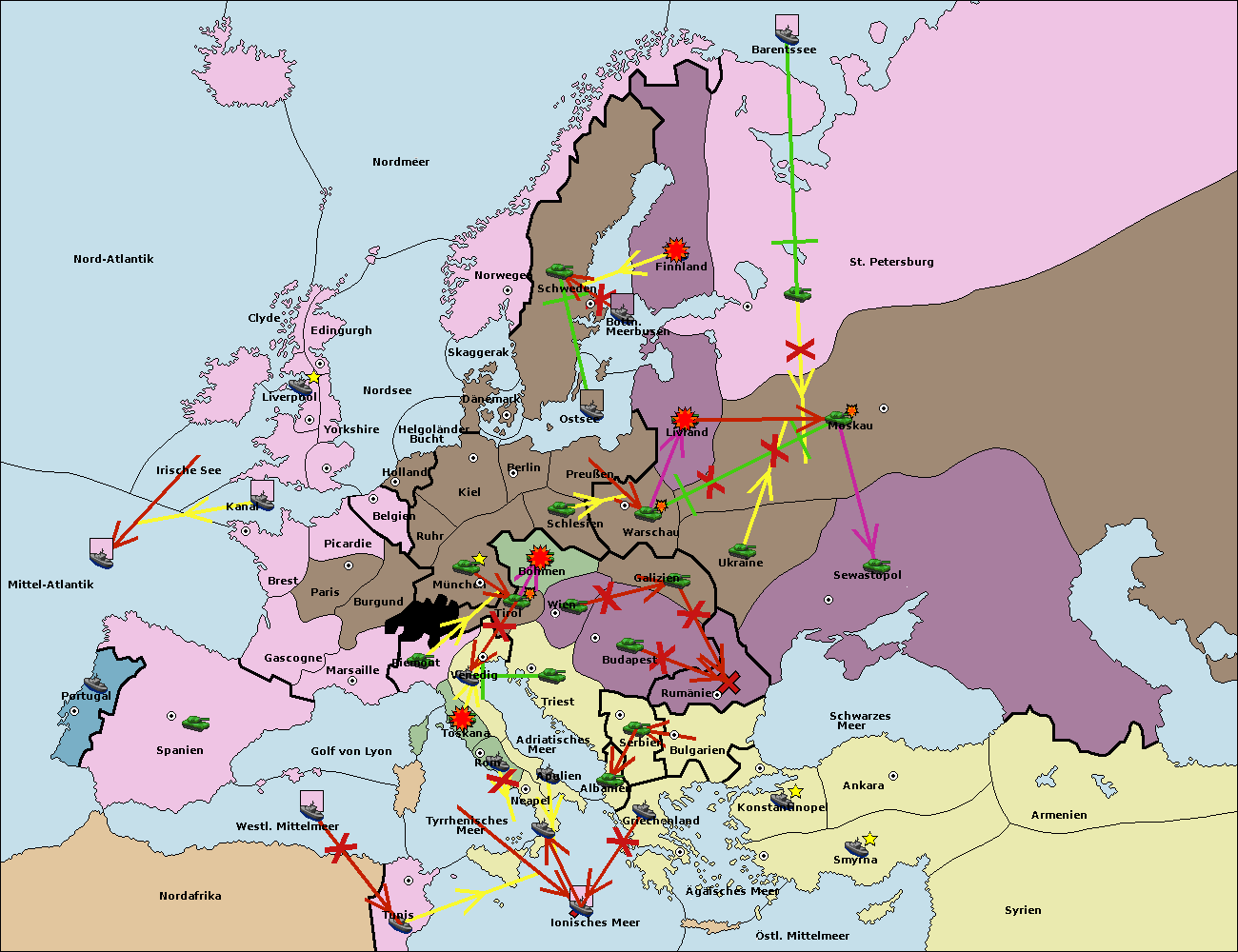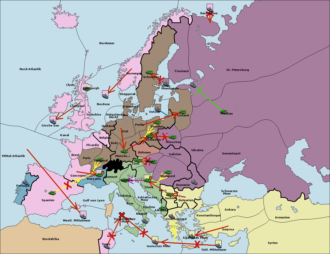 • Die Flotte in Bulgarien (Südküste) wird zerstörtFlotte in Bulgarien (Südküste) gebaut.