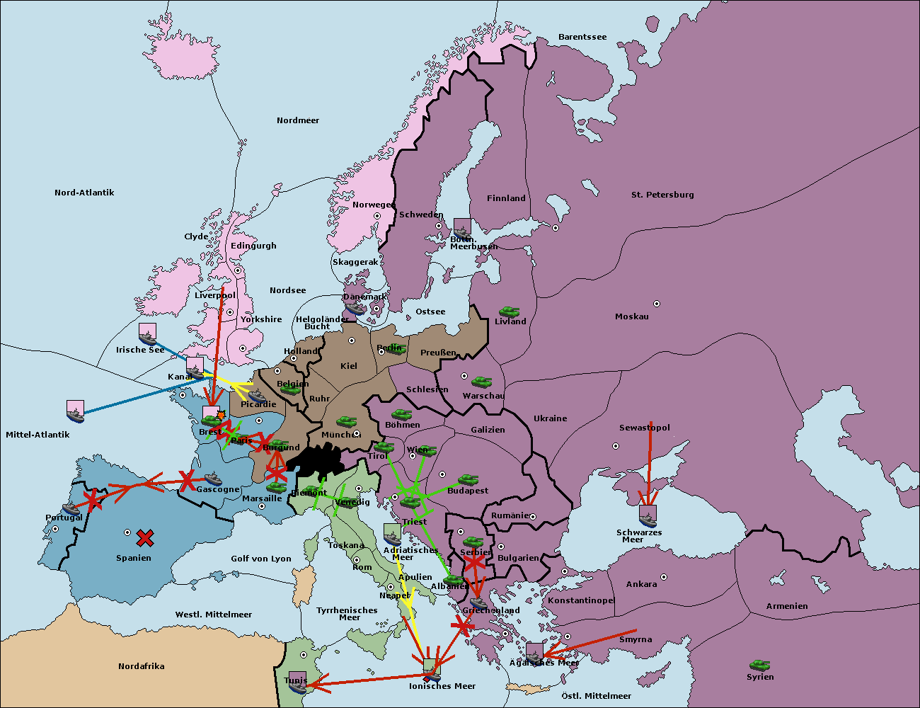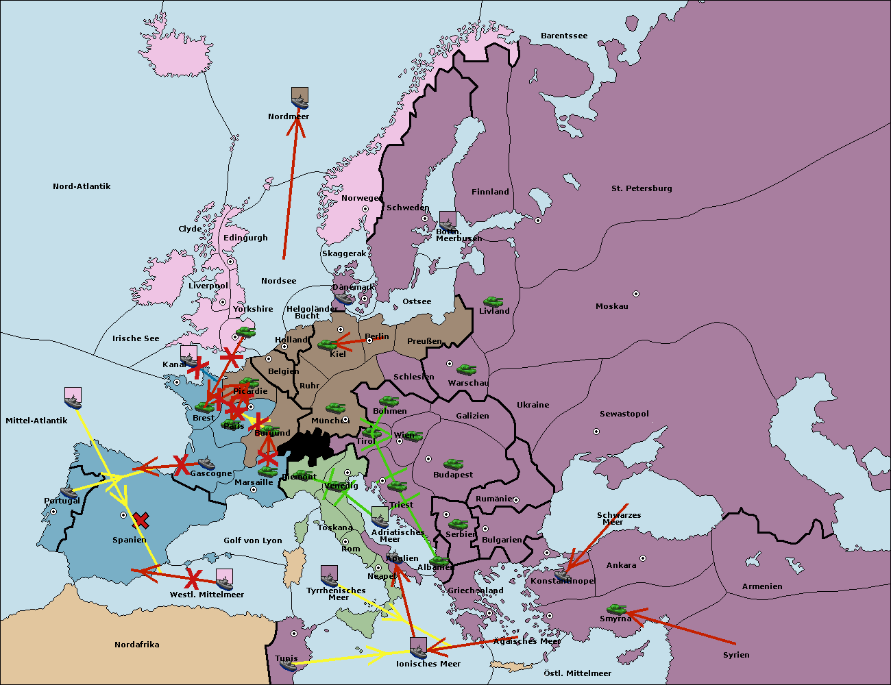 • Die Flotte in westl. Mittelmeer move nach Spanien (Südküste). (gescheitert)