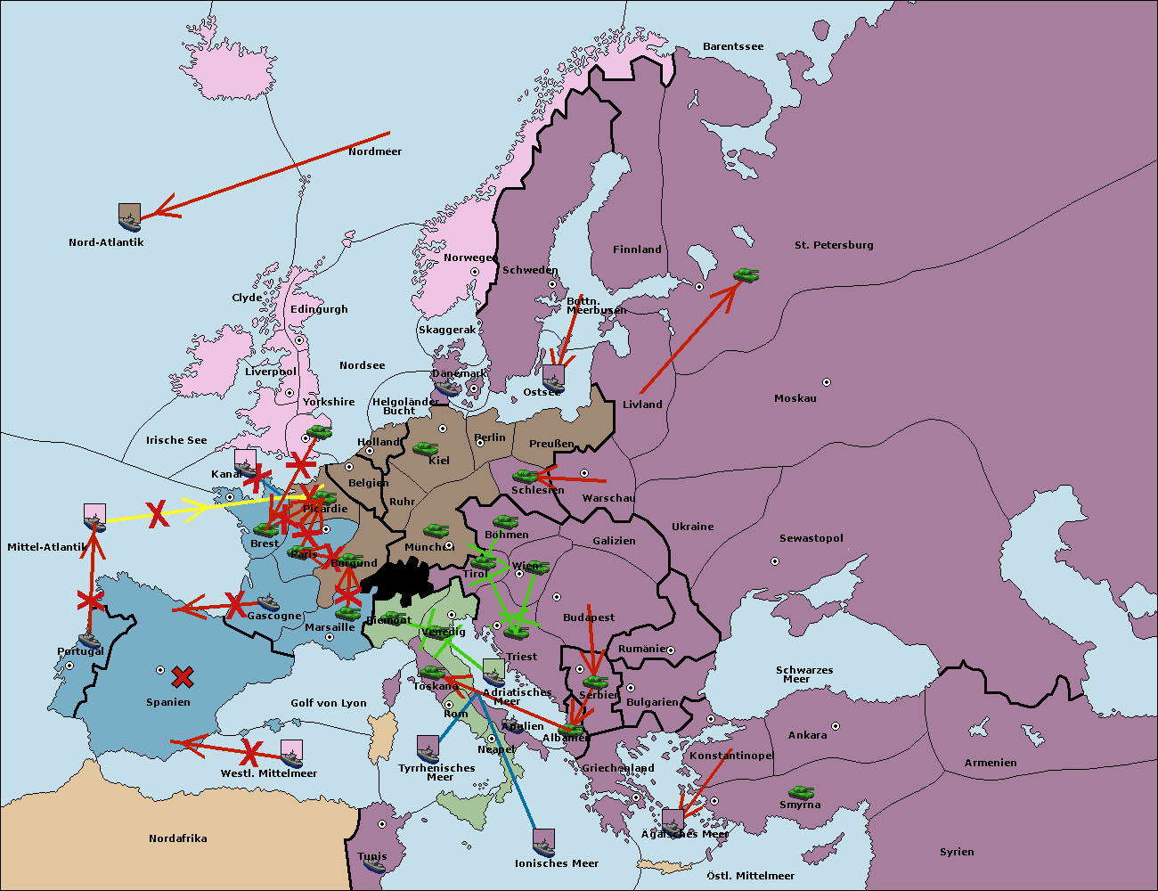 • Die Flotte in Mittel-Atlantik support move nach Kanal von Brest.