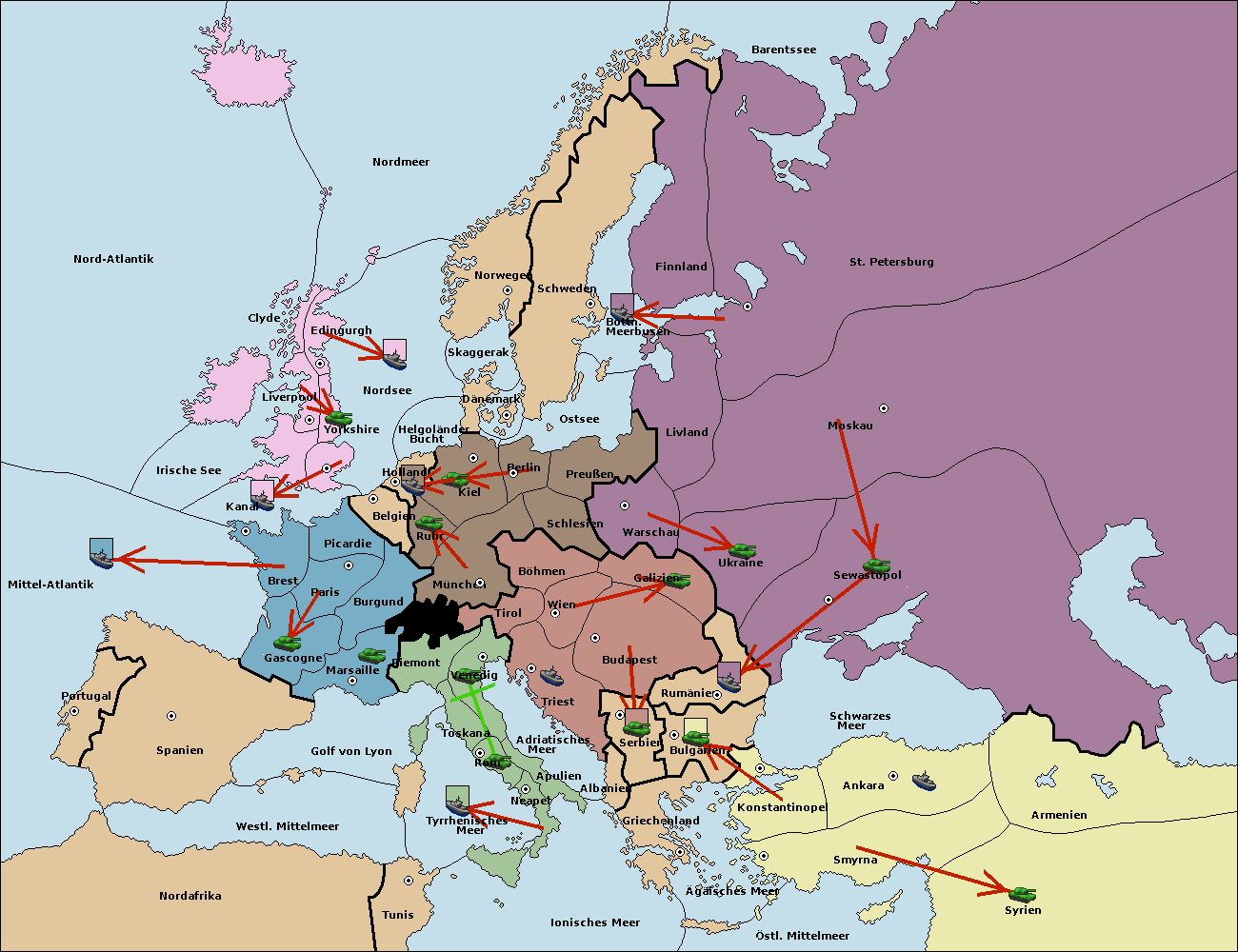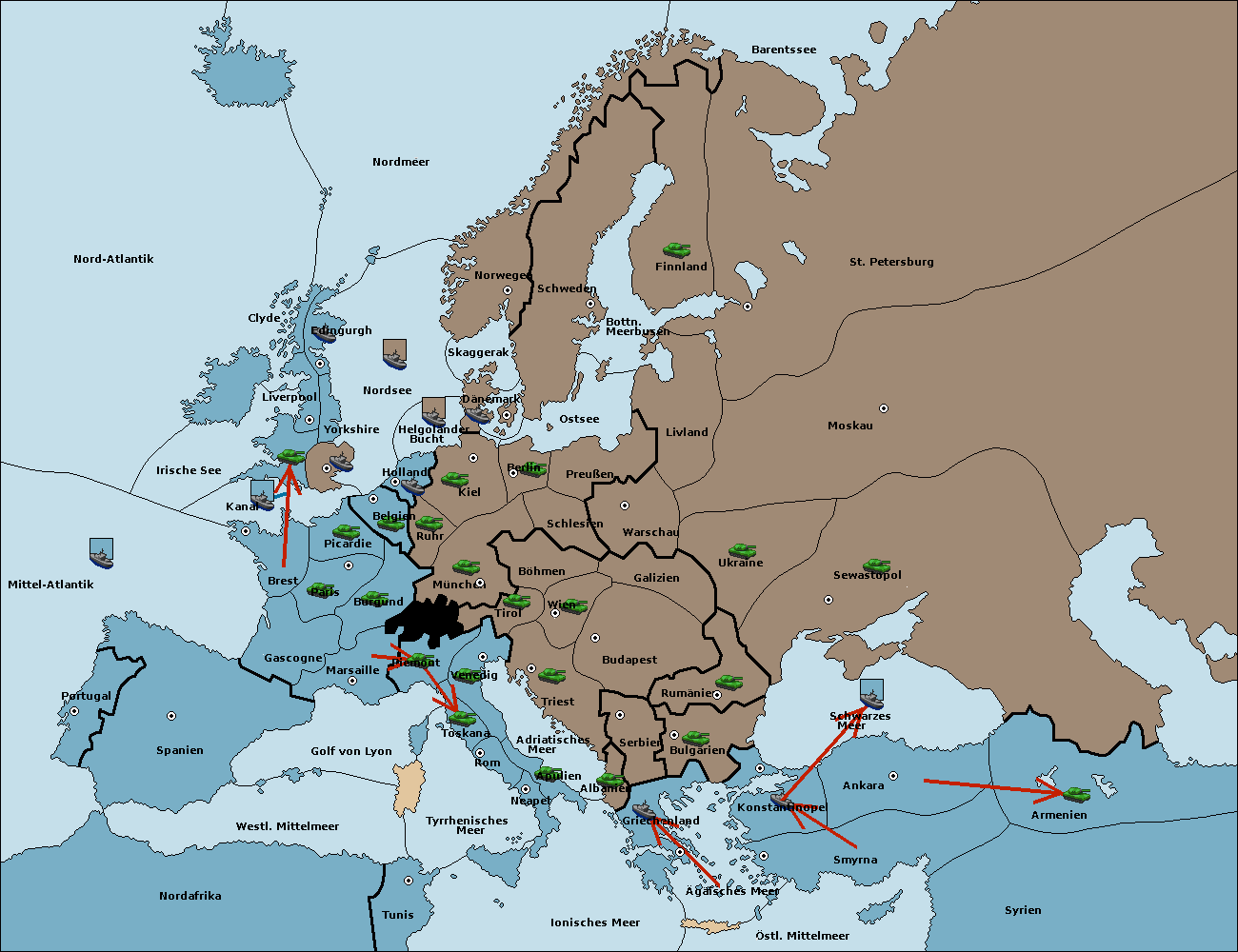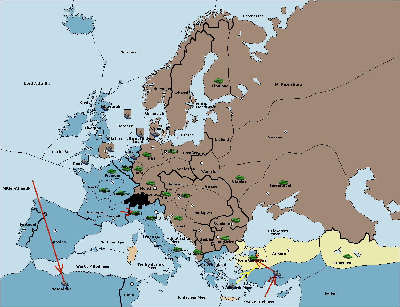 • Die Flotte in Smyrna support hold nach Konstantinopel. (gescheitert)