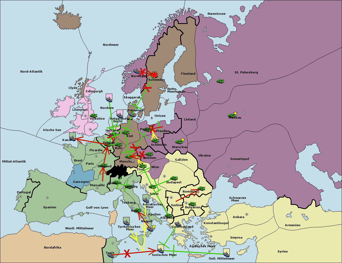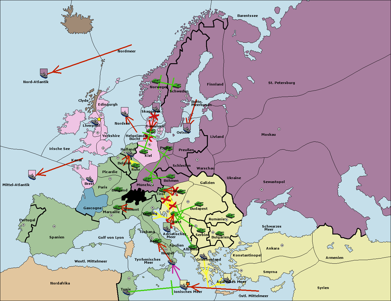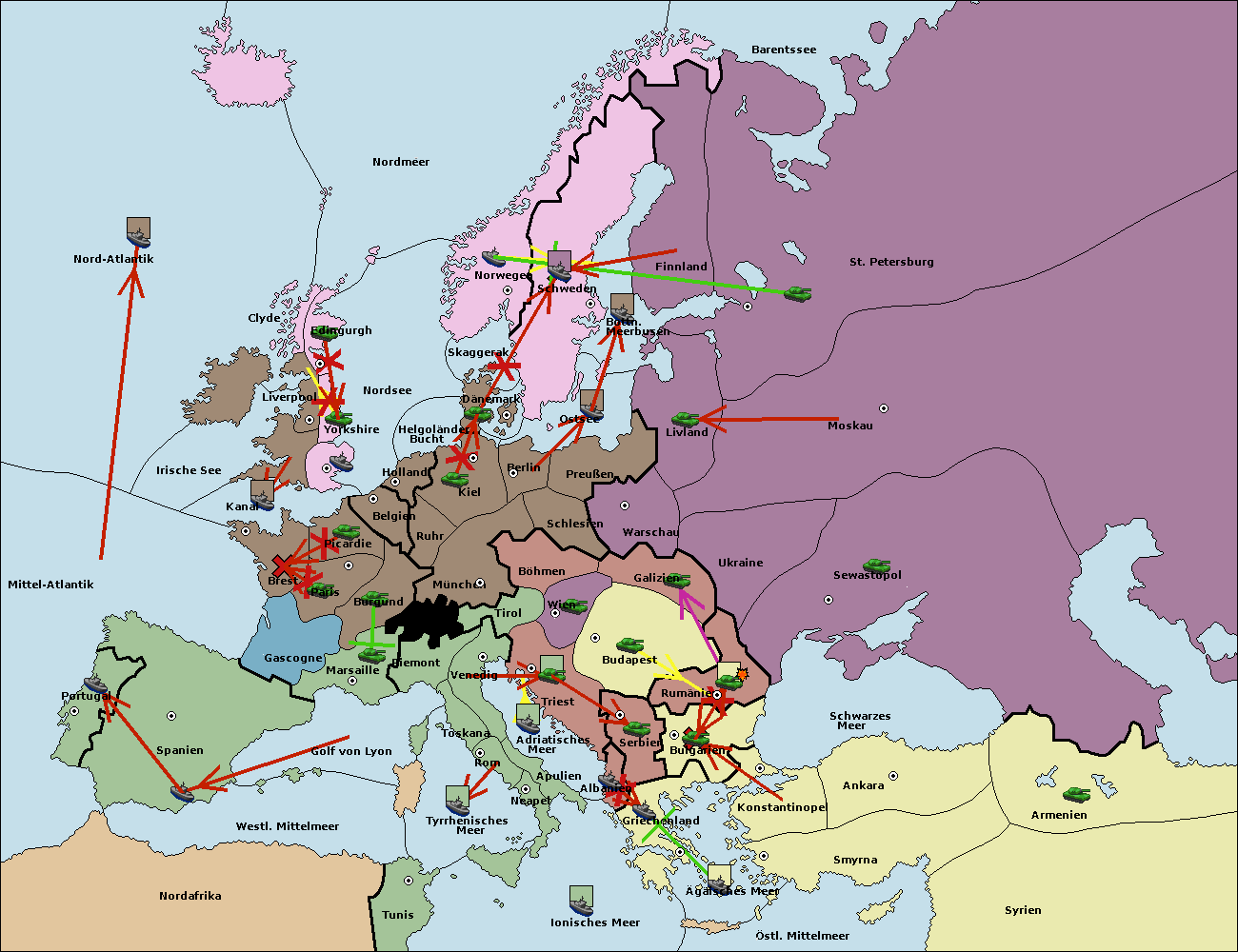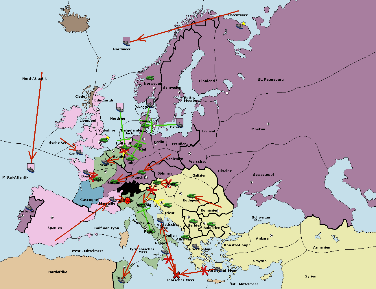• Die Flotte in St. Petersburg (Nordküste) move nach Barentssee.