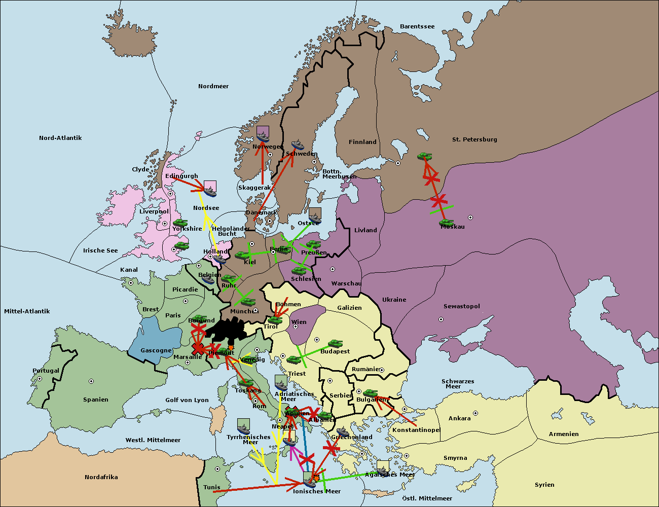 • Die Armee in Marseille support move nach Spanien von Portugal. (gescheitert) (verdrängt)