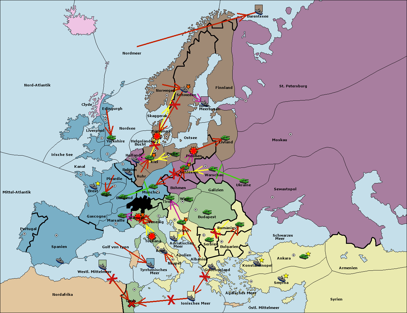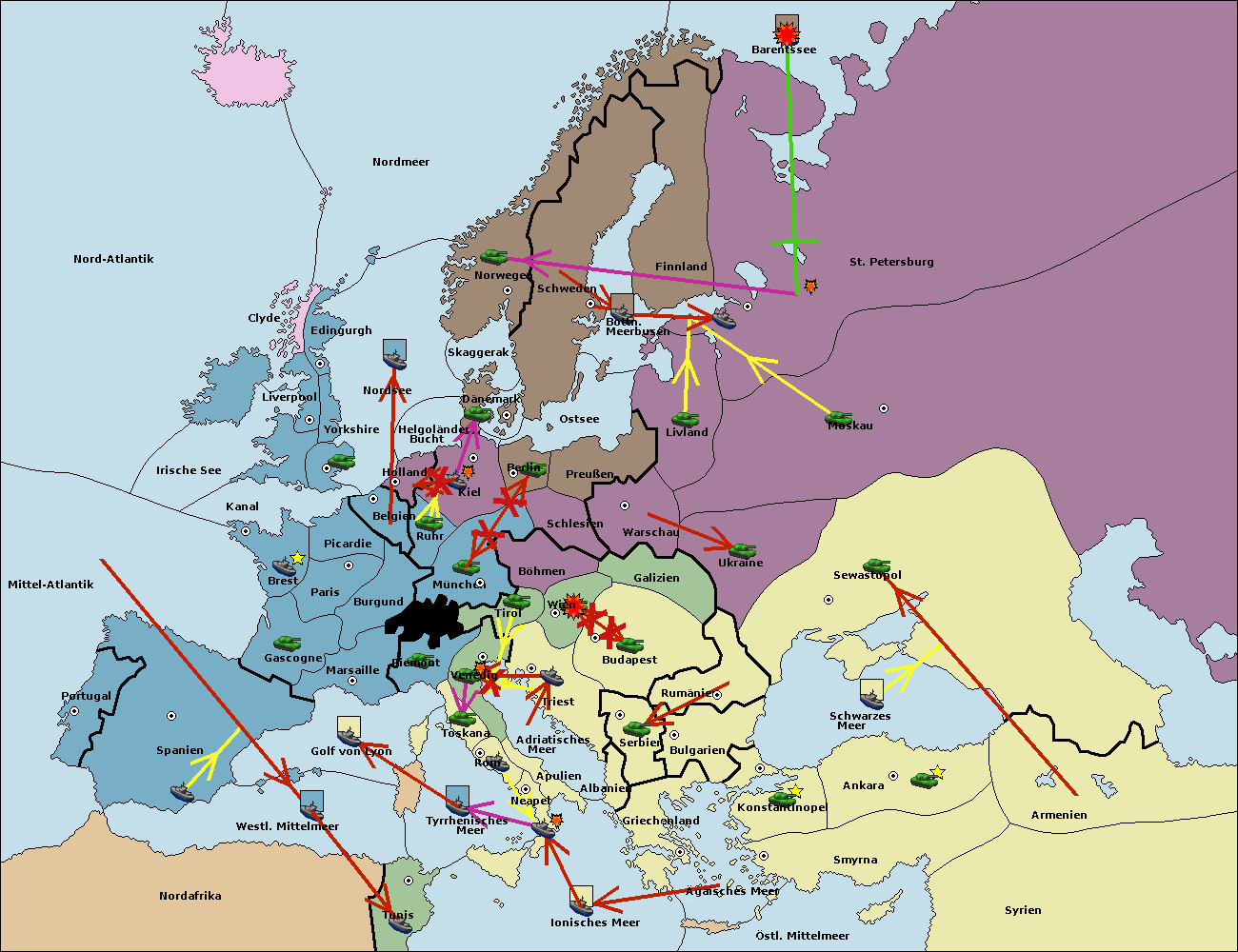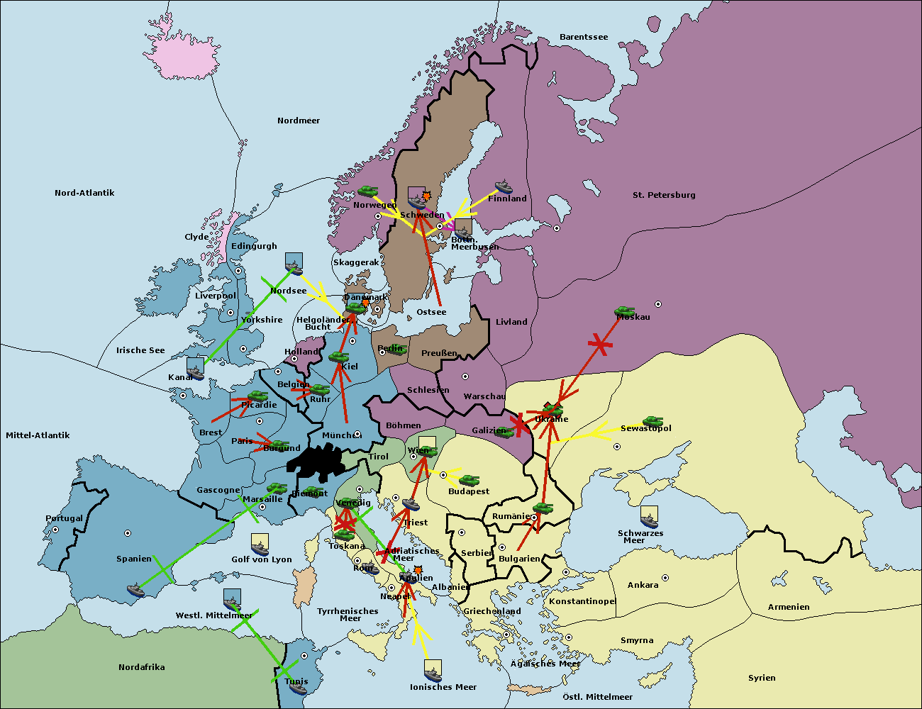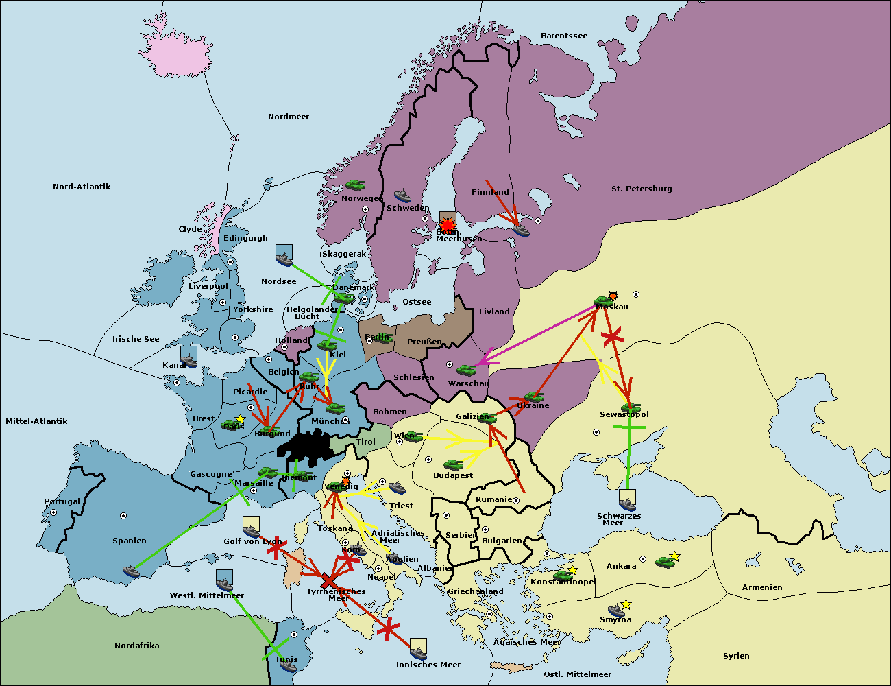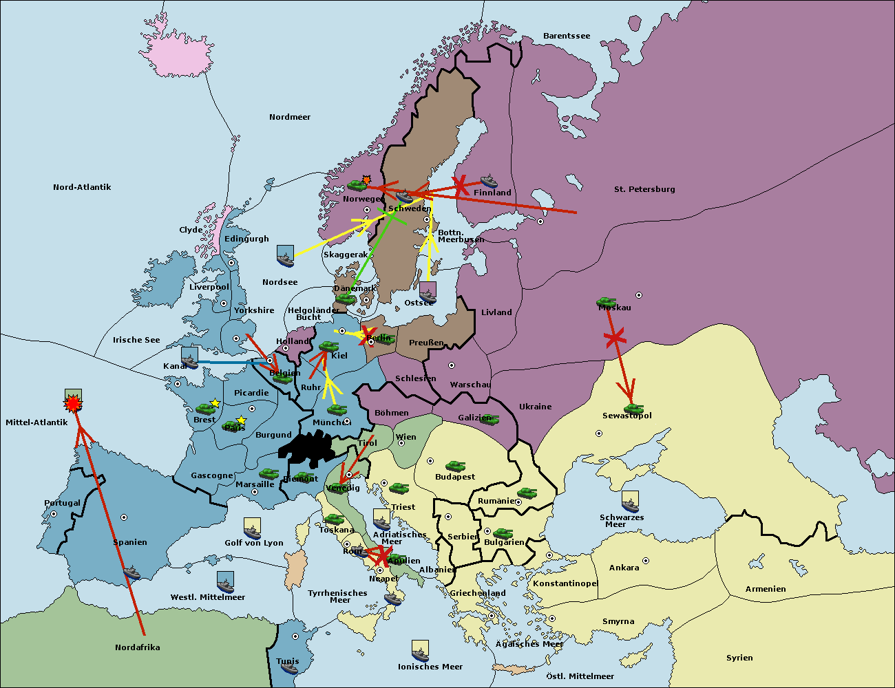 • Die Flotte in St. Petersburg (Nordküste) move nach Norwegen.