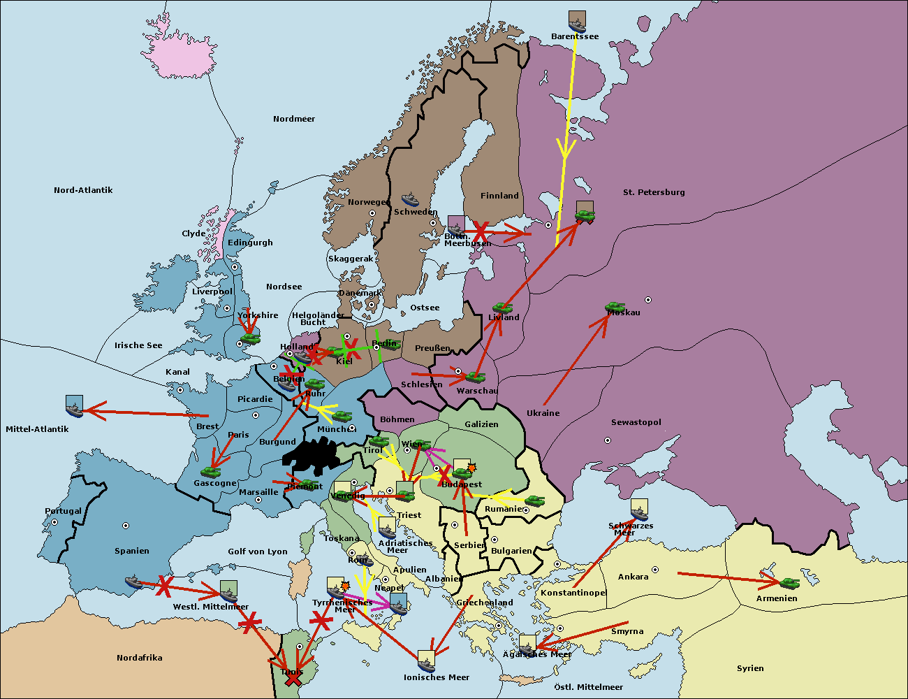 • Die Armee in Budapest support move nach Triest von Albanien. (gescheitert)