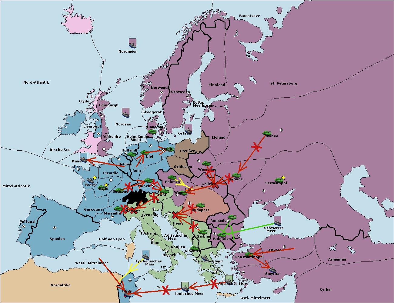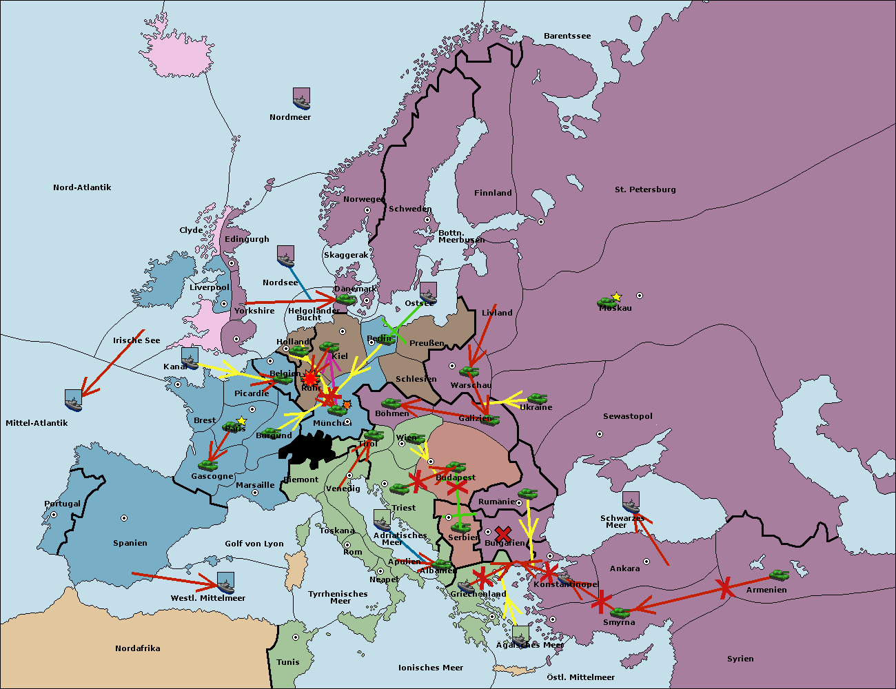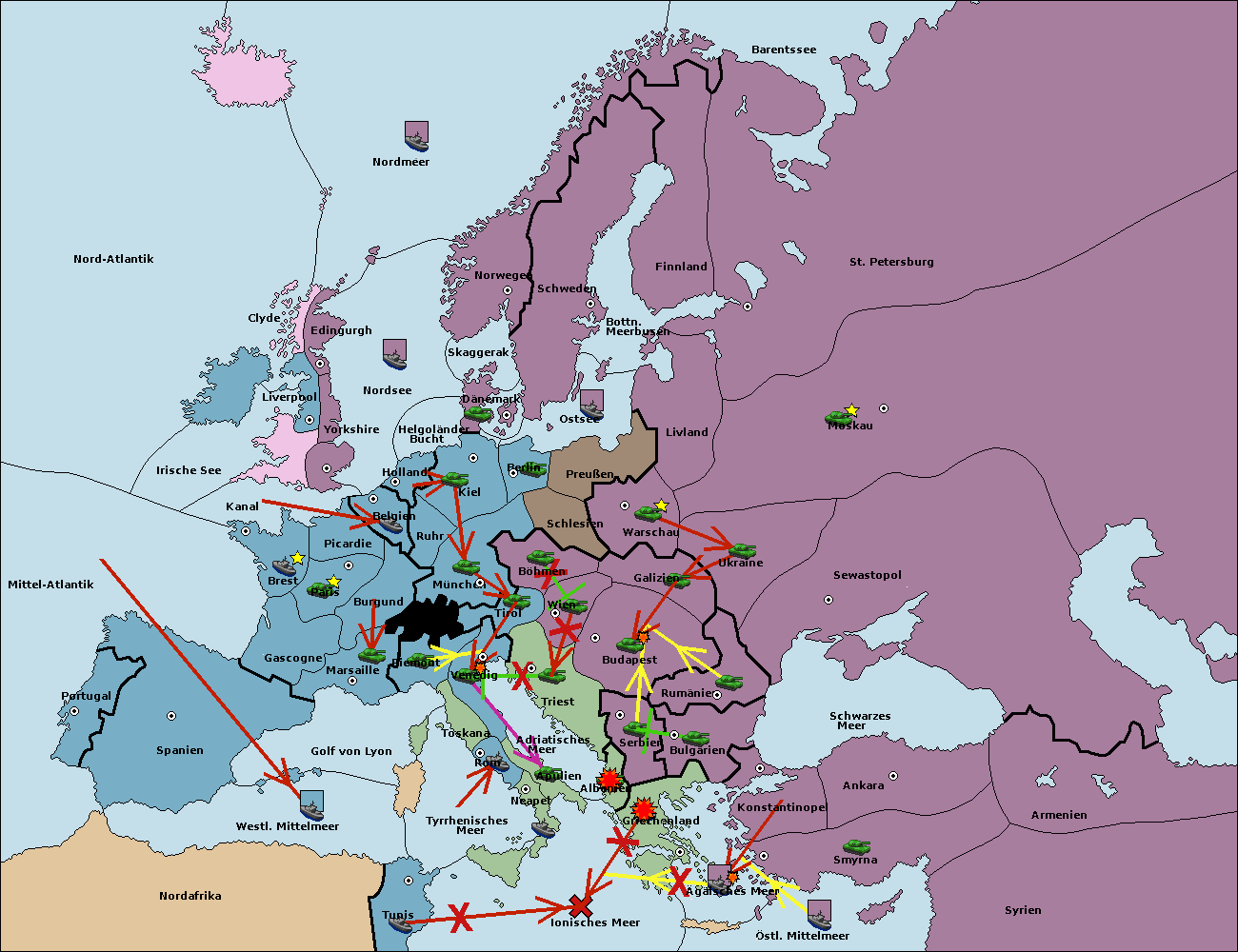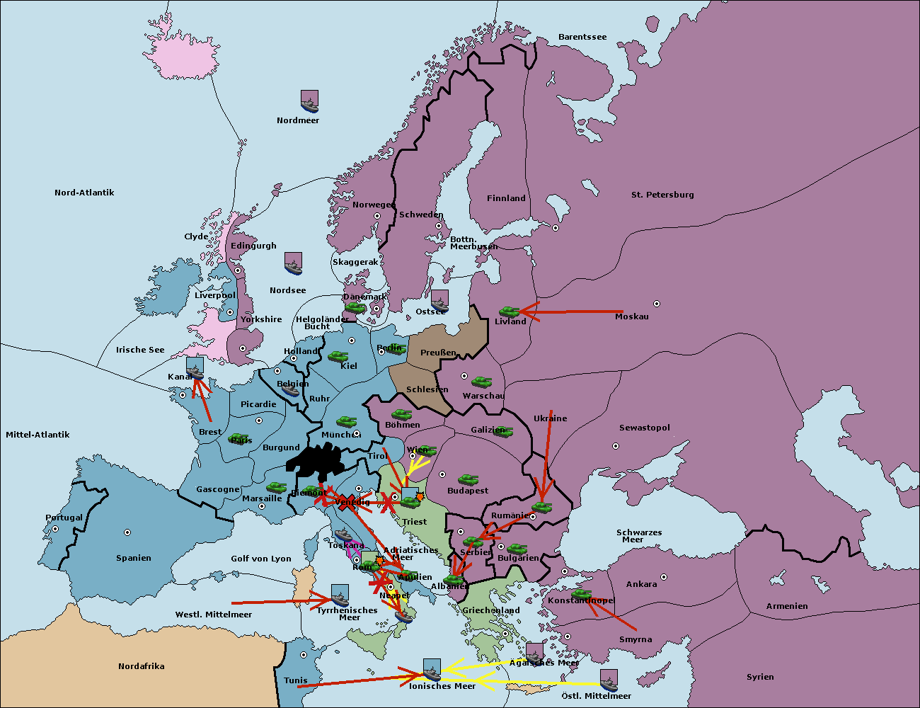 • Die Armee in Bulgarien wird zerstörtFlotte in Bulgarien gebaut.