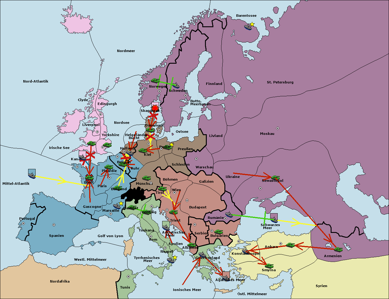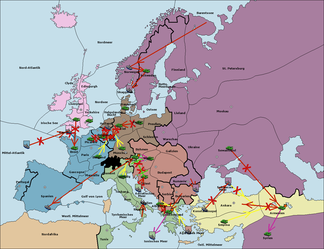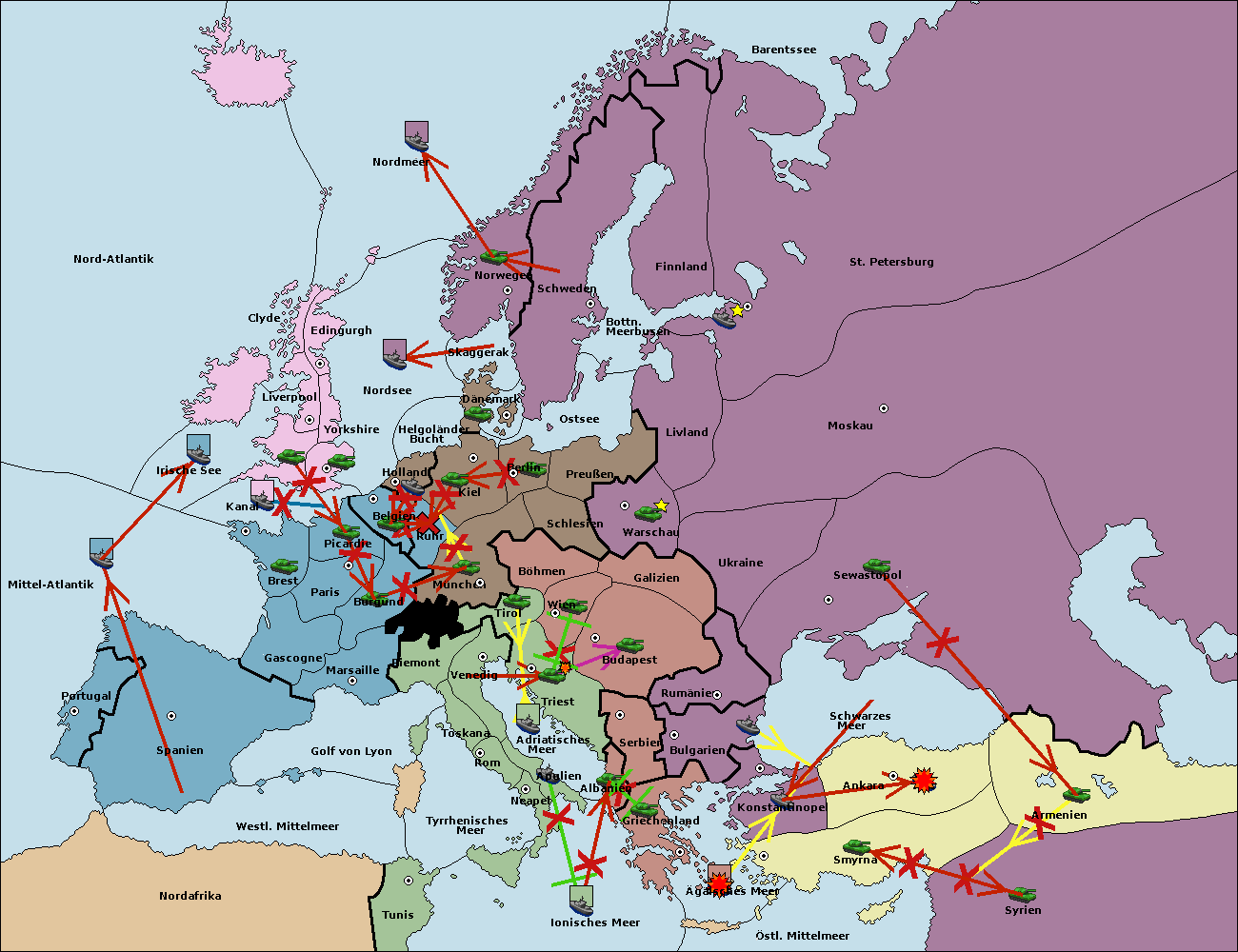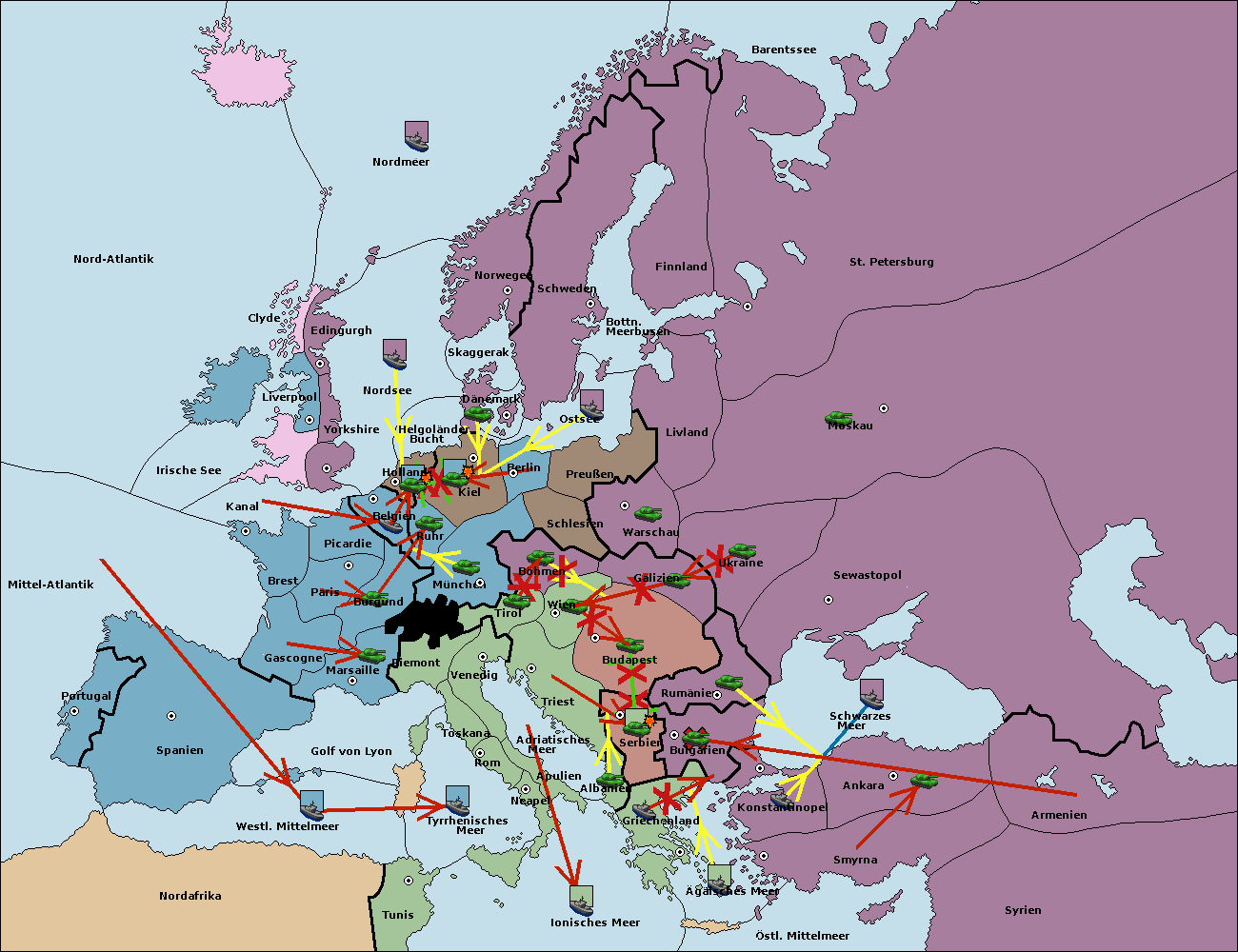 • Die Armee in Bulgarien wird zerstörtFlotte in Bulgarien gebaut.