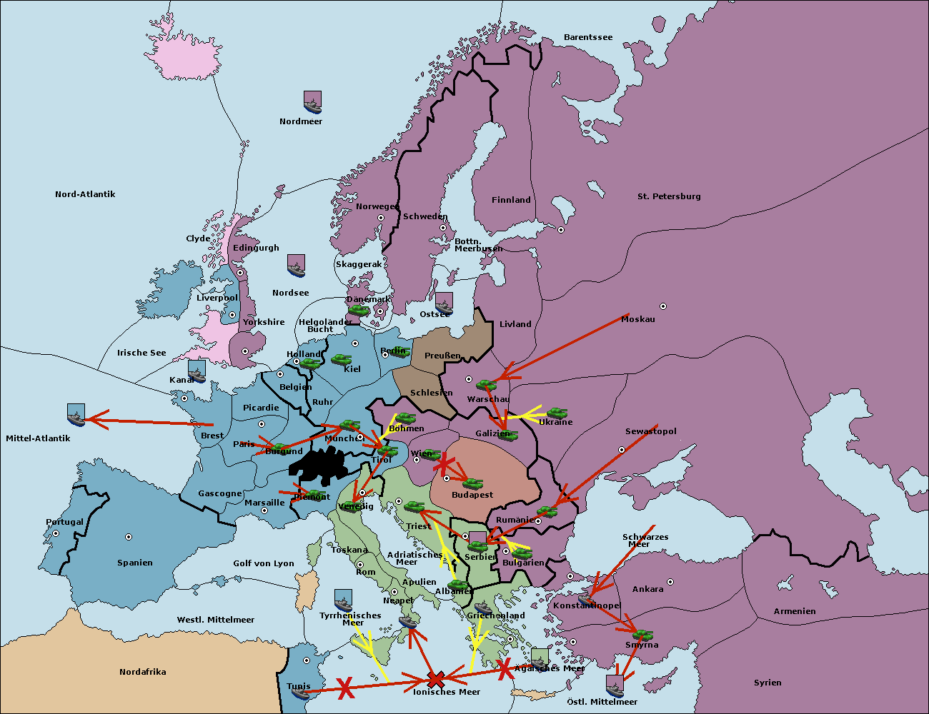 • Die Armee in Wien support move nach Triest von Tirol.