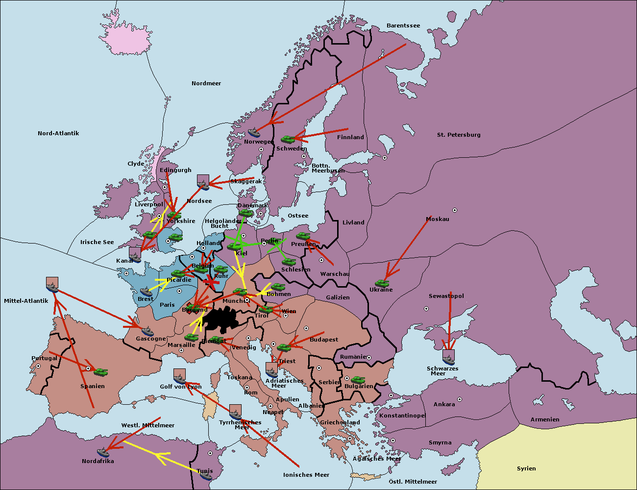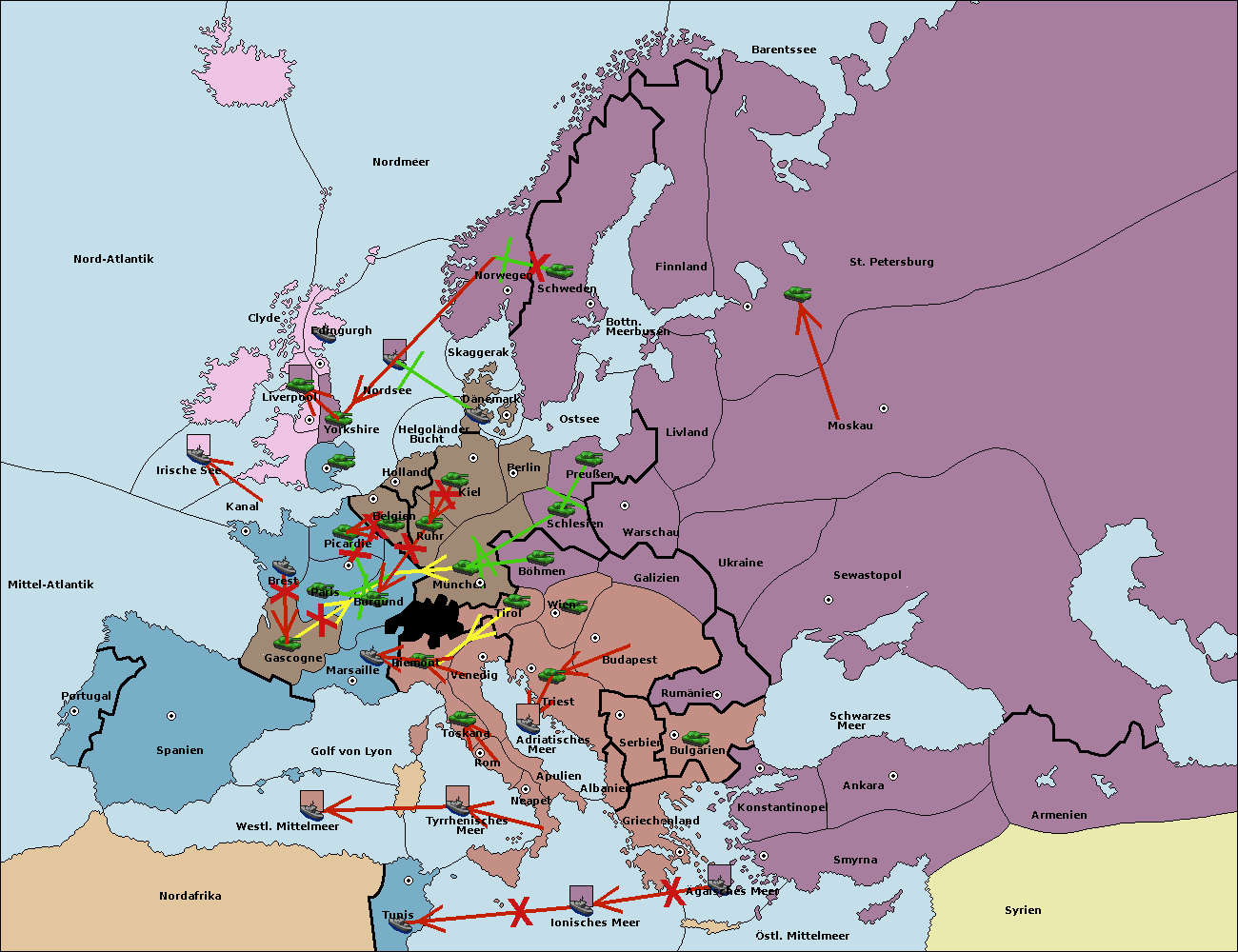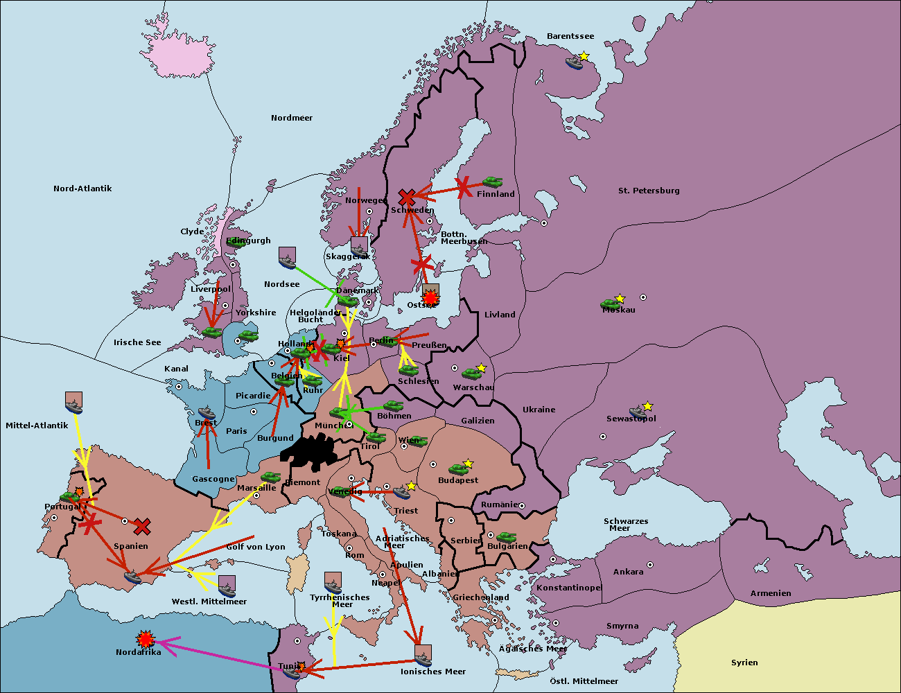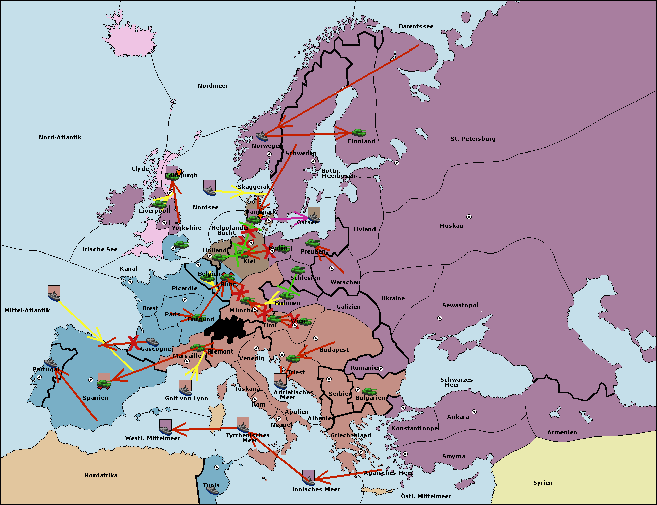 • Die Flotte in Spanien (Südküste) move nach westl. Mittelmeer.