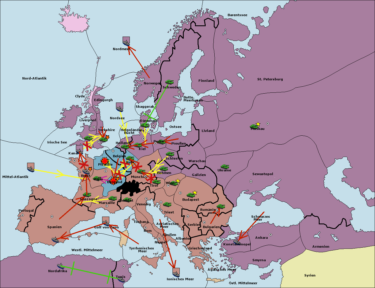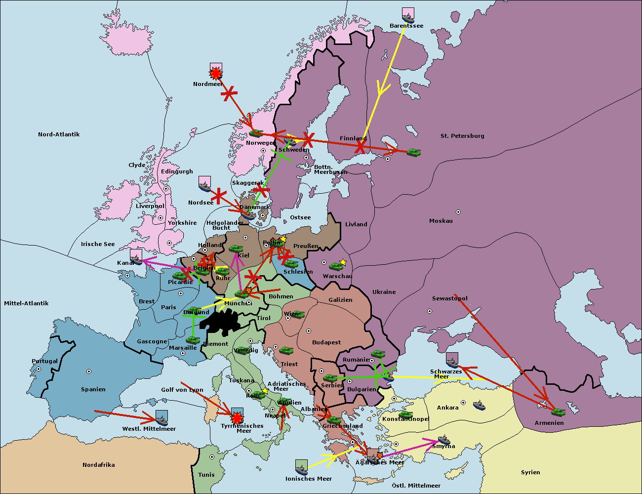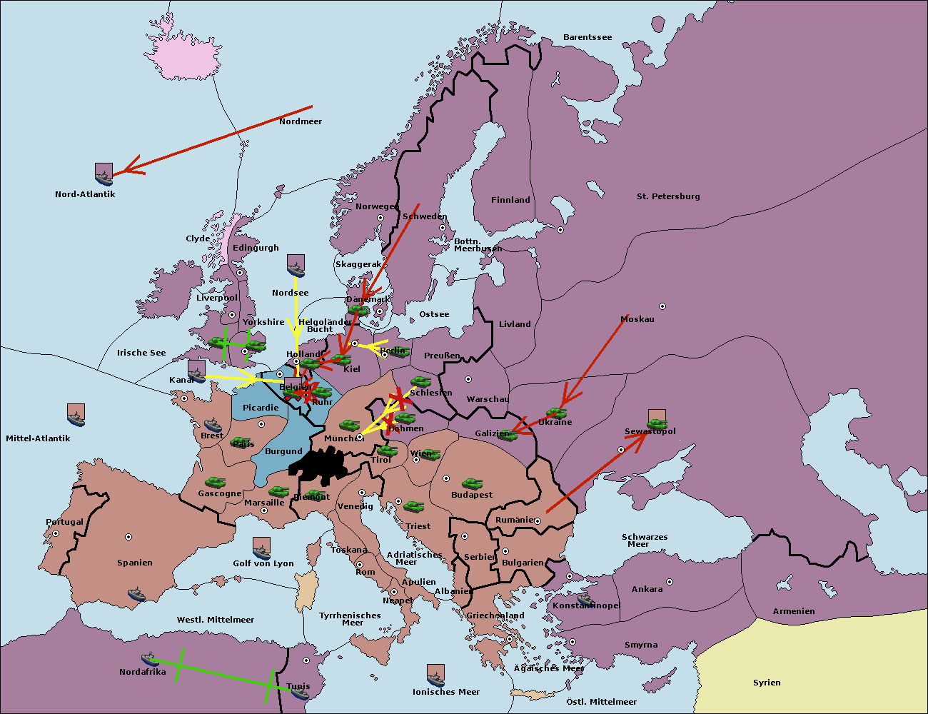 • Die Armee in Bulgarien wird zerstörtFlotte in Bulgarien gebaut.