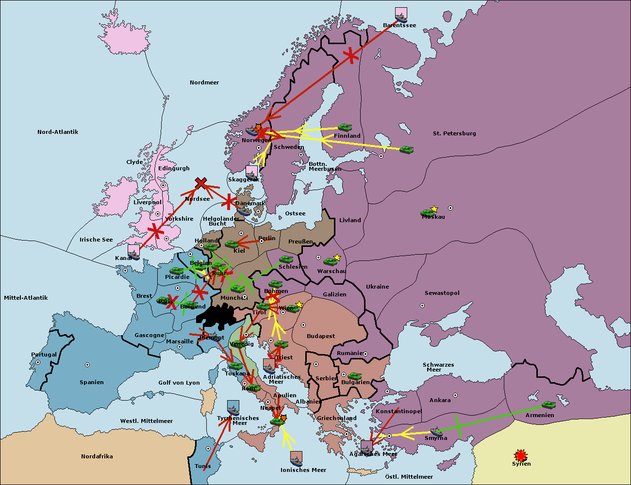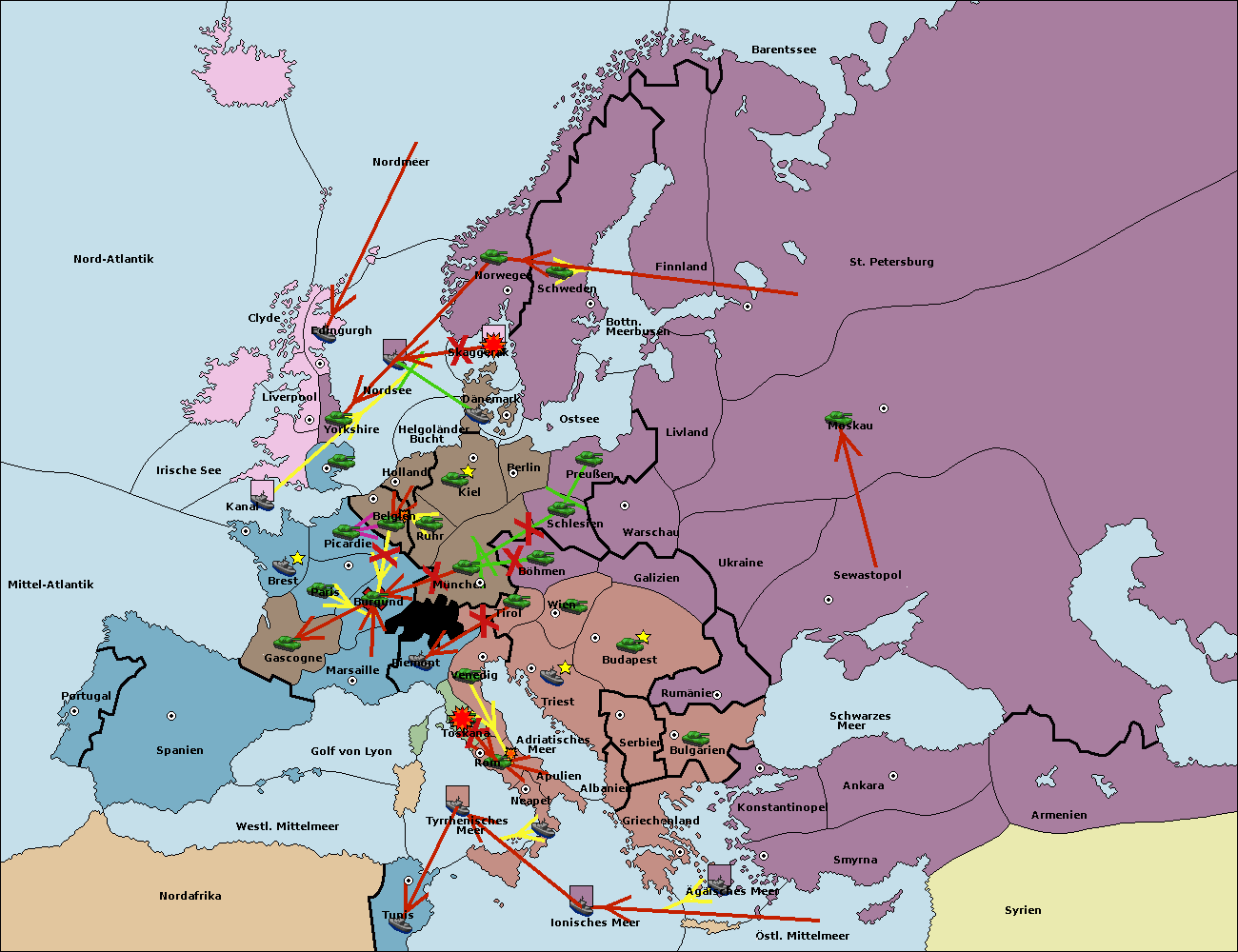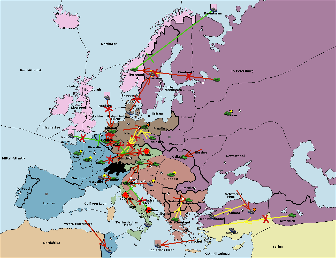 • Die Armee in Bulgarien wird zerstörtFlotte in Bulgarien gebaut.