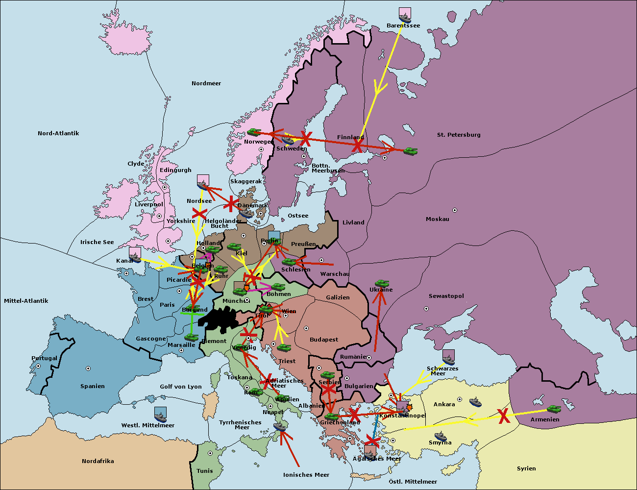 • Die Armee in Konstantinopel support hold nach Bulgarien.