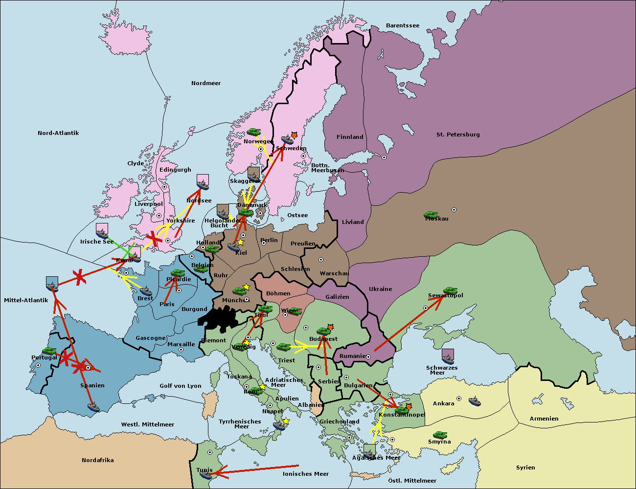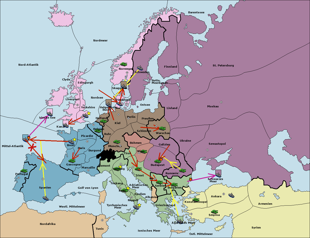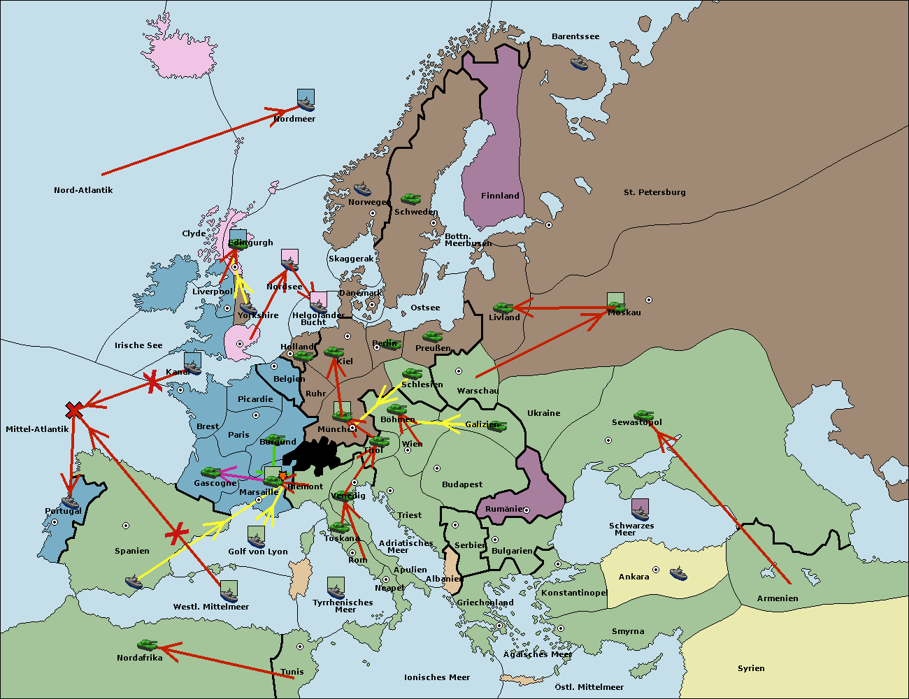 • Die Flotte in Spanien (Südküste) support move nach Marseille von Piemont.