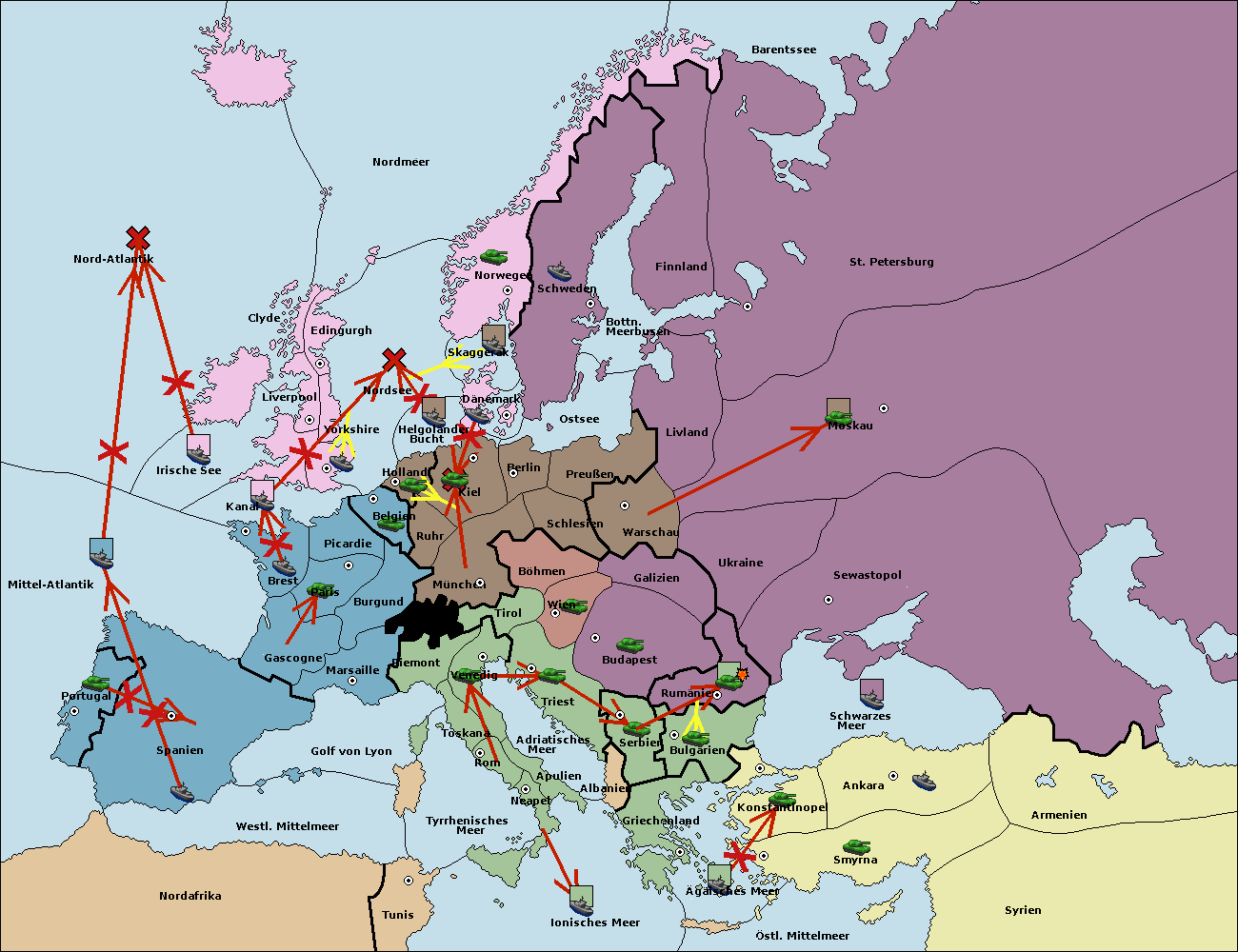 • Die Flotte in Spanien (Südküste) support move nach Mittel-Atlantik von Brest.