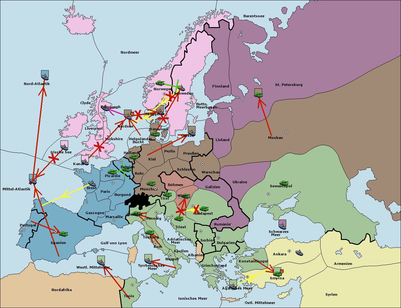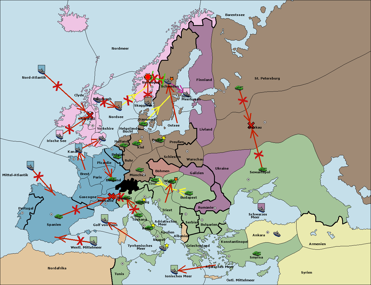 • Die Flotte in St. Petersburg (Nordküste) move nach Norwegen.