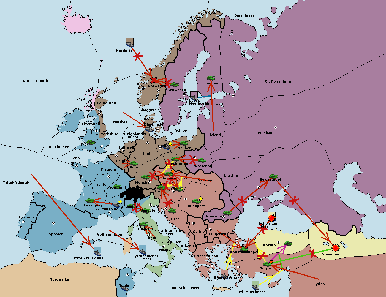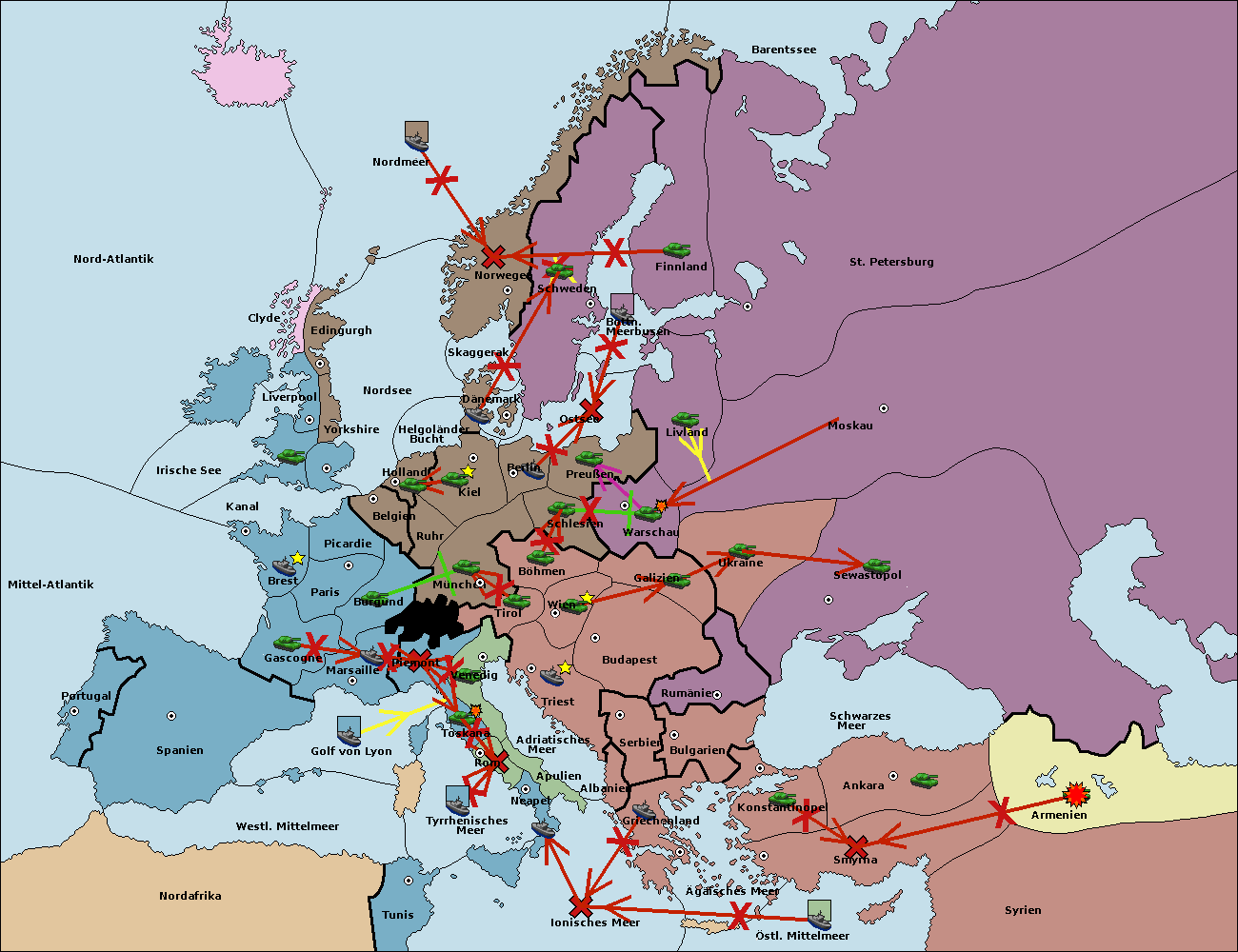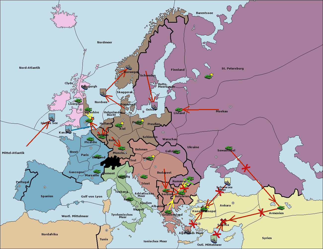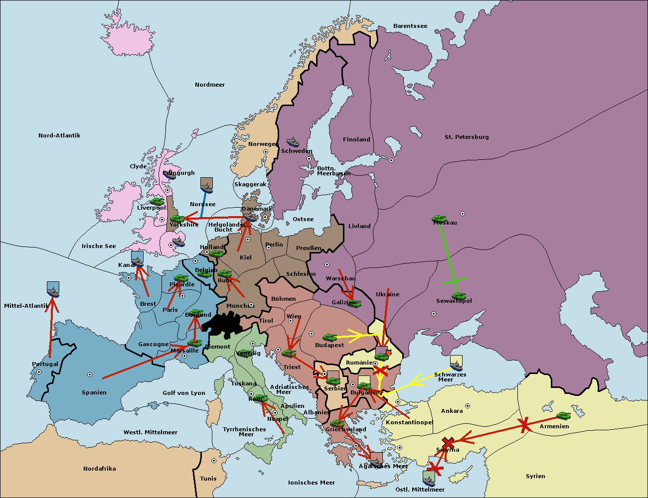 • Die Armee in Bulgarien wird zerstörtFlotte in Bulgarien gebaut.