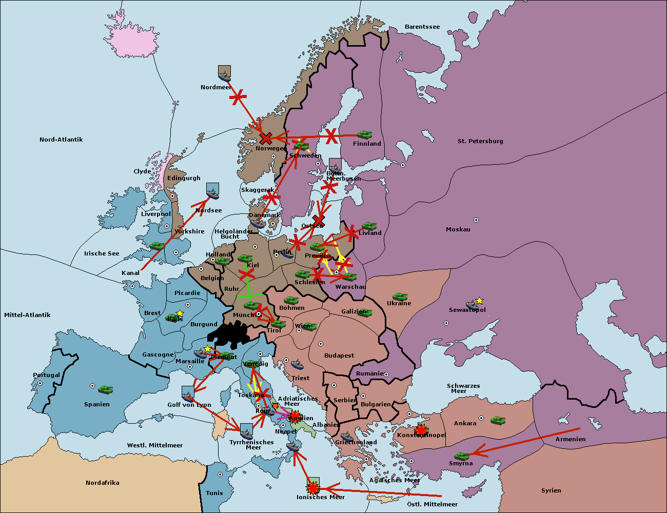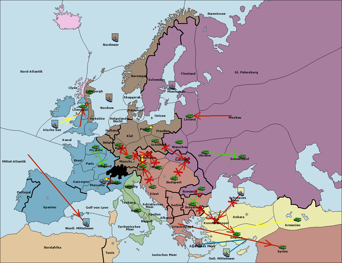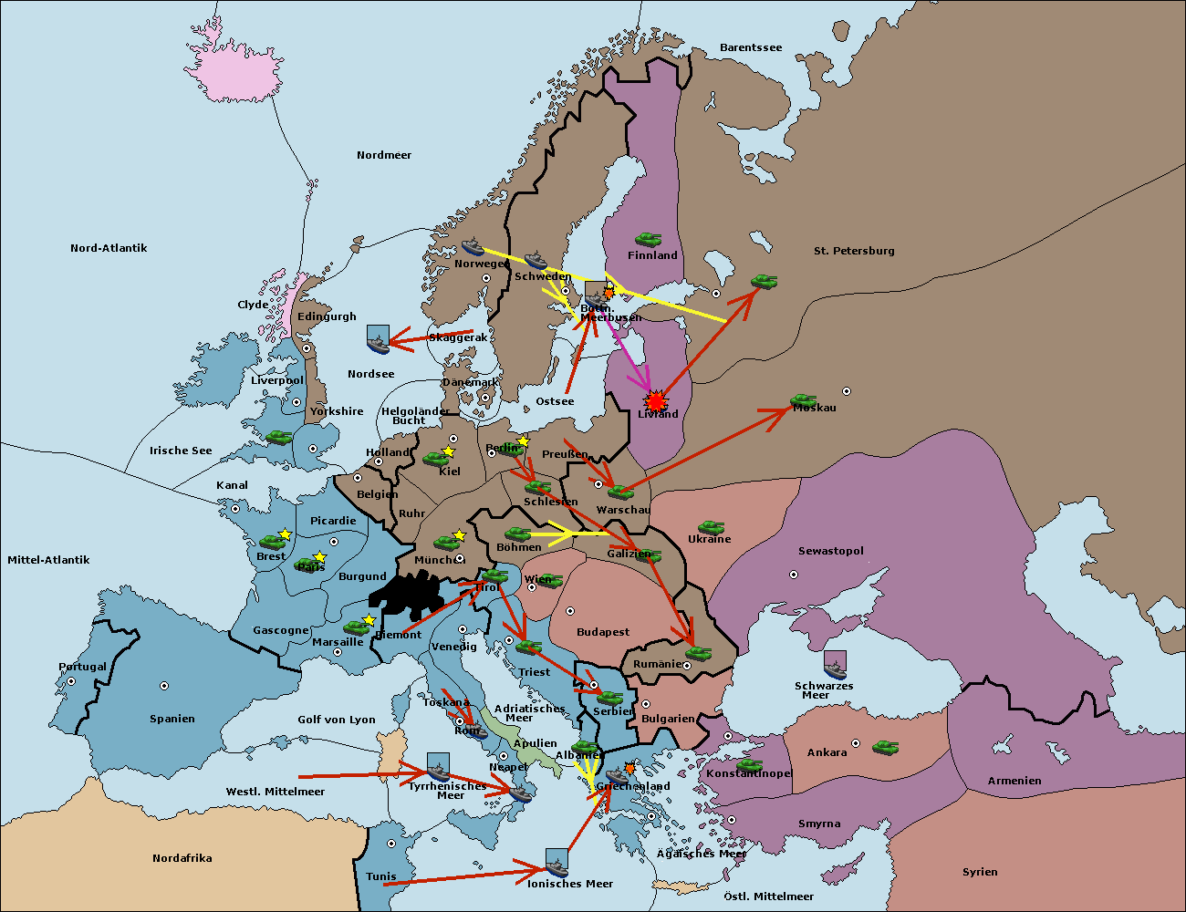 • Die Armee in Bulgarien wird zerstörtFlotte in Bulgarien gebaut.