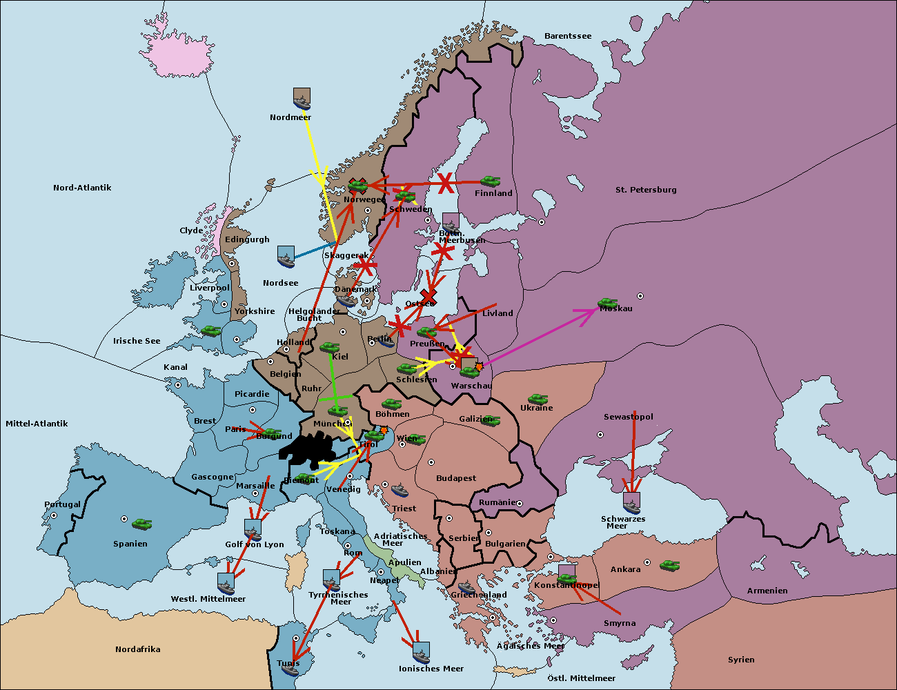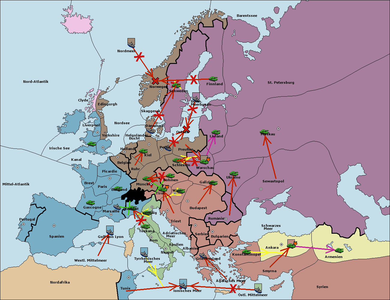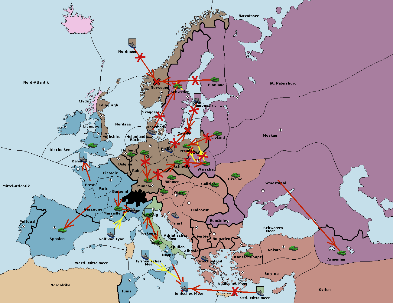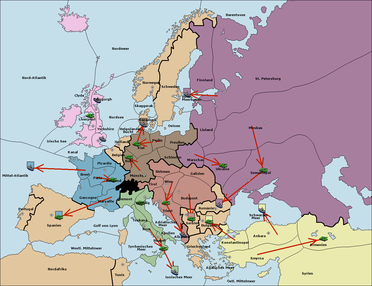 • Die Armee in Bulgarien wird zerstörtFlotte in Bulgarien gebaut.