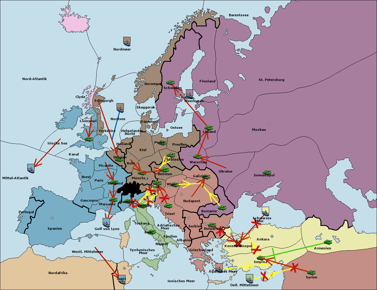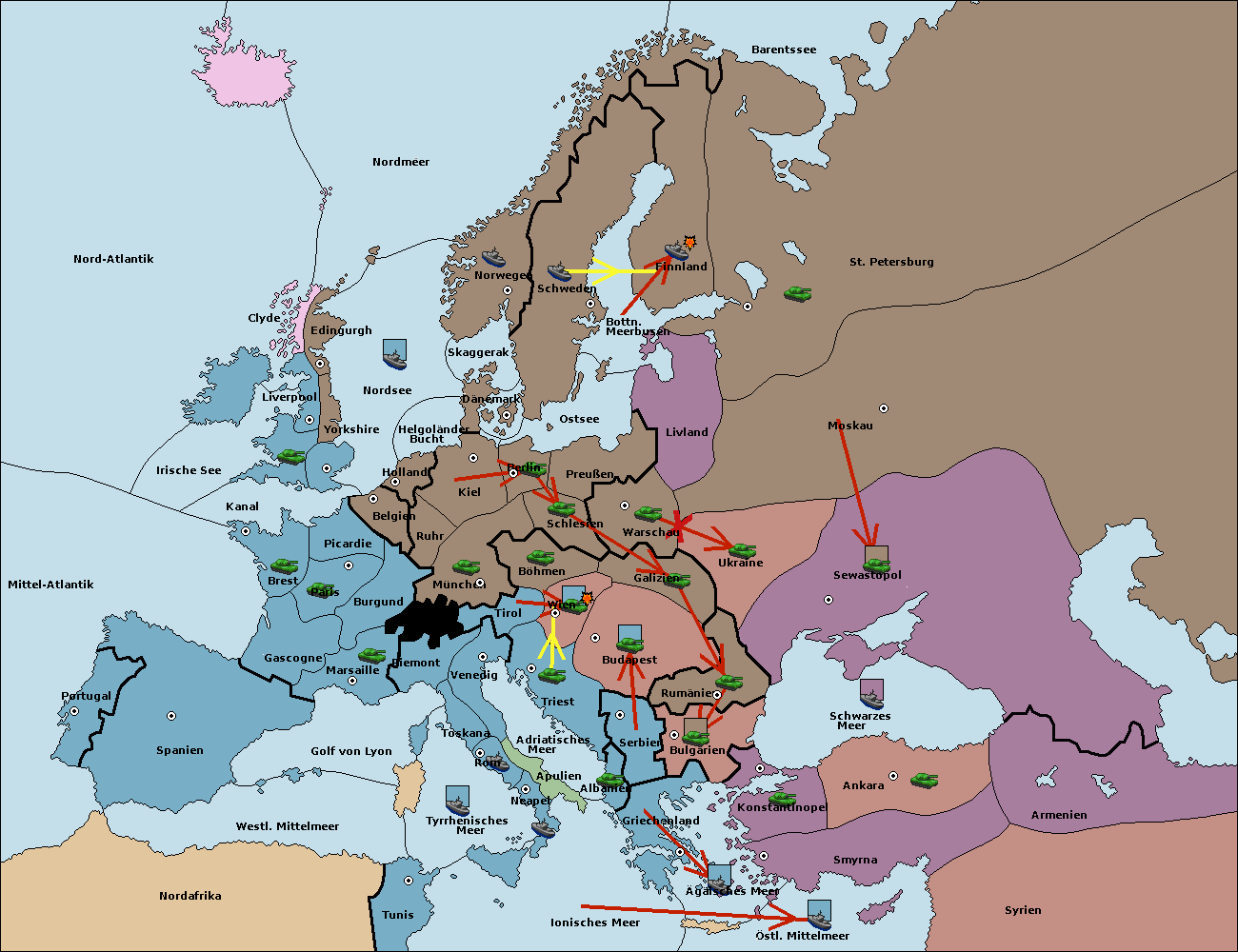 • Die Armee in Triest support move nach Wien von Tirol.