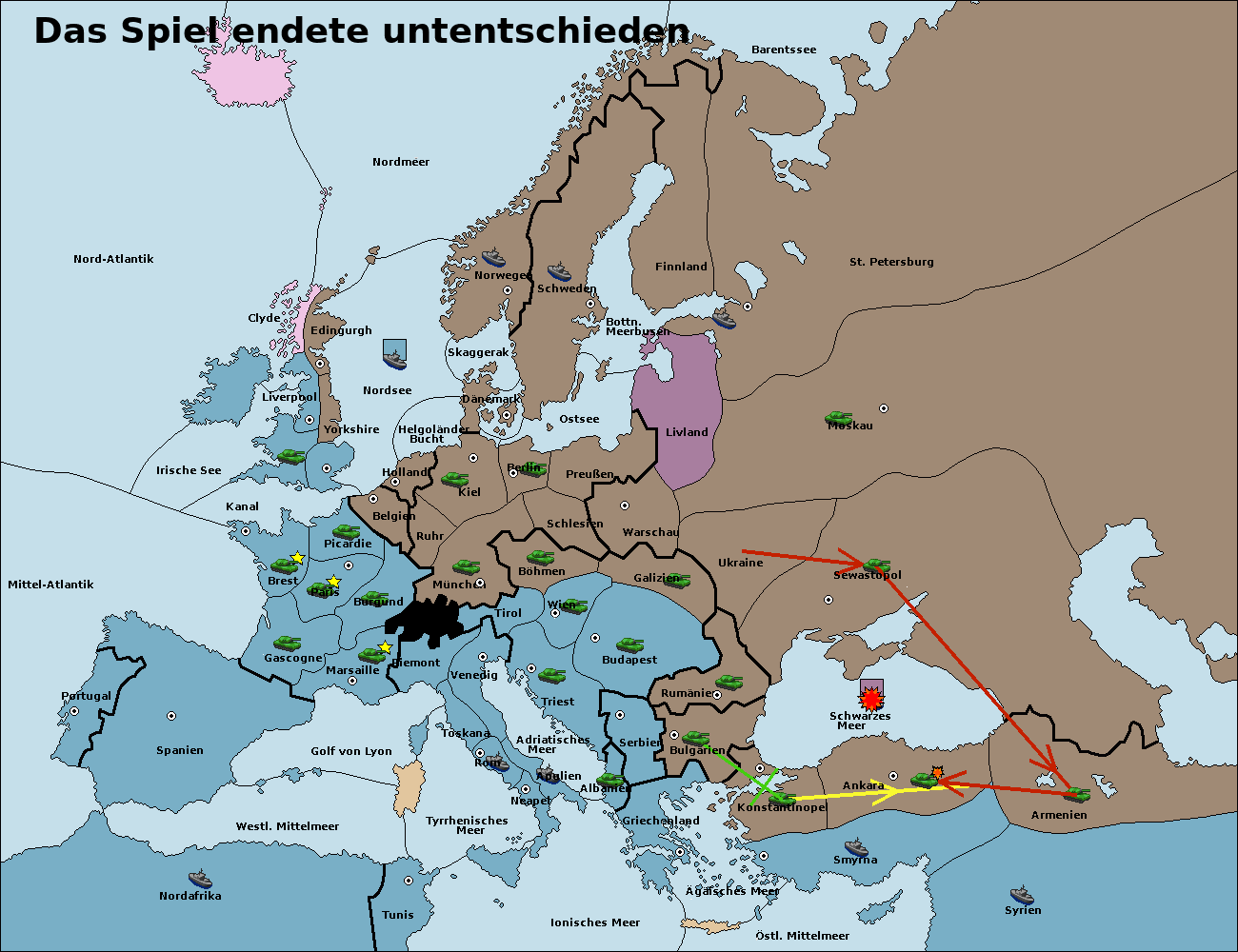 • Die Armee in Ankara wird zerstörtFlotte in Ankara gebaut.